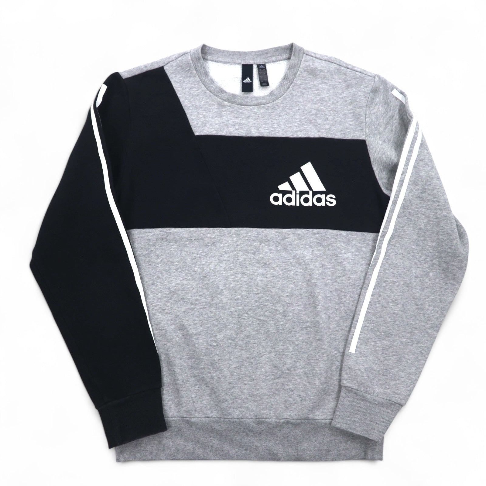 adidas スポーツ ID クルー スウェット XL グレー ブラック 裏起毛 3ストライプ Sport ID EB7589