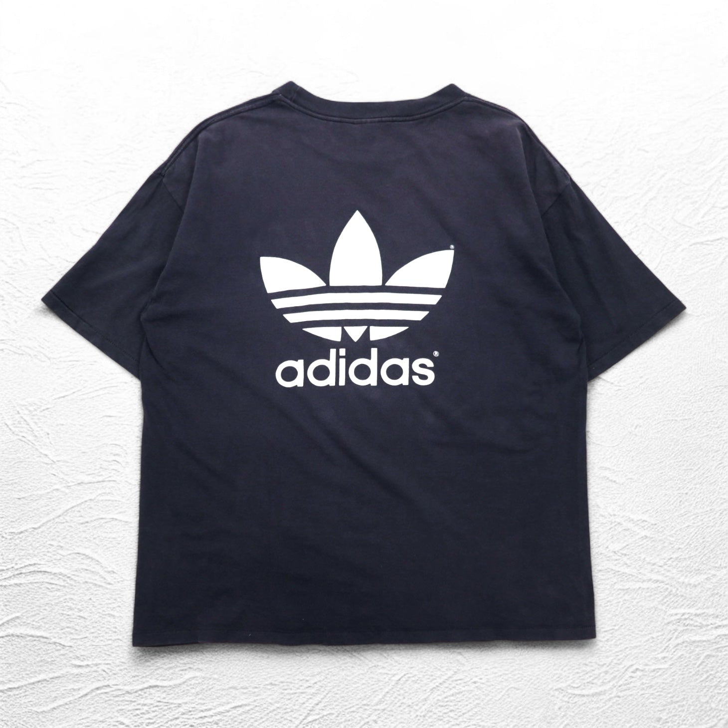 adidas 80年代 USA製 トレフォイル 両面プリント Tシャツ 2XL ブラック シングルステッチ ビッグサイズ