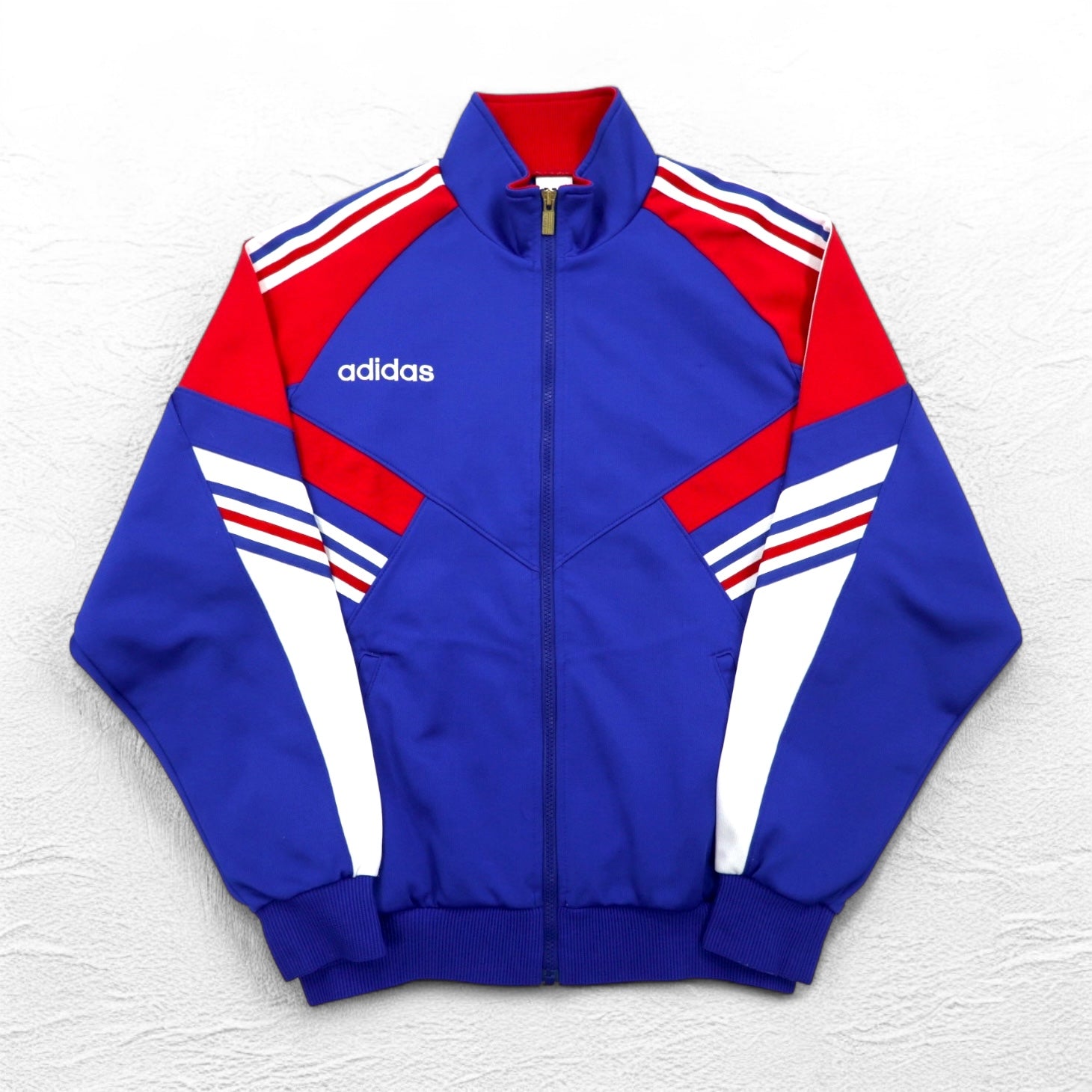 adidas 90年代 デサント社製 トラックジャケット ジャージ L ブルー トリコロール 3ストライプ 日本製