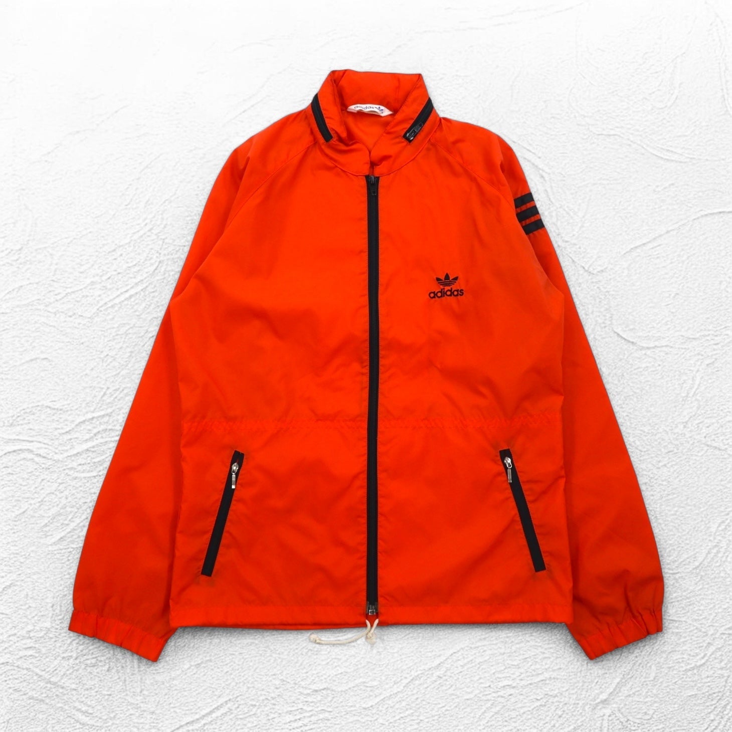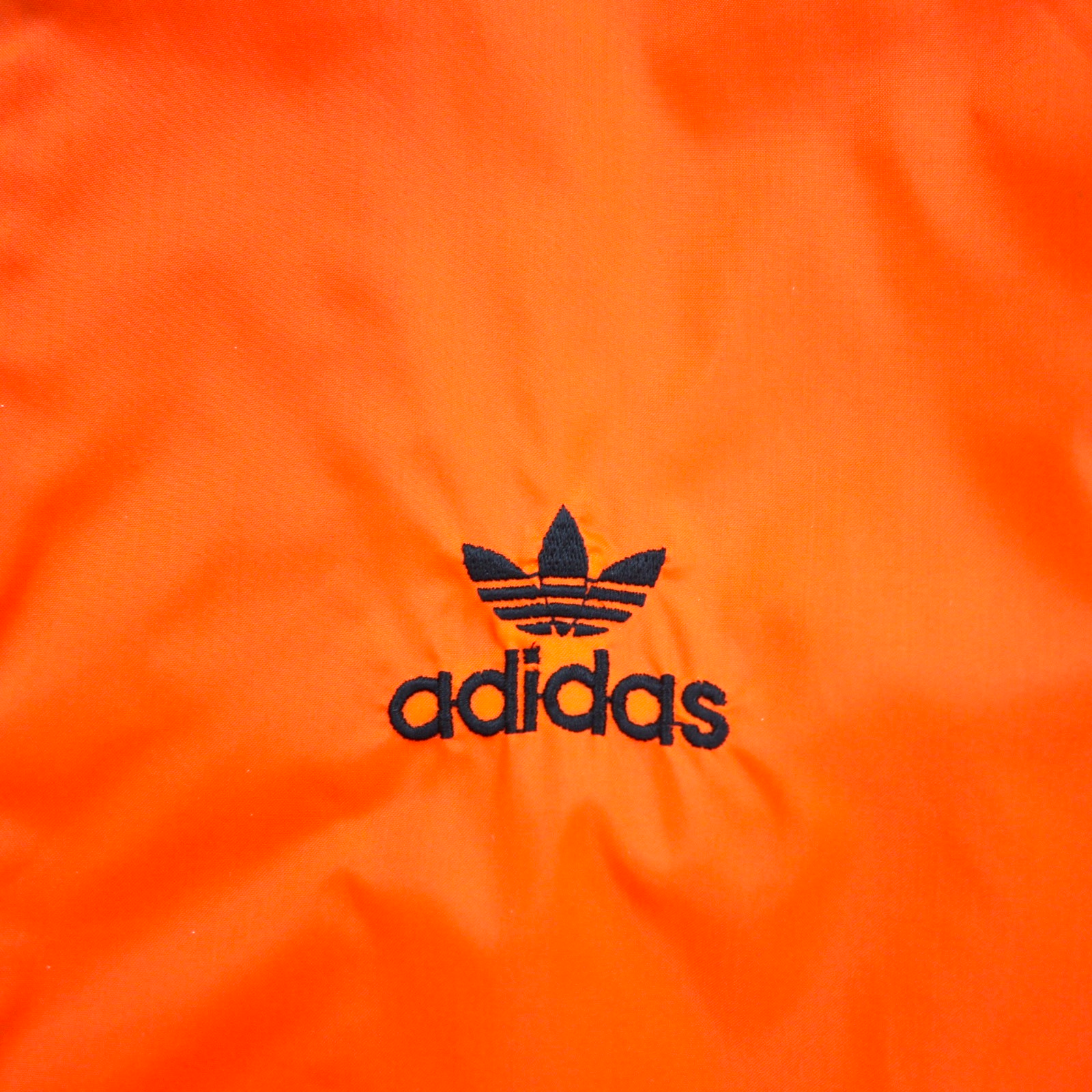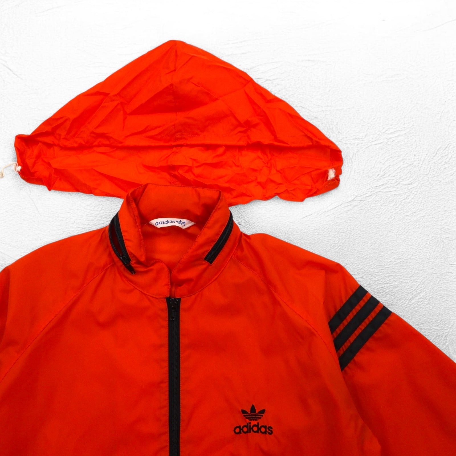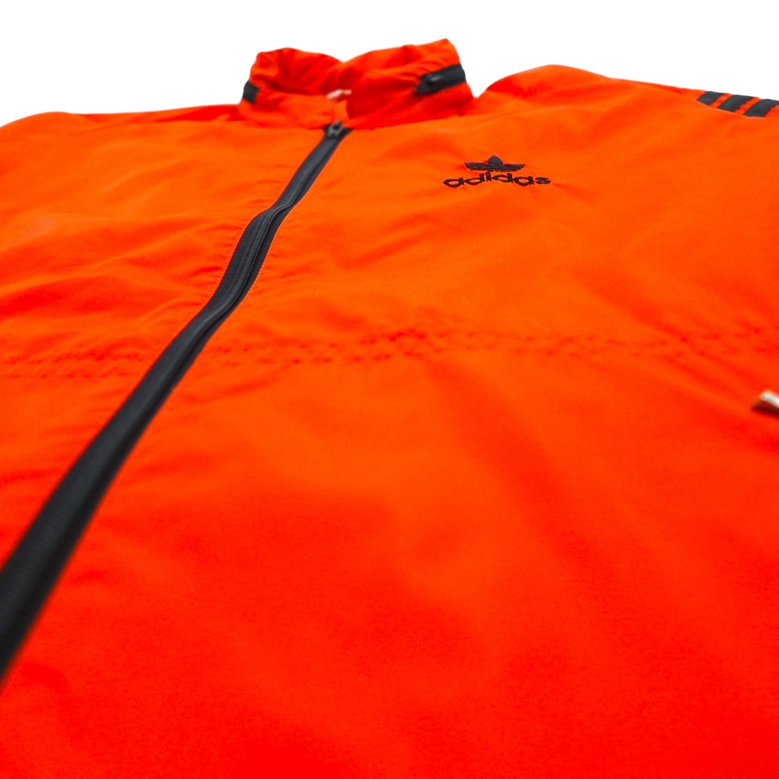 adidas 90年代 デサント社製 ナイロンジャケット ジャージ M オレンジ トレフォイルロゴ刺繍 フード収納式