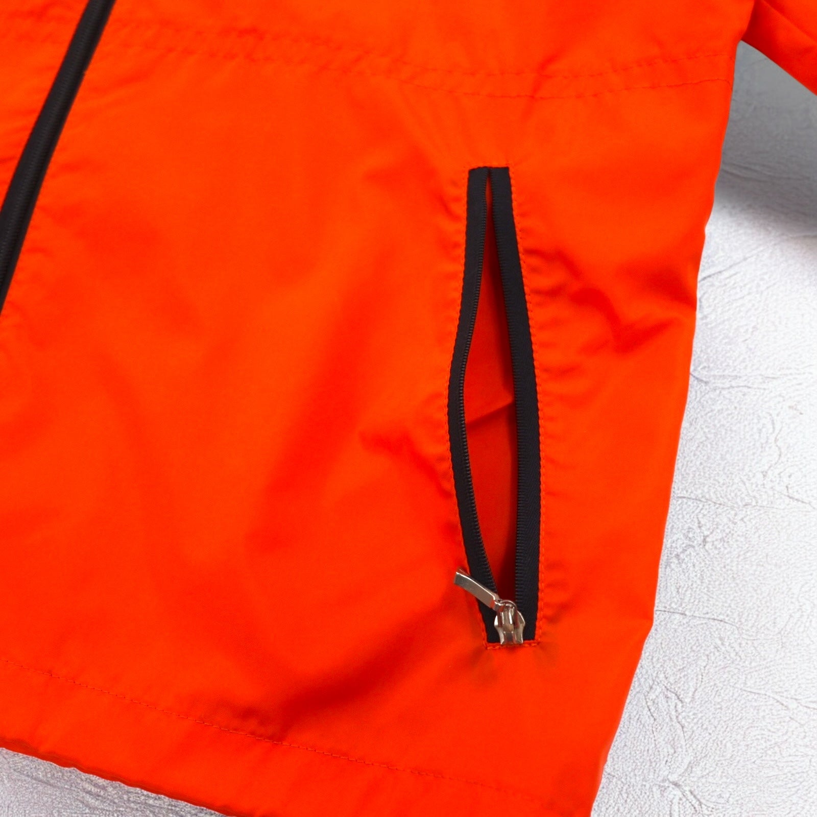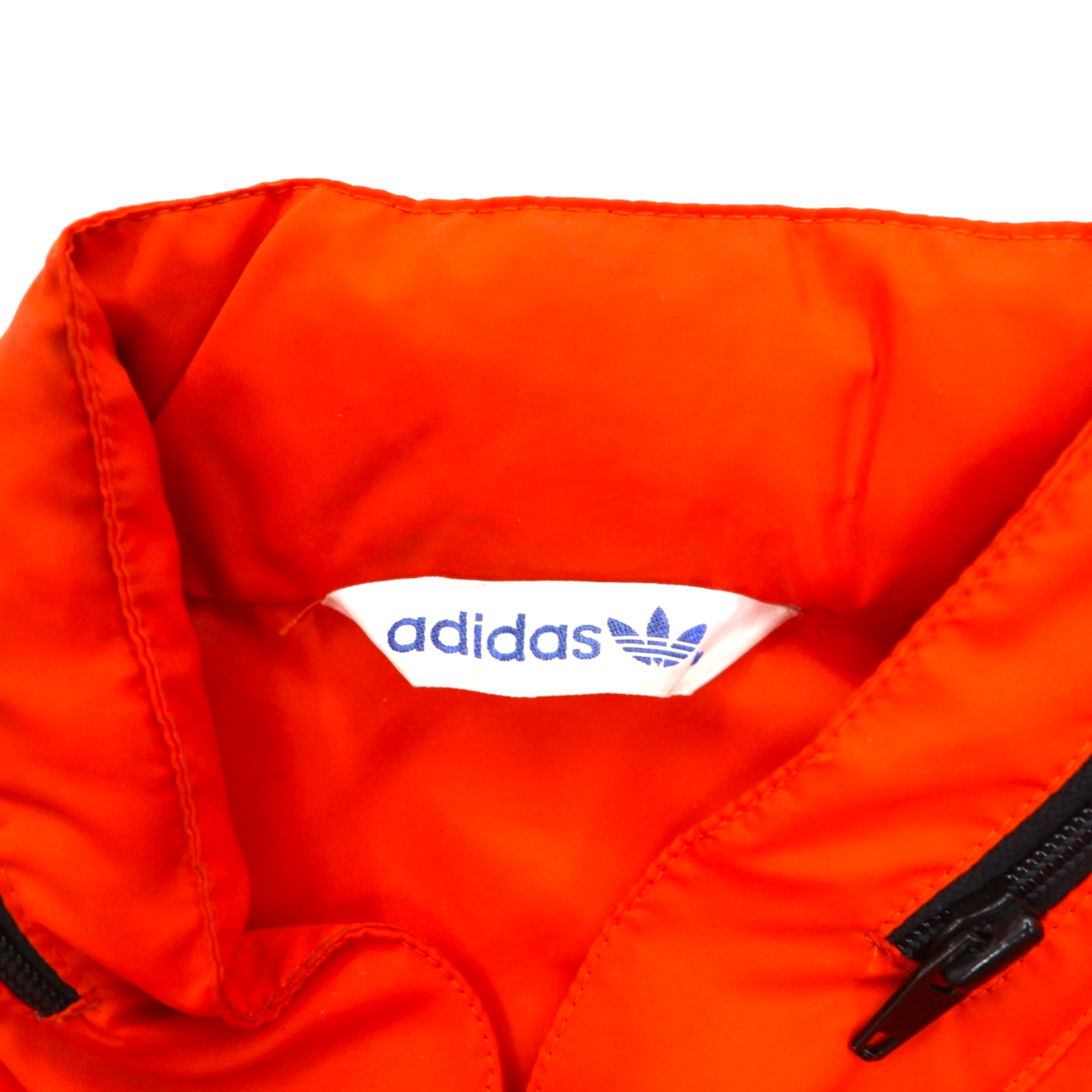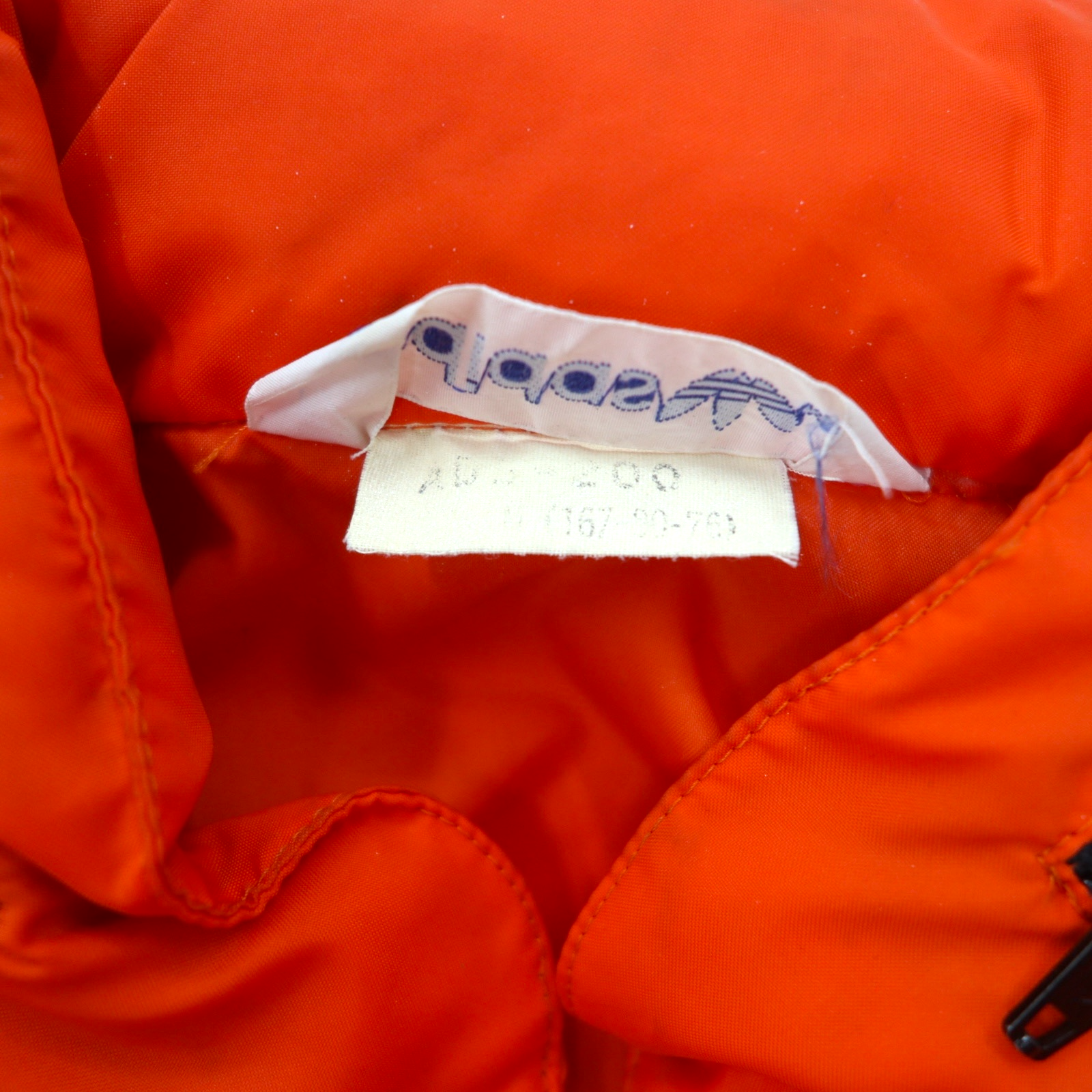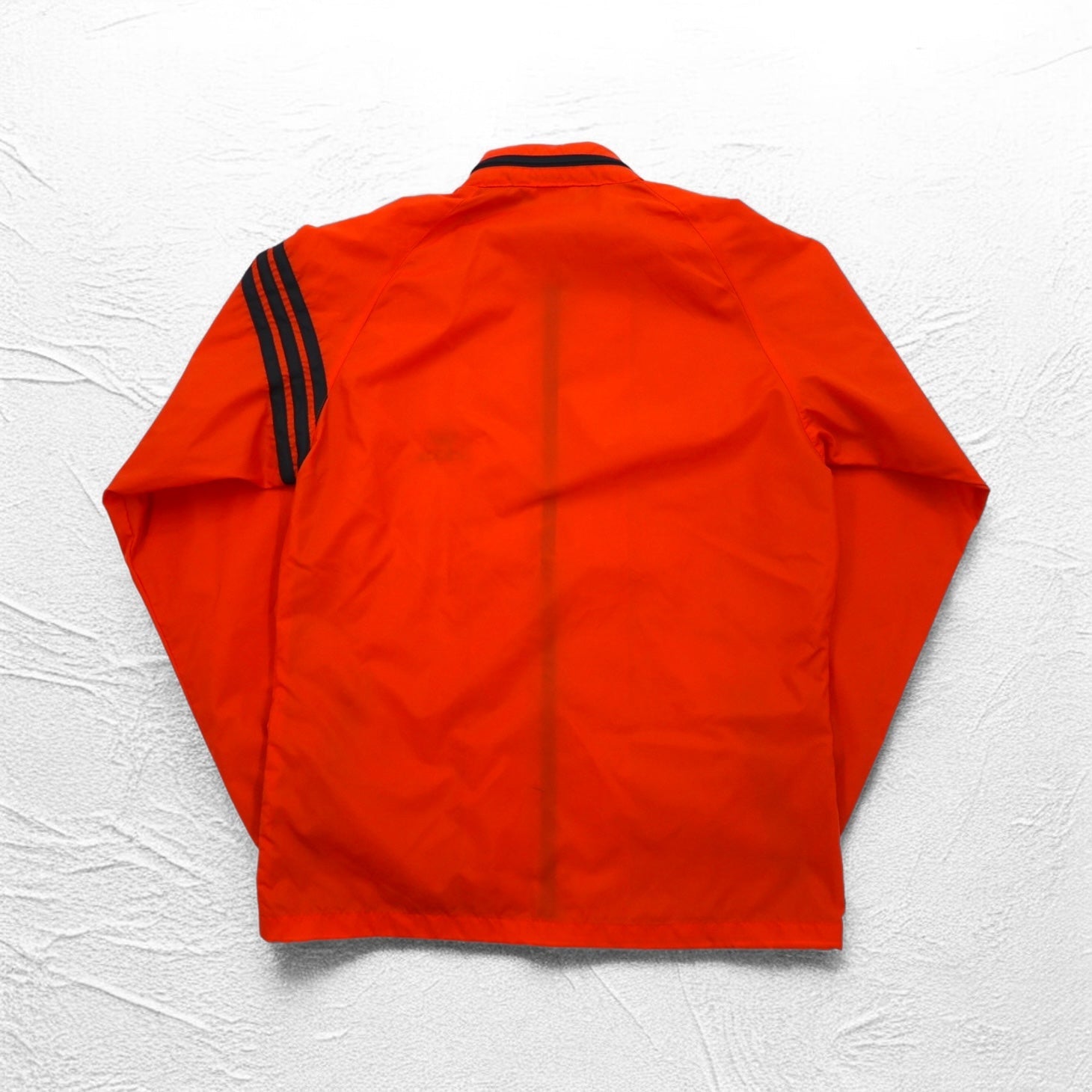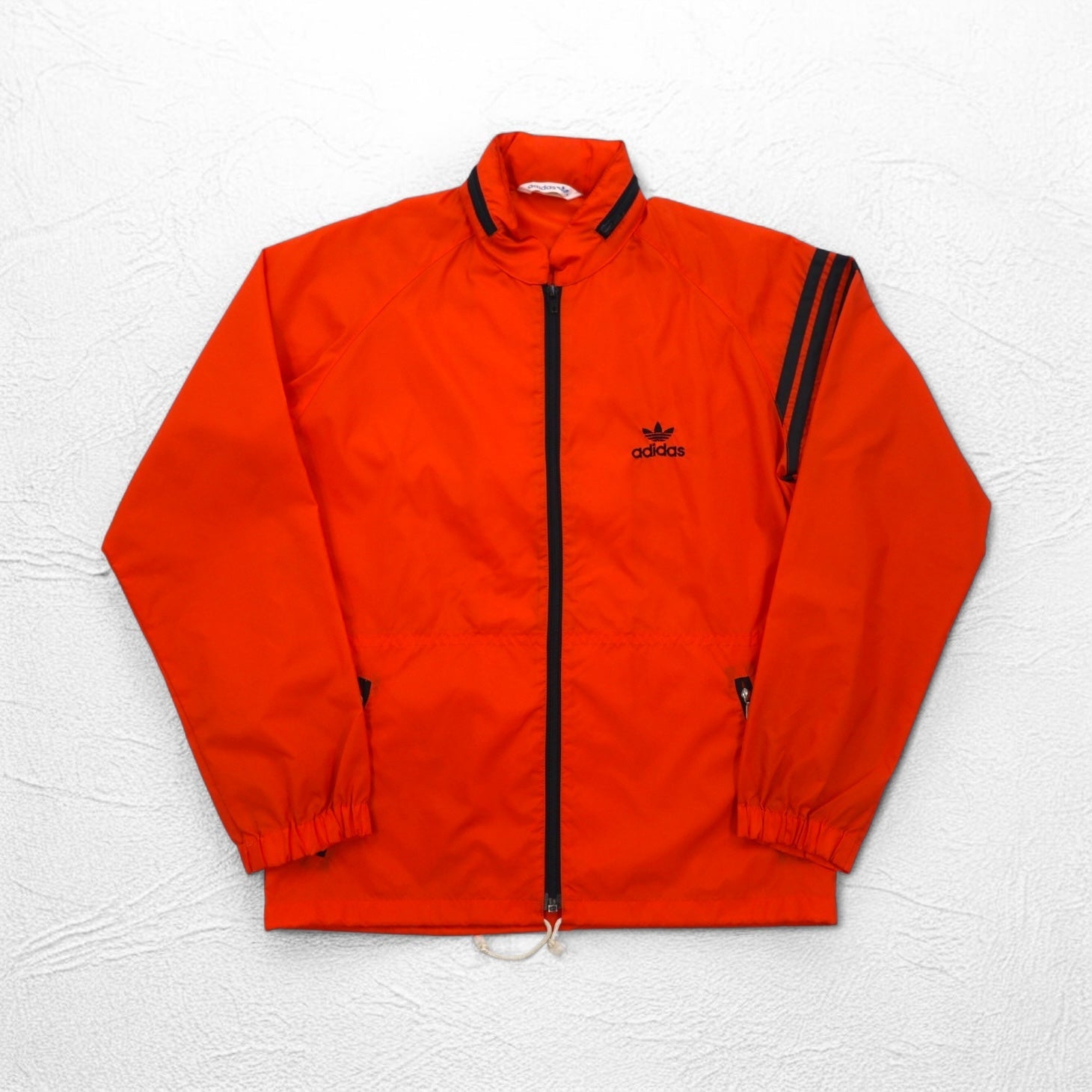 adidas 90年代 デサント社製 ナイロンジャケット ジャージ M オレンジ トレフォイルロゴ刺繍 フード収納式