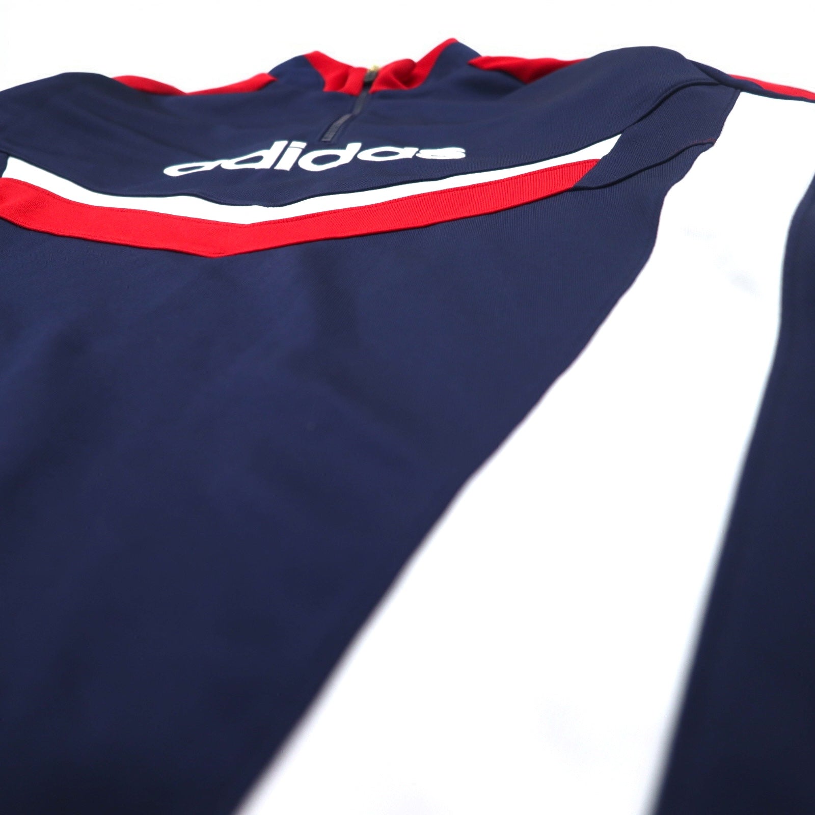 adidas 90年代 デサント社製 ハーフジップ トラックジャケット ジャージ L ネイビー ドローコード
