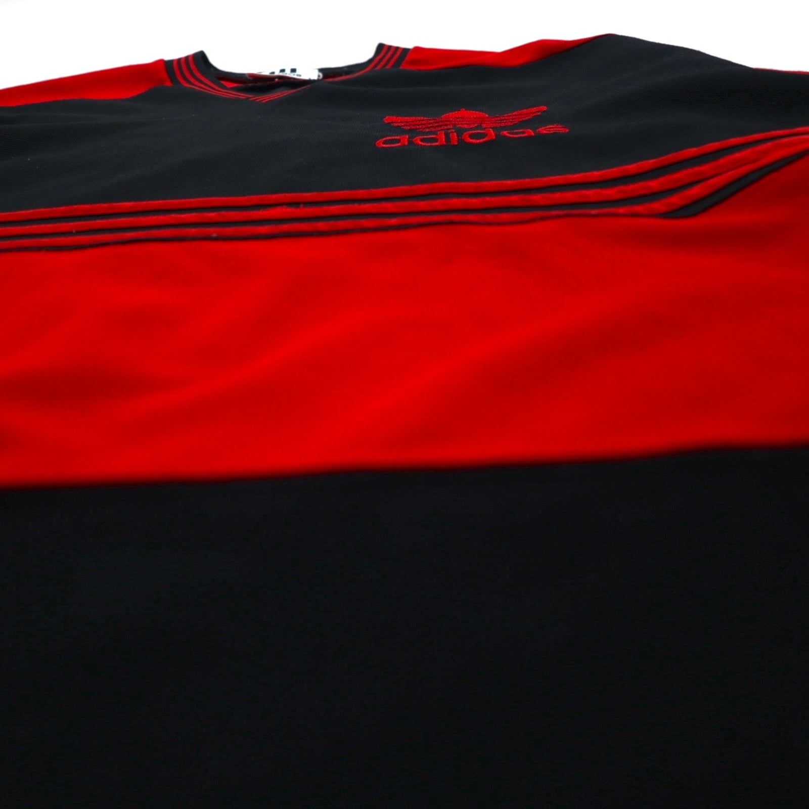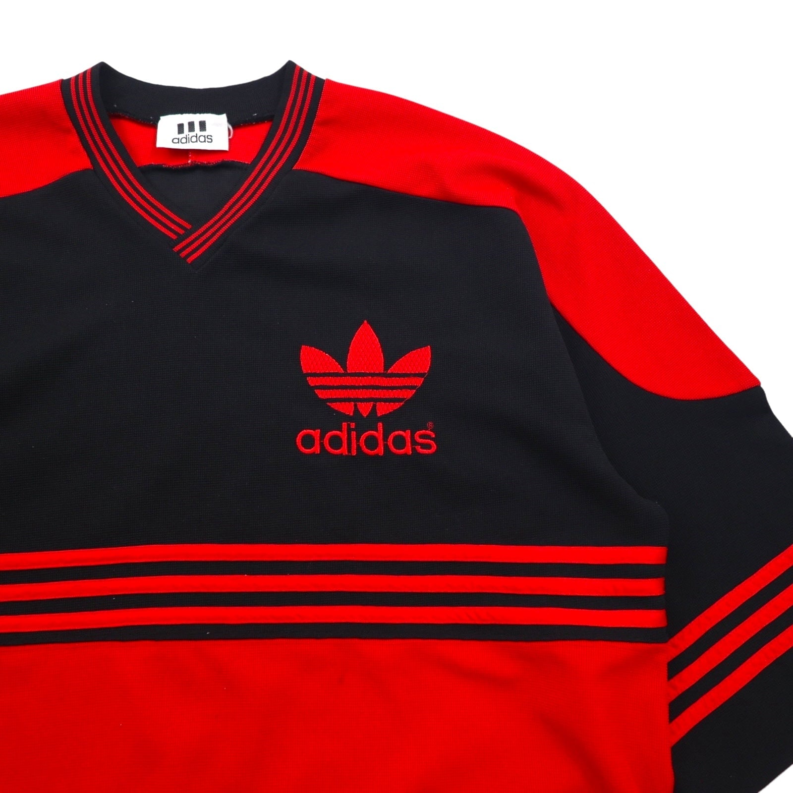 adidas 90年代 トレフォイルロゴ刺繍 ゲームシャツ XL ブラック レッド ポリエステル