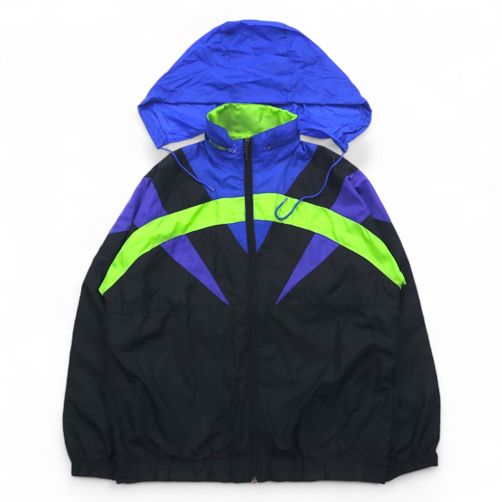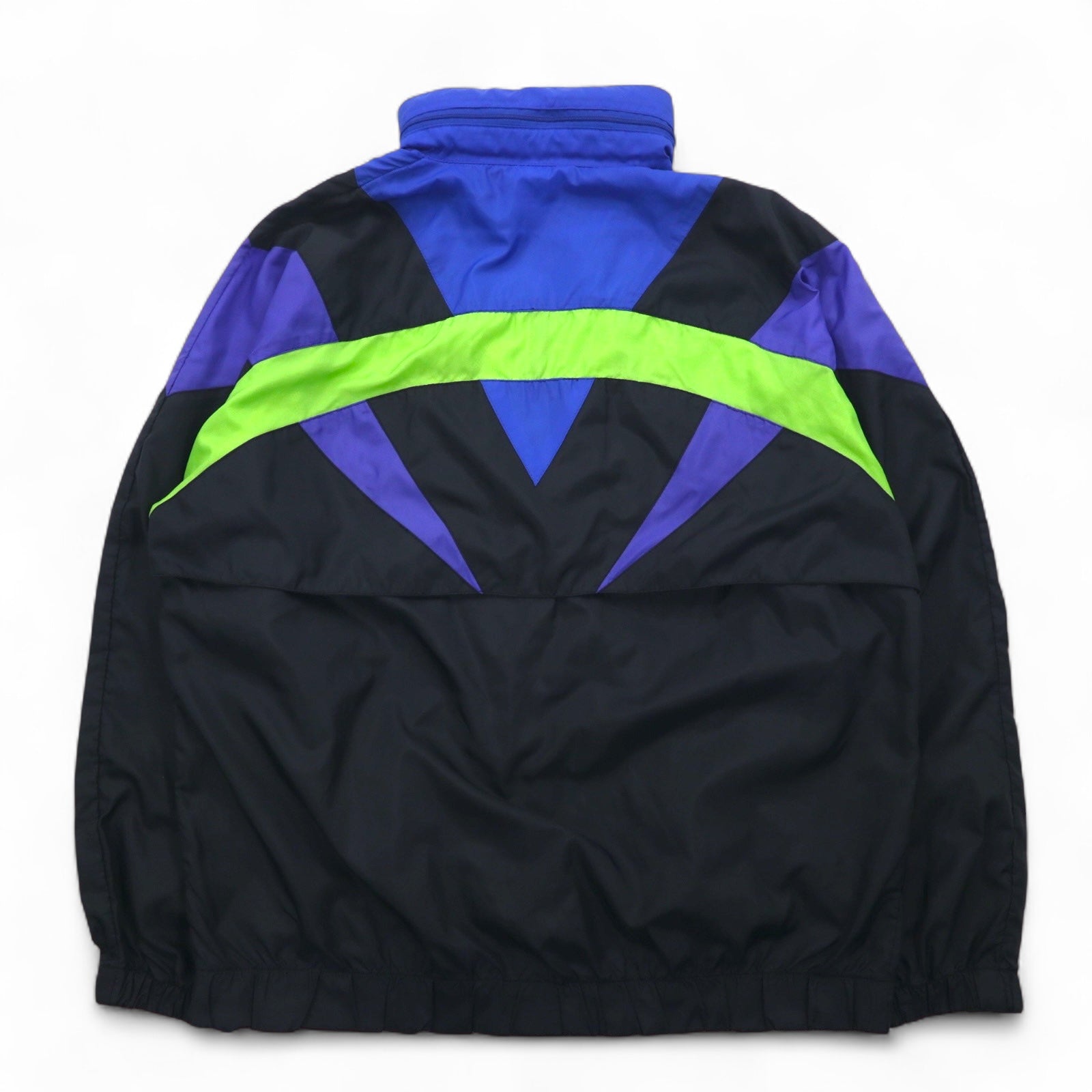 adidas 90年代 銀タグ ナイロンジャケット ジャージ M ブラック メッシュライナー フード収納式