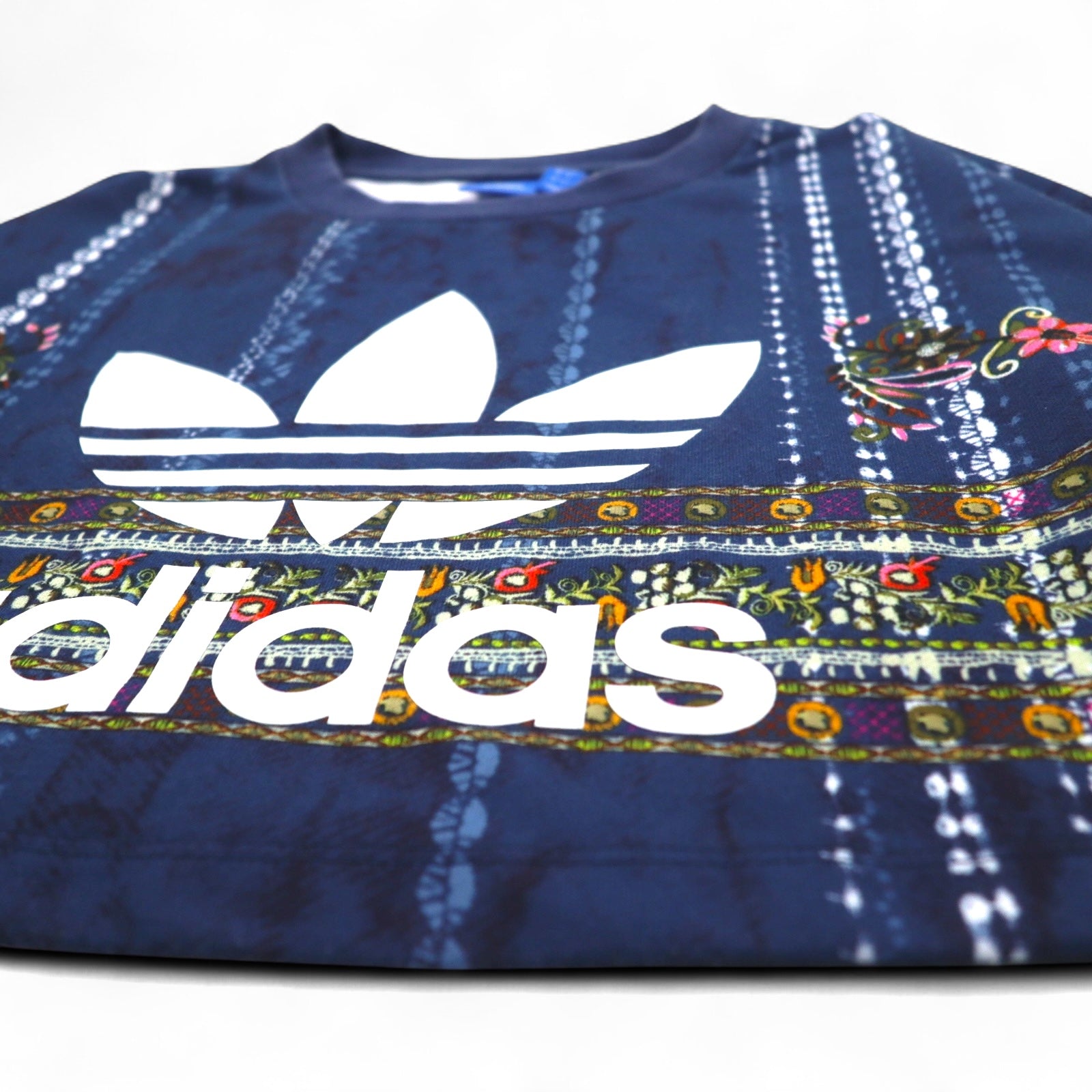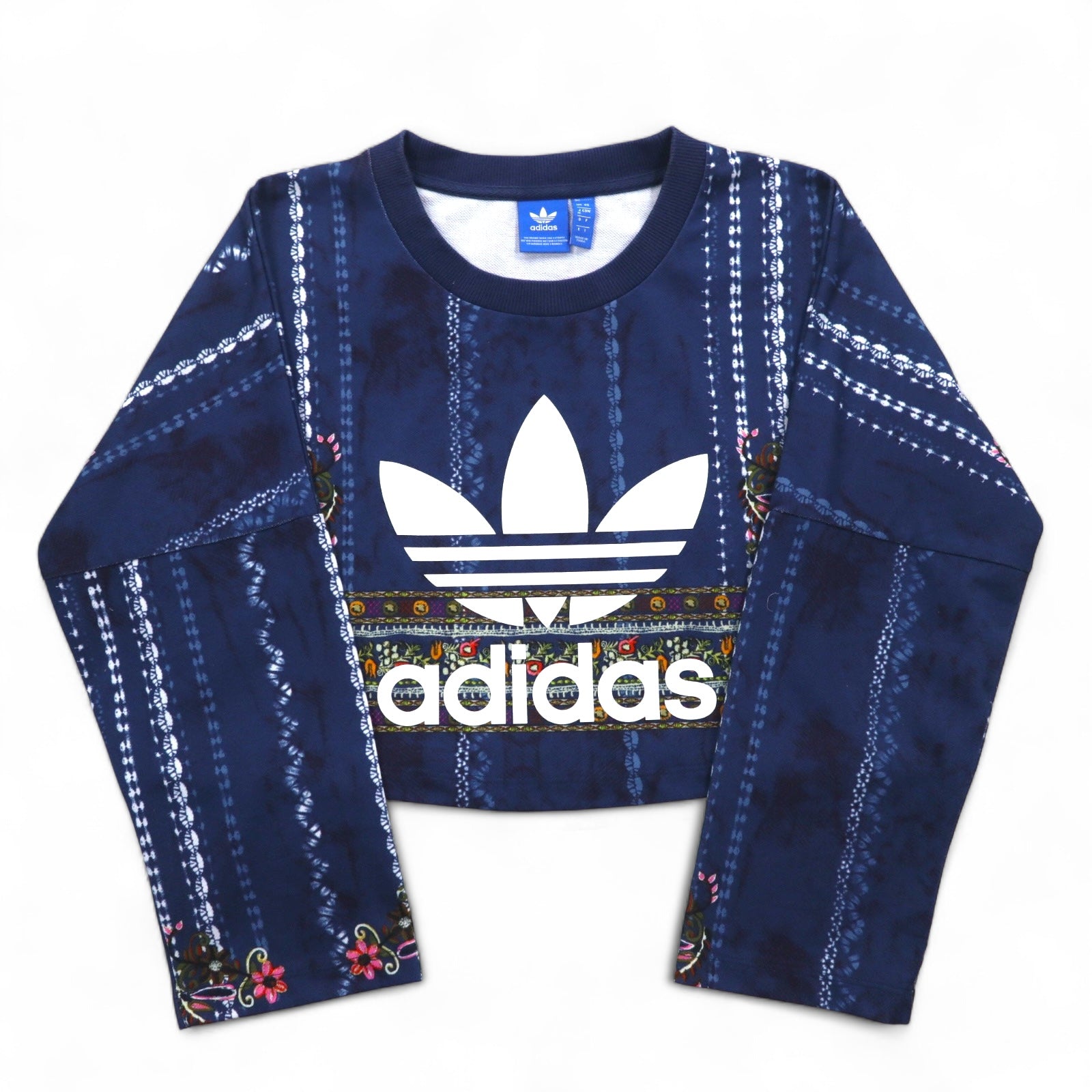 adidas originals クロップド スウェット M ネイビー ポリエステル 総柄 トレフォイルロゴ Cirande Sweat AY6896