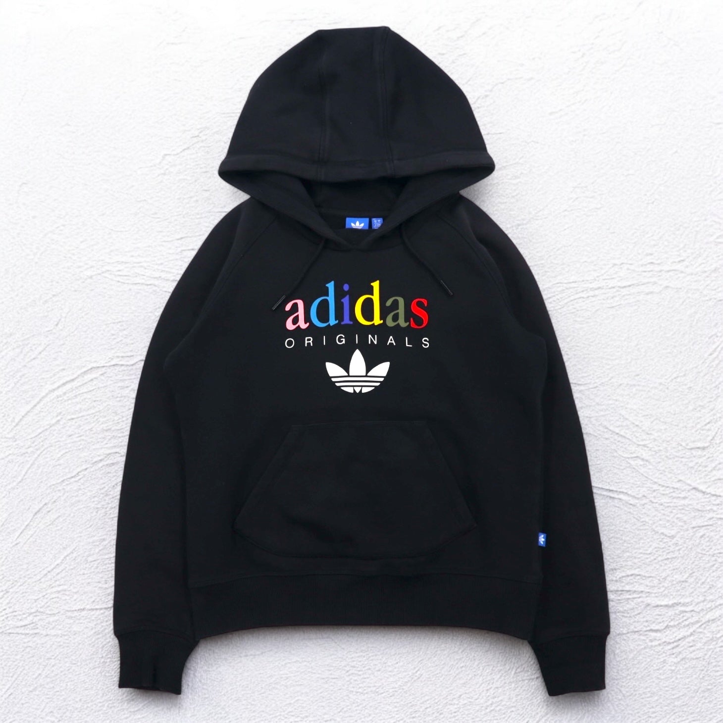 adidas originals トレフォイルロゴ プリント パーカー XL ブラック 裏起毛 AY6630