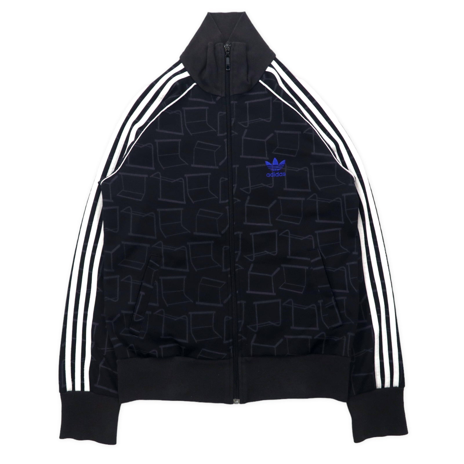 adidas originals 00年代 トラックジャケット ジャージ M ブラック ポリエステル USAワッペン 総柄 3ストライプ トレフォイルロゴ刺繍