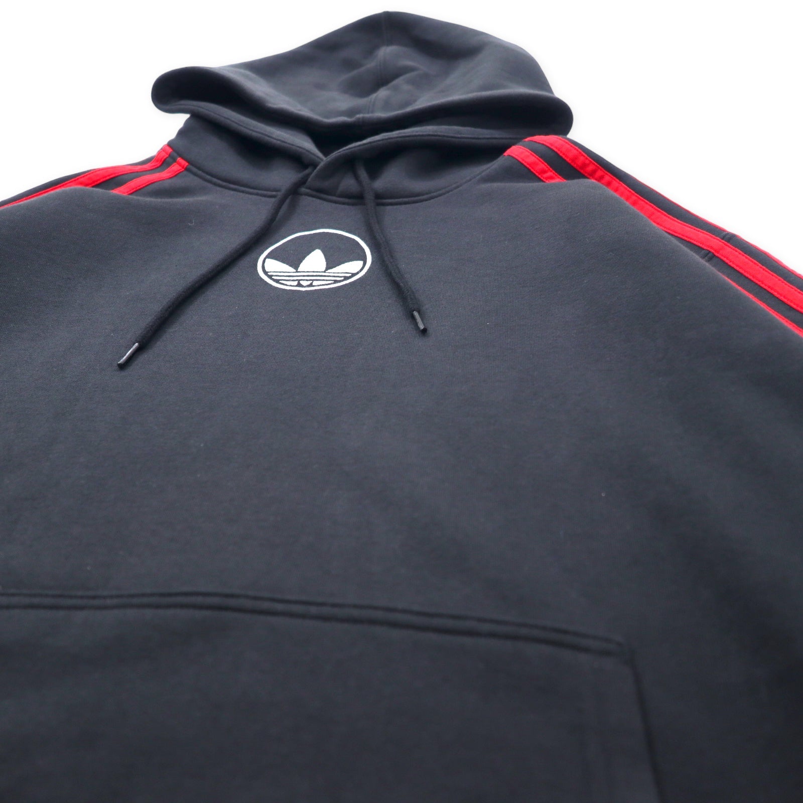 adidas originals 3ストライプ サークル パーカー 2XL ブラック コットン トレフォイルロゴ刺繍 ビッグサイズ GD2127