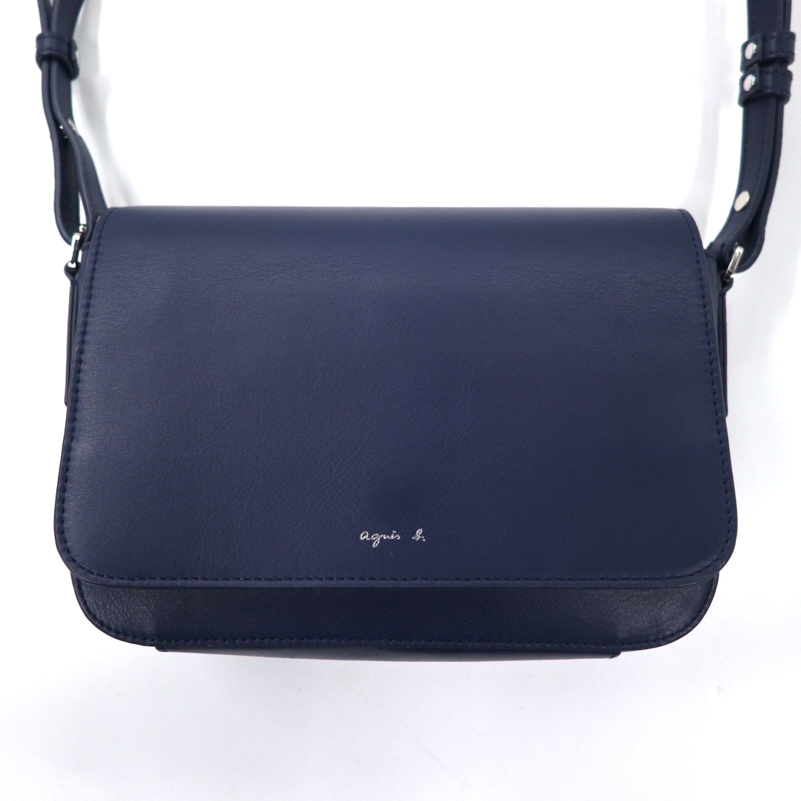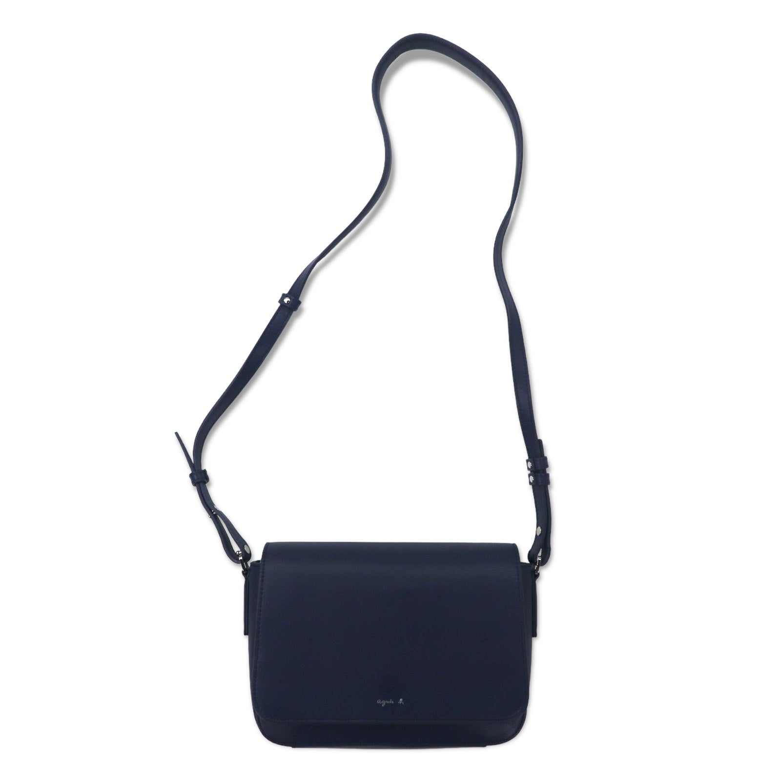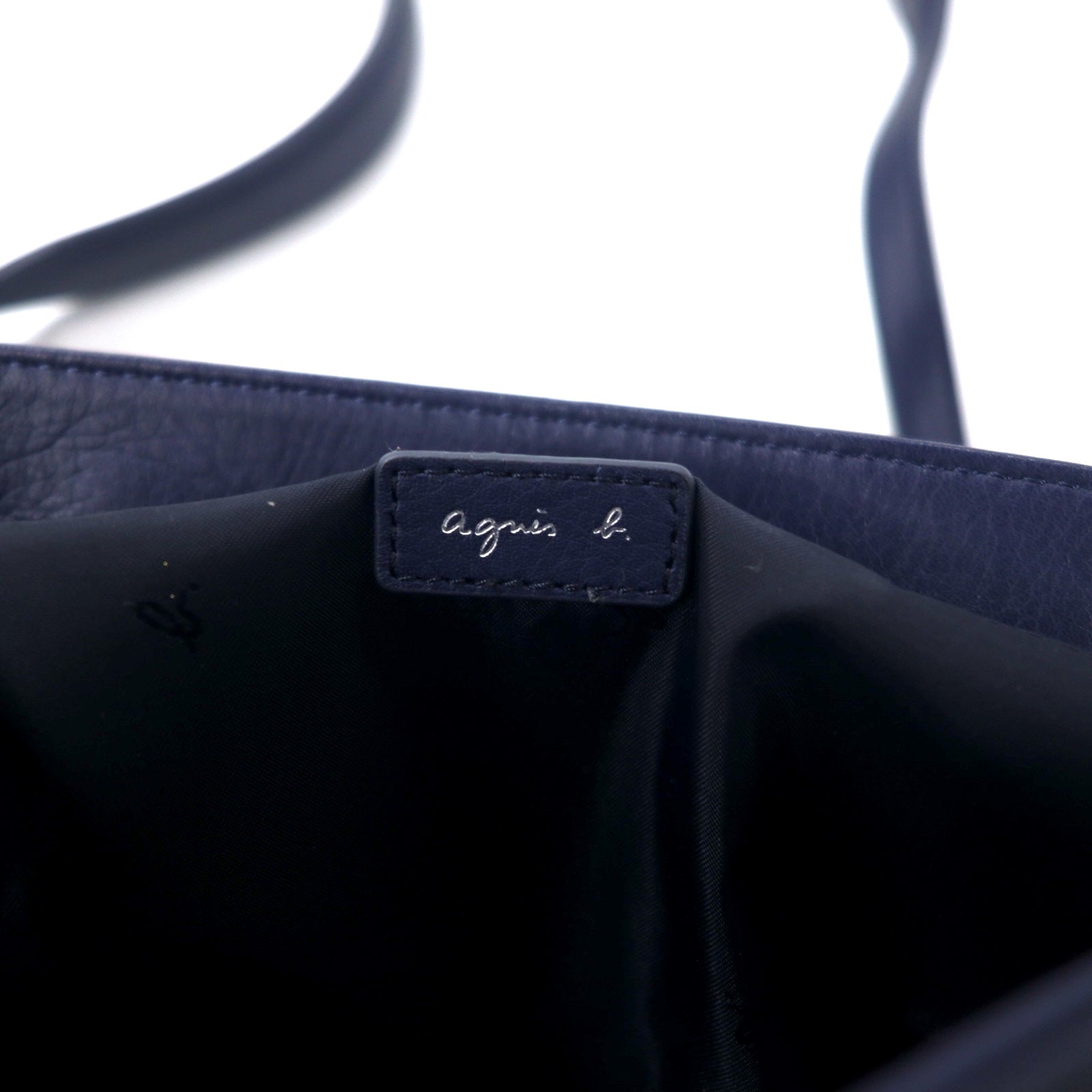 agnes b. レザー ショルダーバッグ ネイビー 牛革 LS15-02