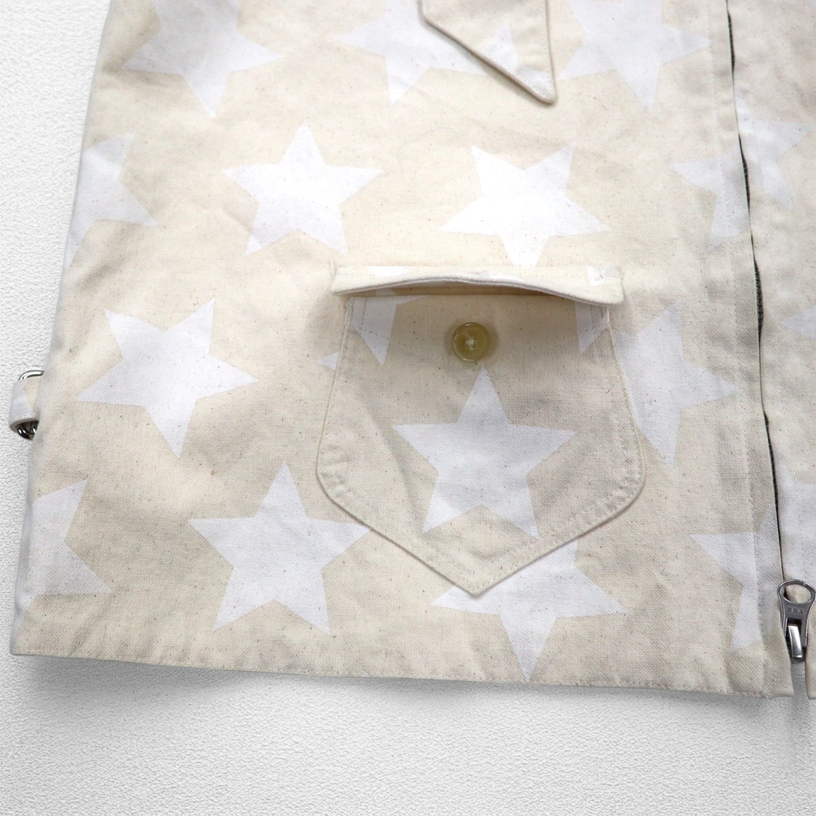AiE ( Nepenthes ) USA製 ディーエスディーベスト dsd vest-9oz star M クリーム 総柄 星 ポケット ダブルジップ