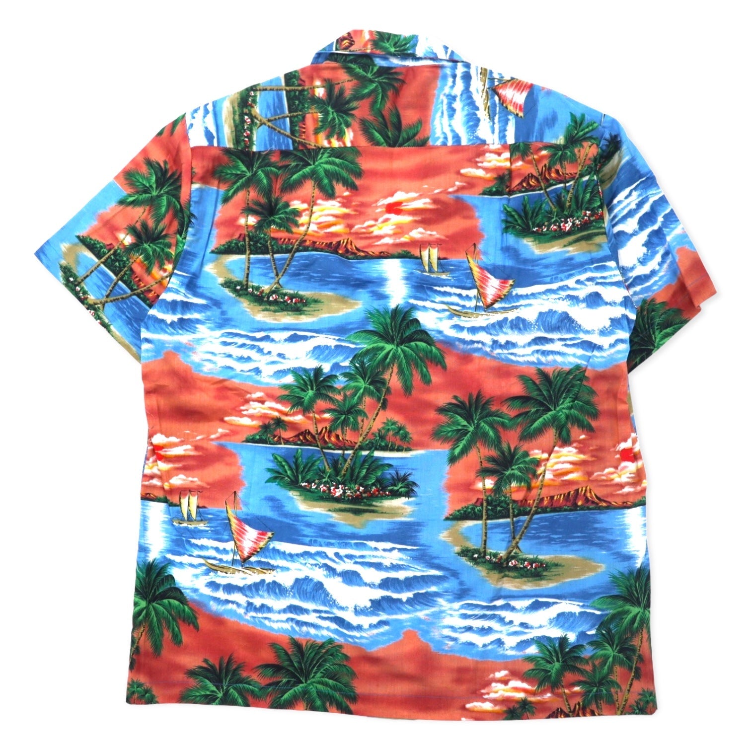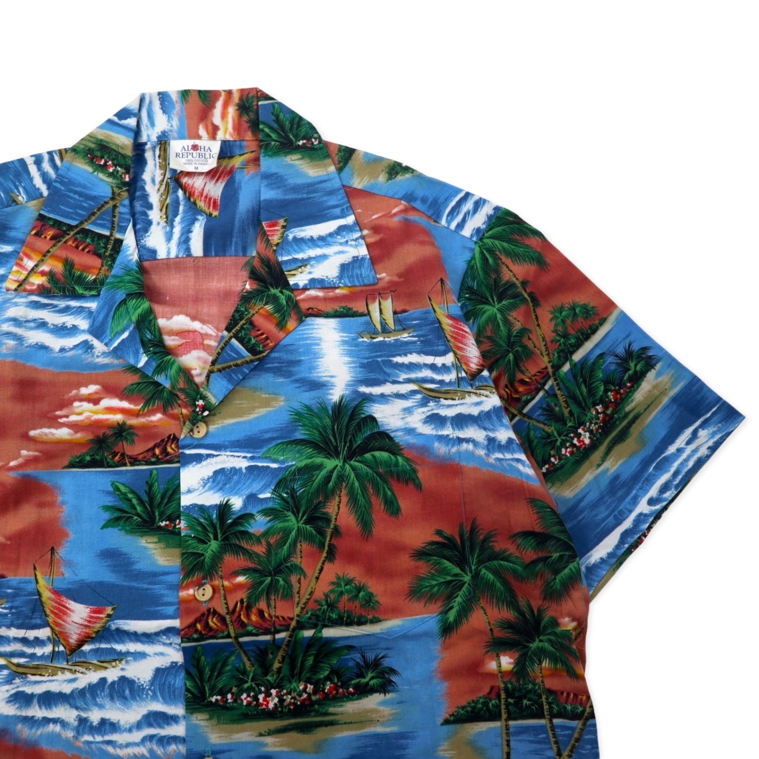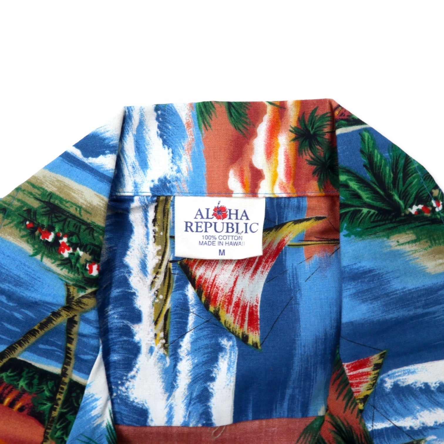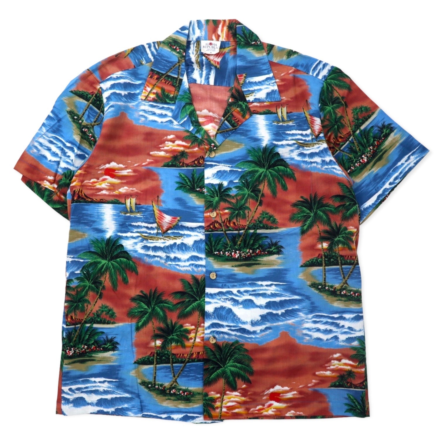 ALOHA REPUBLIC アロハシャツ 開襟 M ブルー コットン ビーチ 総柄 ハワイ(USA)製
