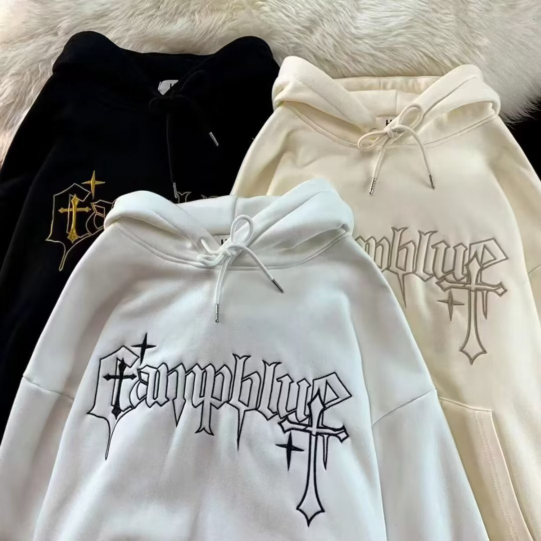 American-style European and American hooded sweater men's 2022 youth fashion men's casual plus velvet print winter pullover top