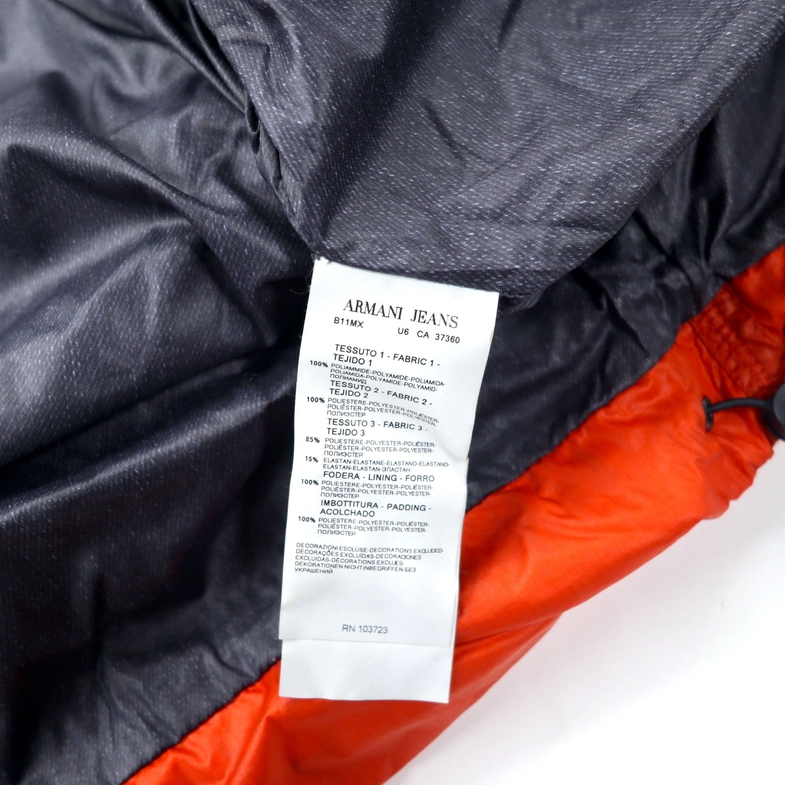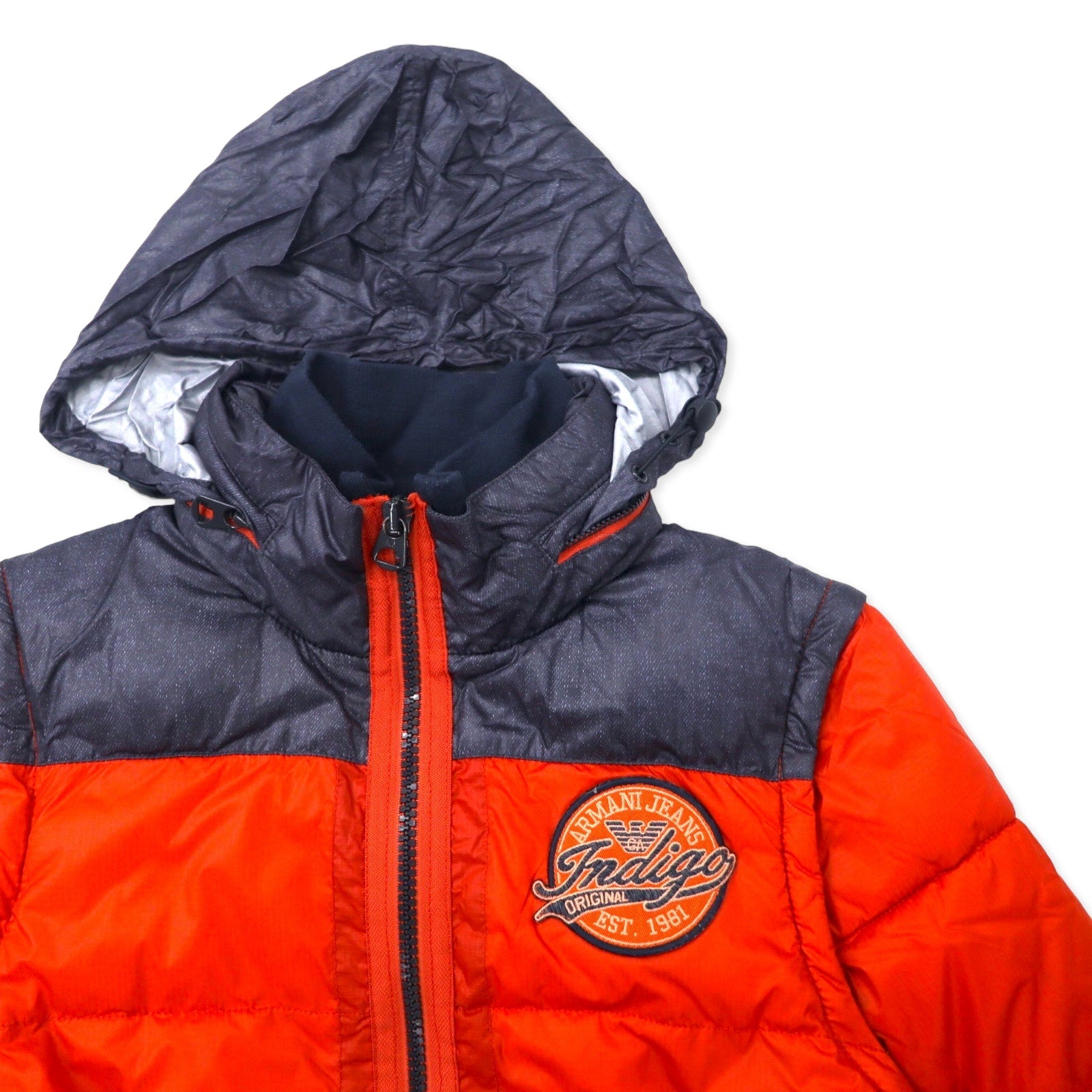 ARMANI JEANS 2WAY ダウンジャケット ダウンベスト 46 オレンジ ポリエステル 袖着脱式 バックロゴプリント
