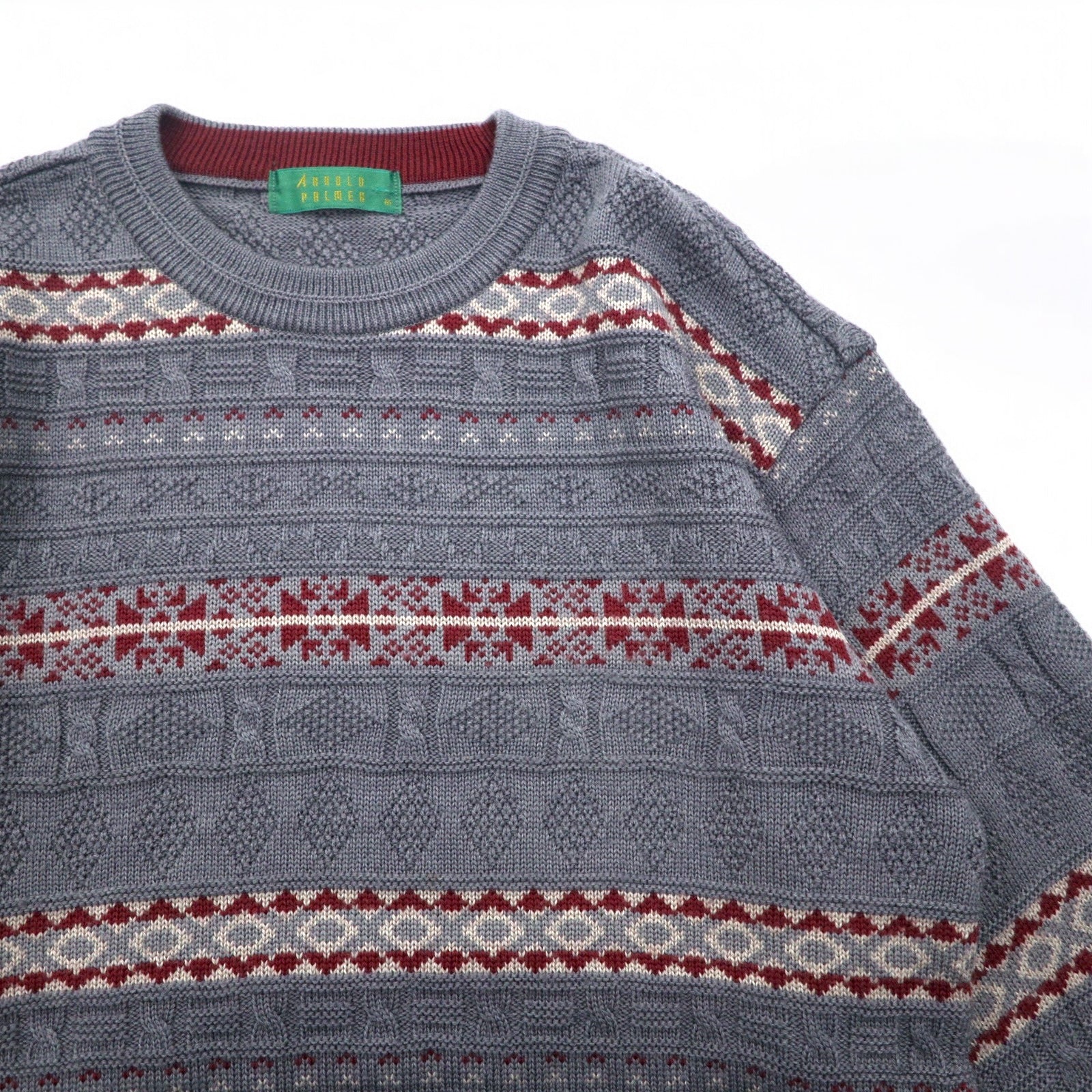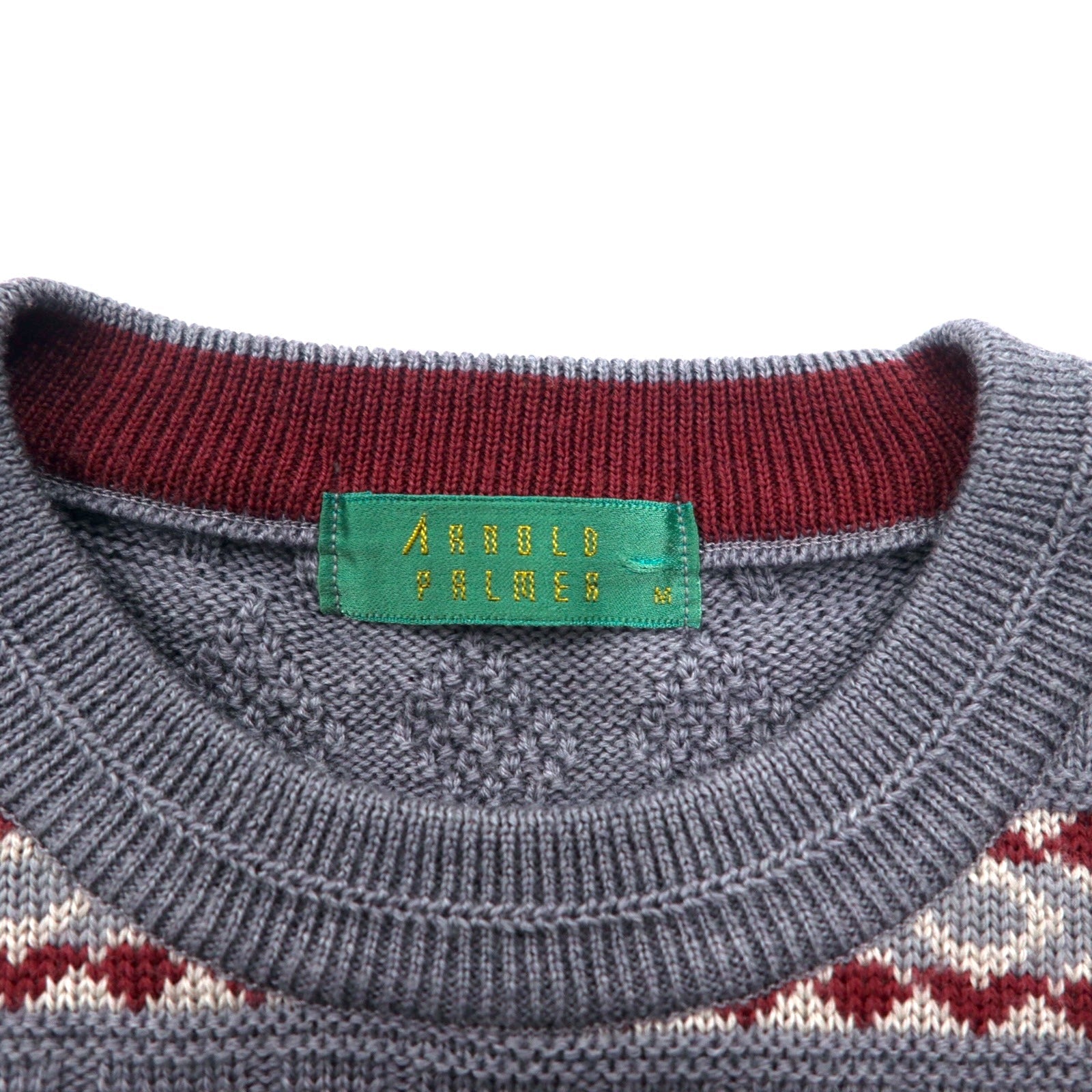 ARNOLD PALMER 90年代 ジャガード ニット ノルディック セーター M グレー ボーダー 総柄 日本製