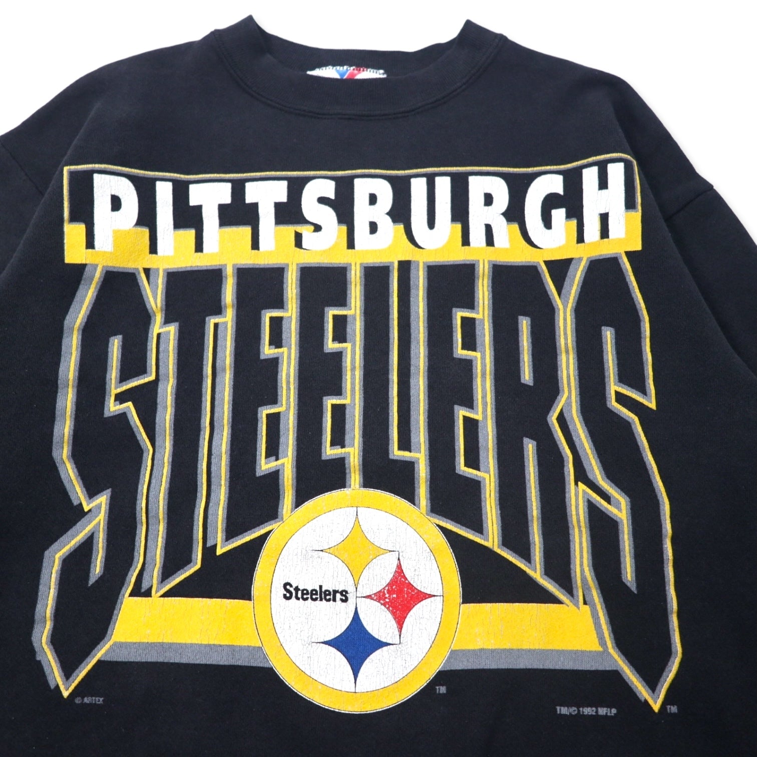 ARTEX USA製 90年代 NFL プリント スウェット M ブラック コットン PITSBURGH STEELERS