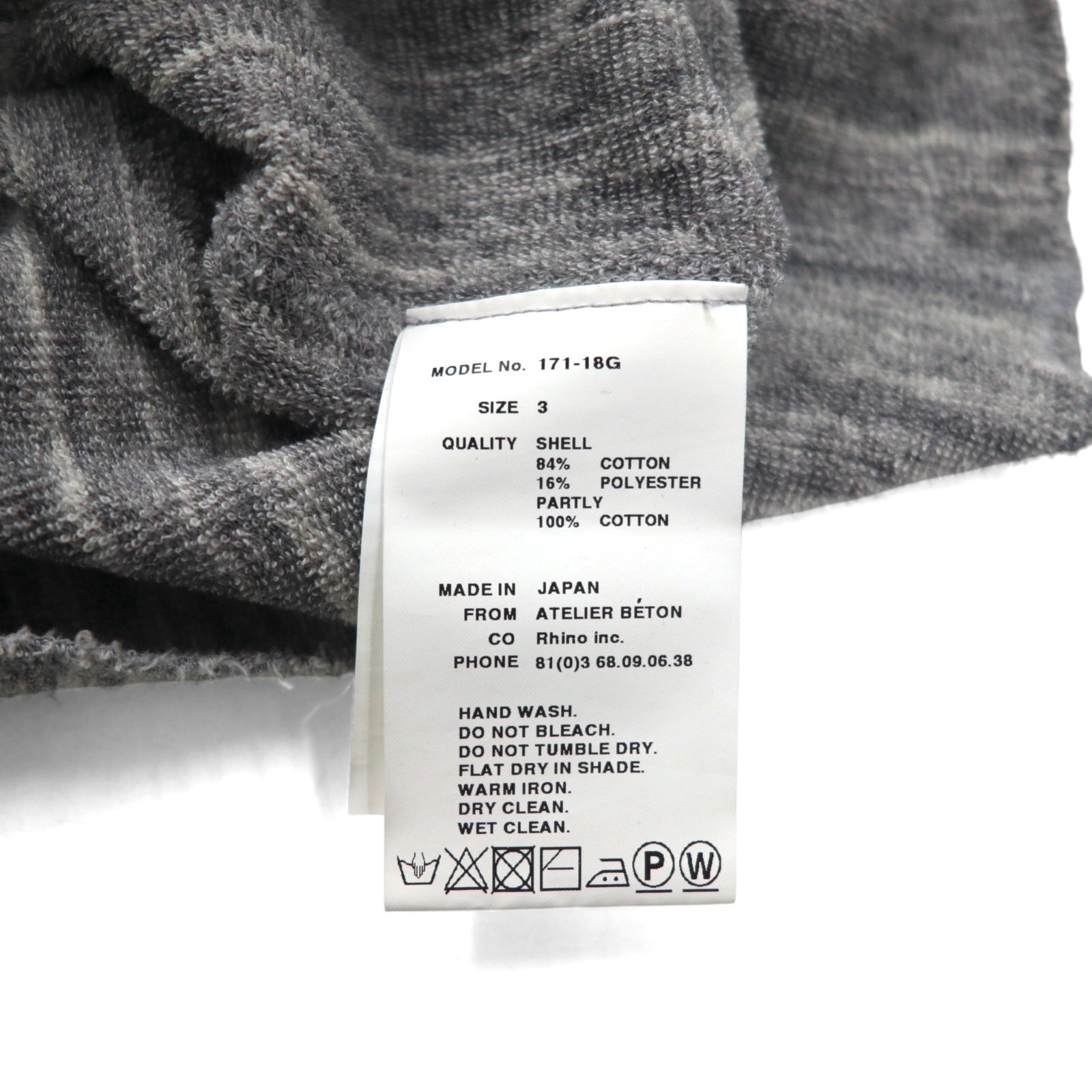 ATELIER BETON ( BIOTOP 取扱い ) パイル ロングスリーブ PILE LONG SLEEVE ニット セーター M グレー 171-18G 日本製