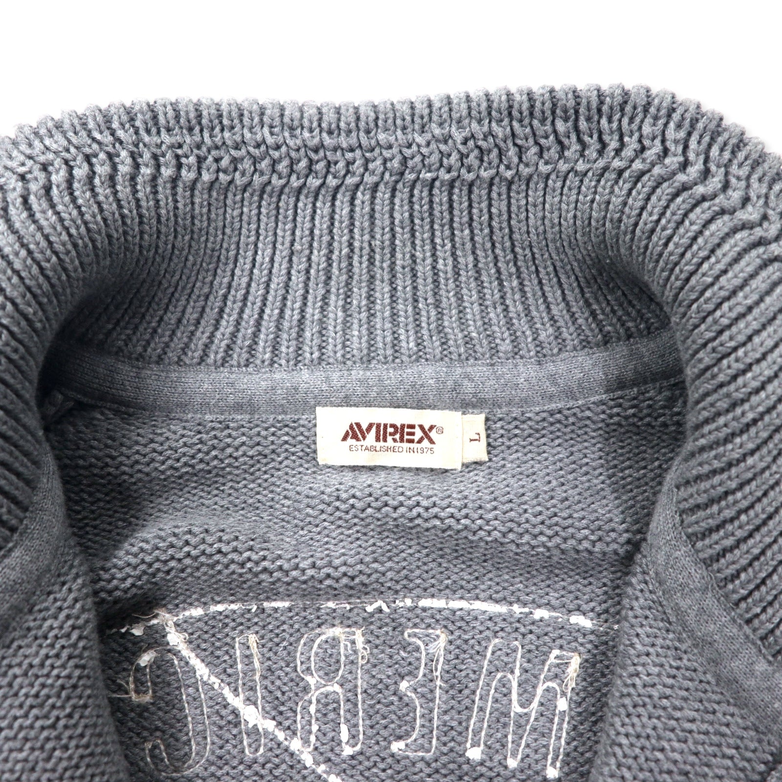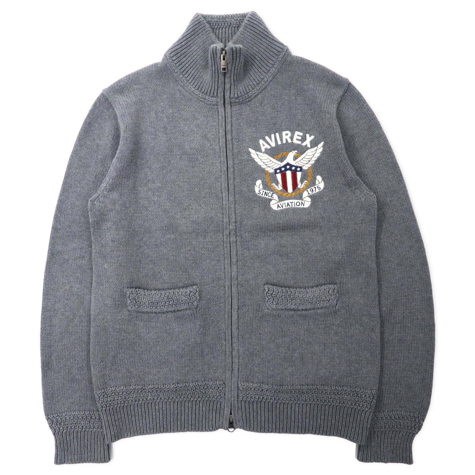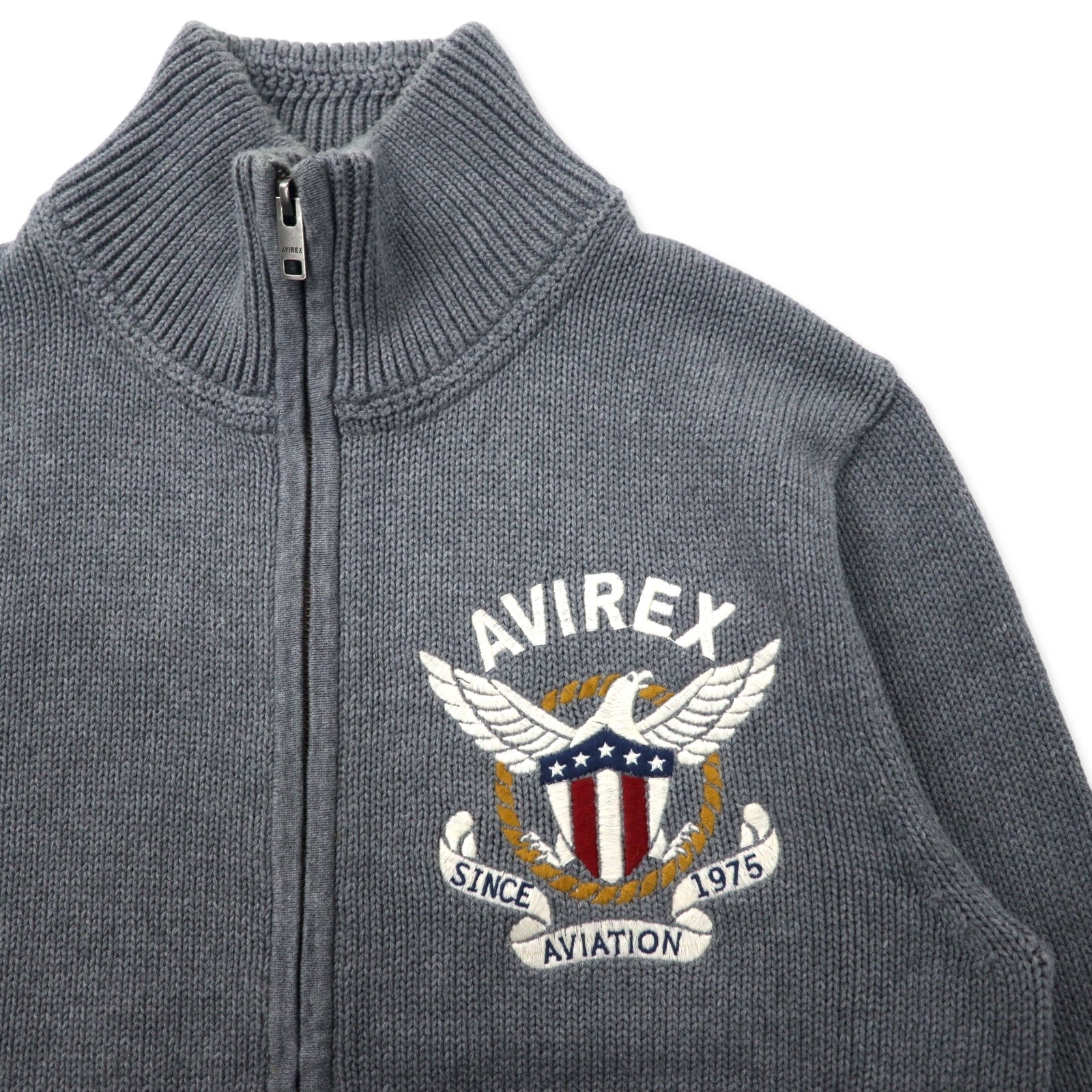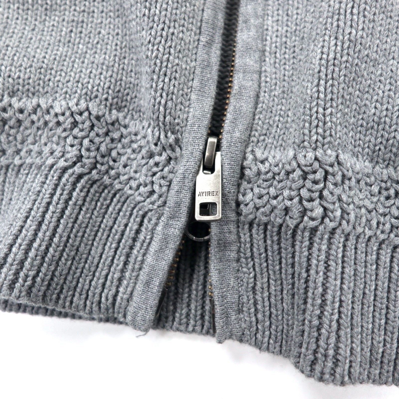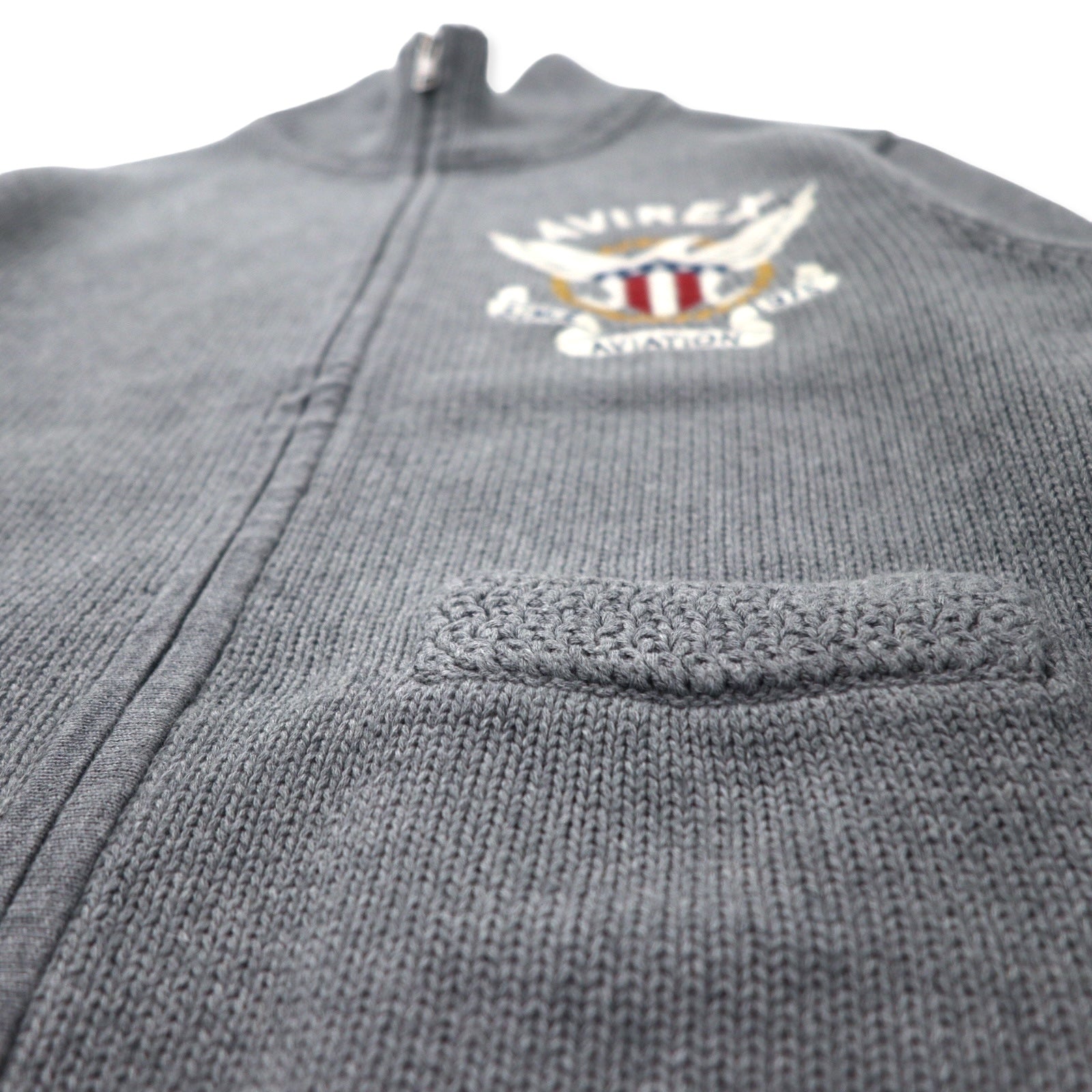 AVIREX ダブルジップ ドライバーズニット ジャケット セーター L グレー コットン ロゴ刺繍 6134009