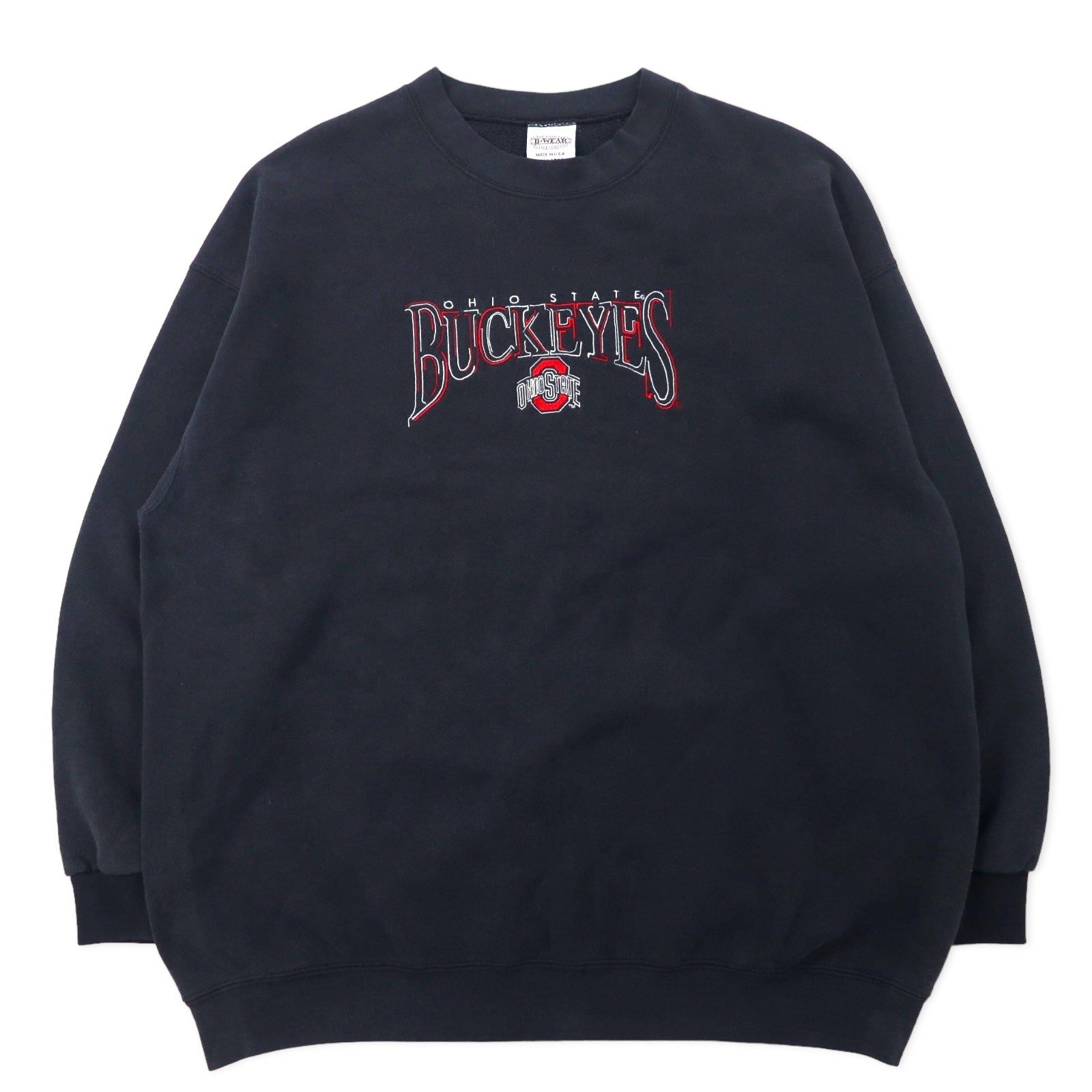 B WEAR USA製 90年代 カレッジ刺繍 スウェット XXL ブラック コットン OHIO STATE BUCKEYES ビッグサイズ
