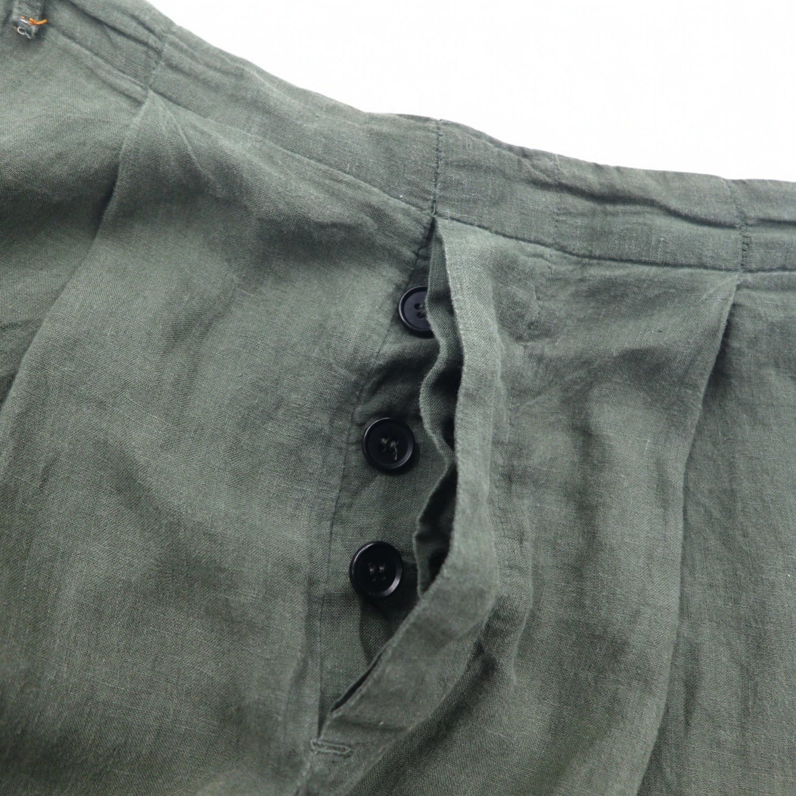 Badhiya リネン ワイドパンツ イージーパンツ FREE カーキ 麻 インド製
