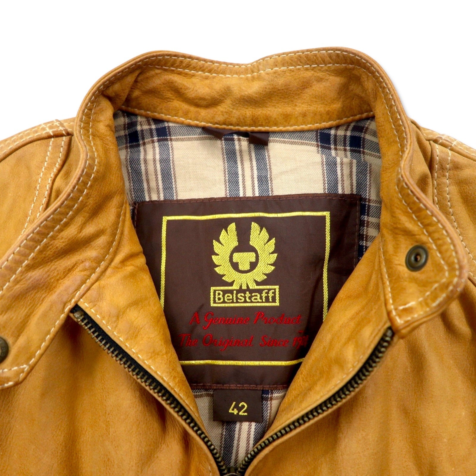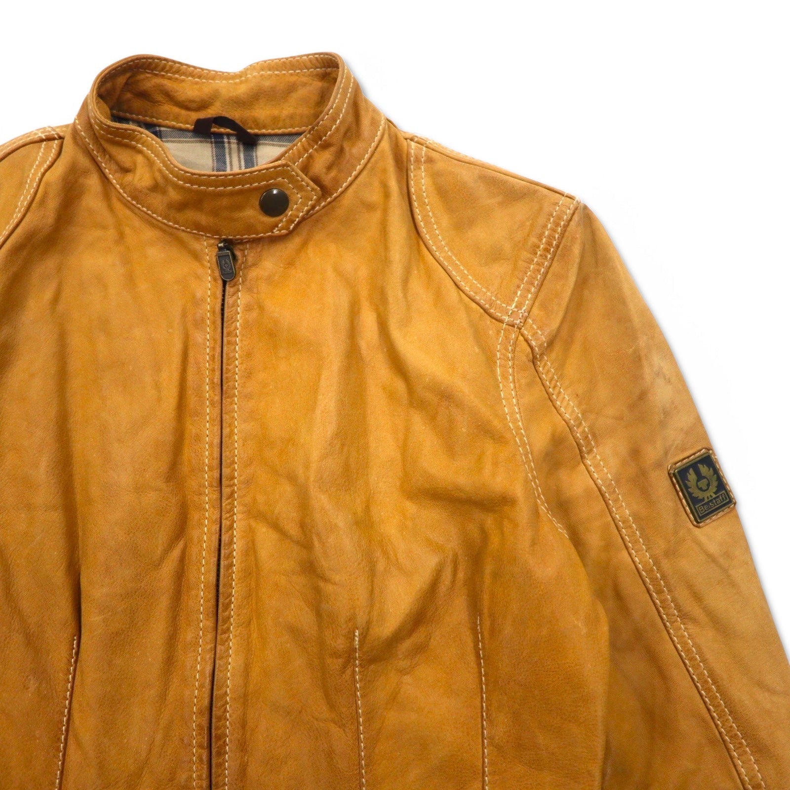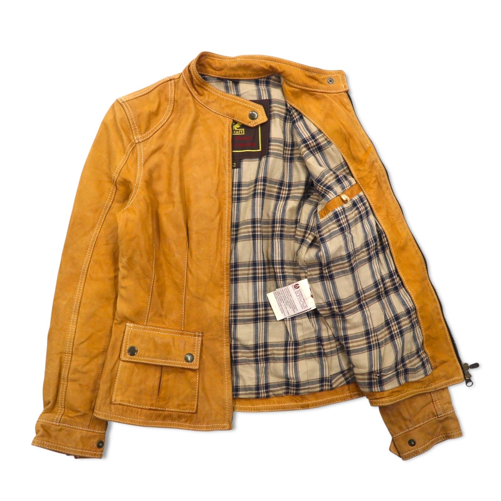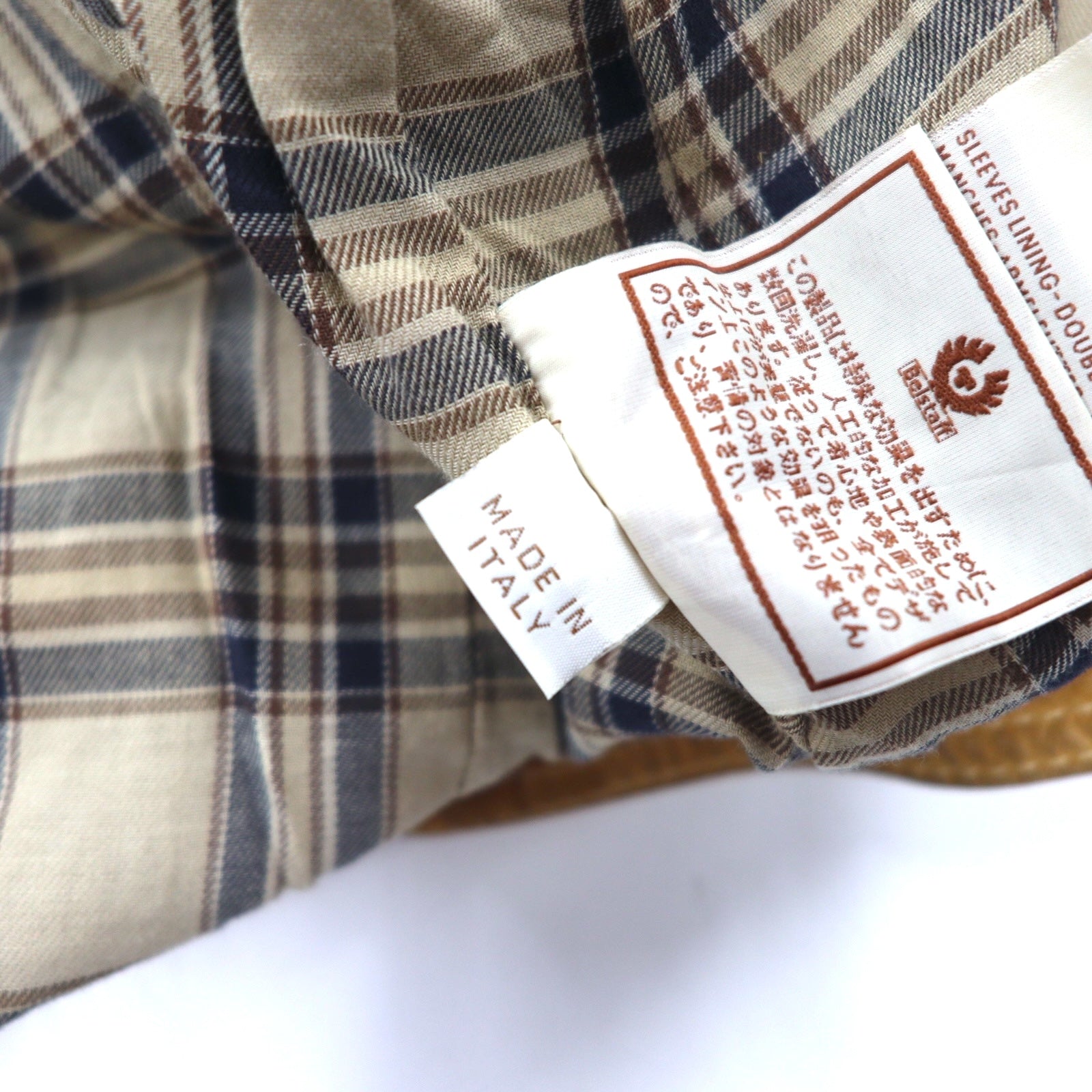 Belstaff GOLD Label イタリア製 レザー モーターサイクルジャケット ライダースジャケット XS ブラウン 裏地チェック ダブルジップ ヴィンテージ加工 ユニオンジャック