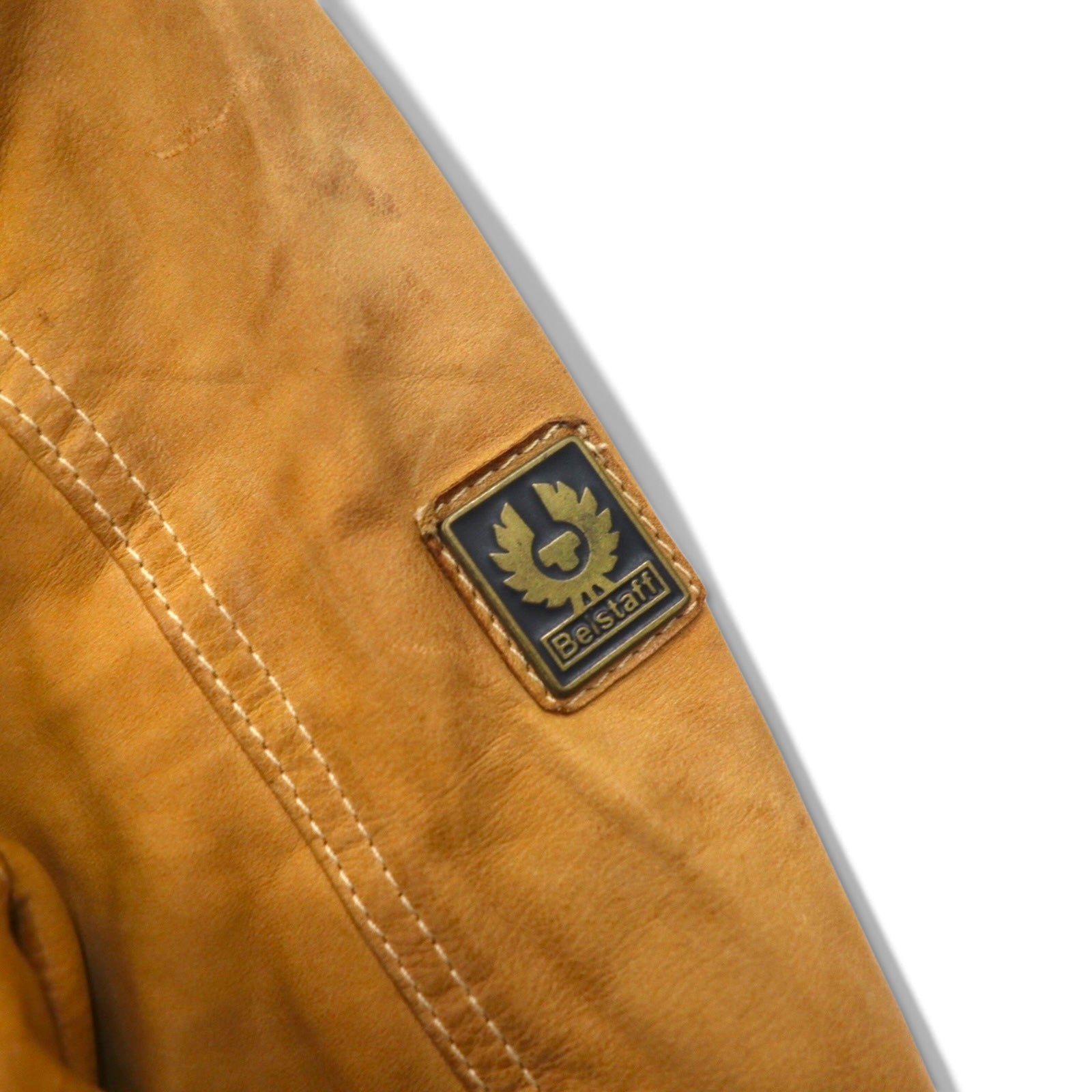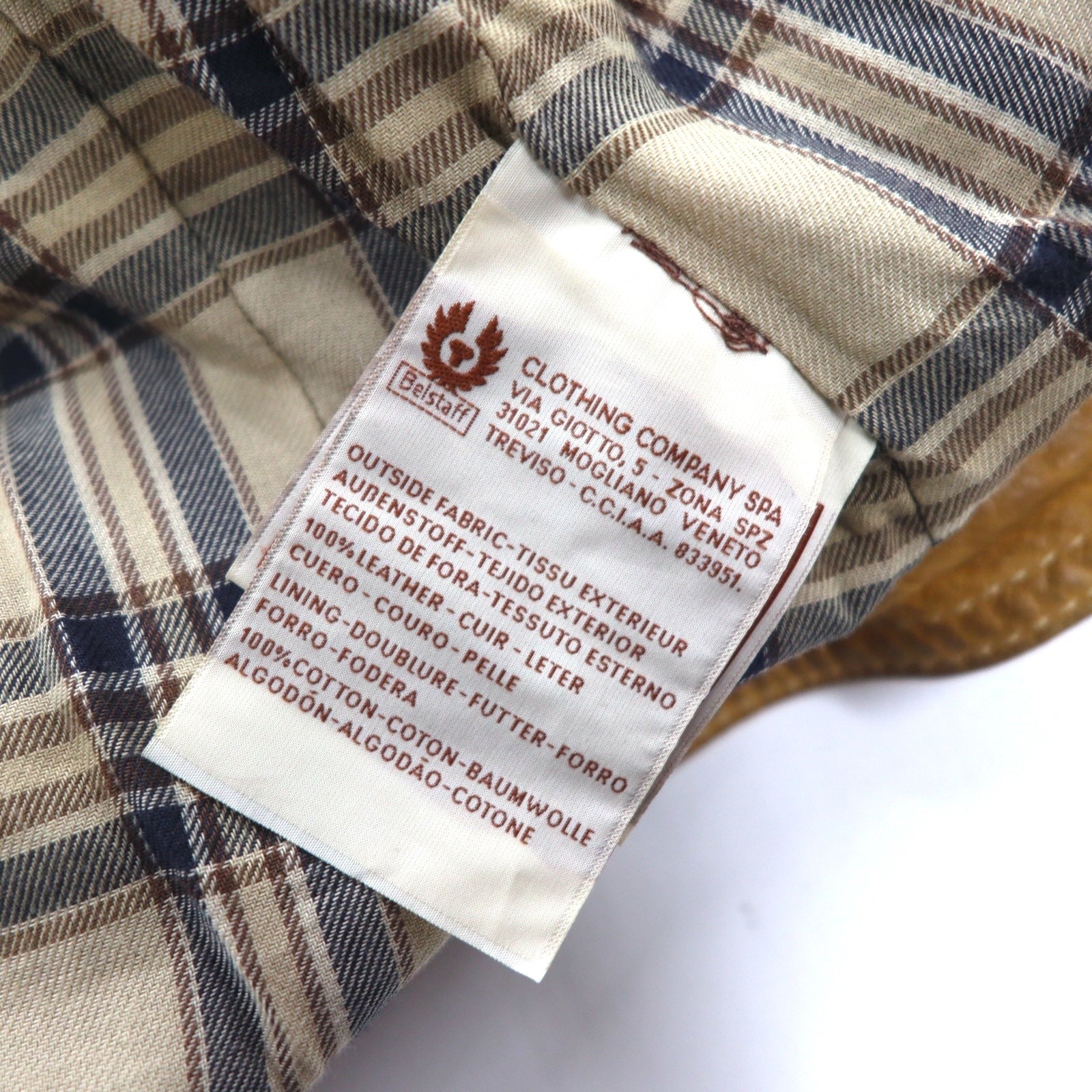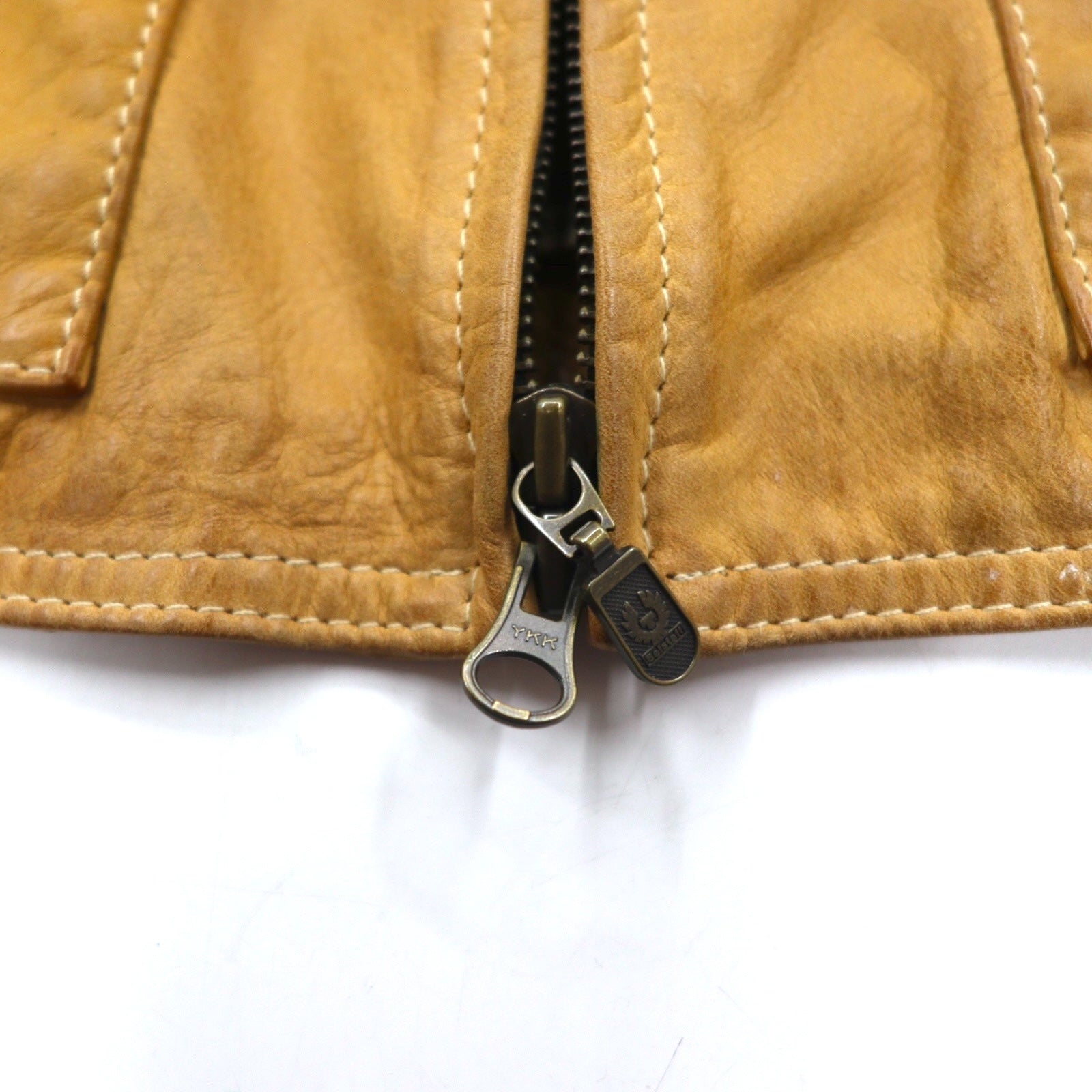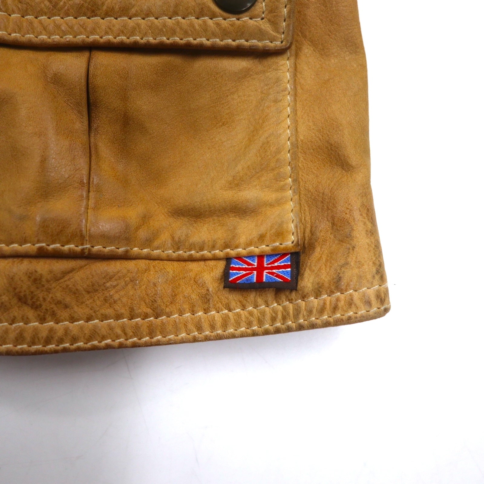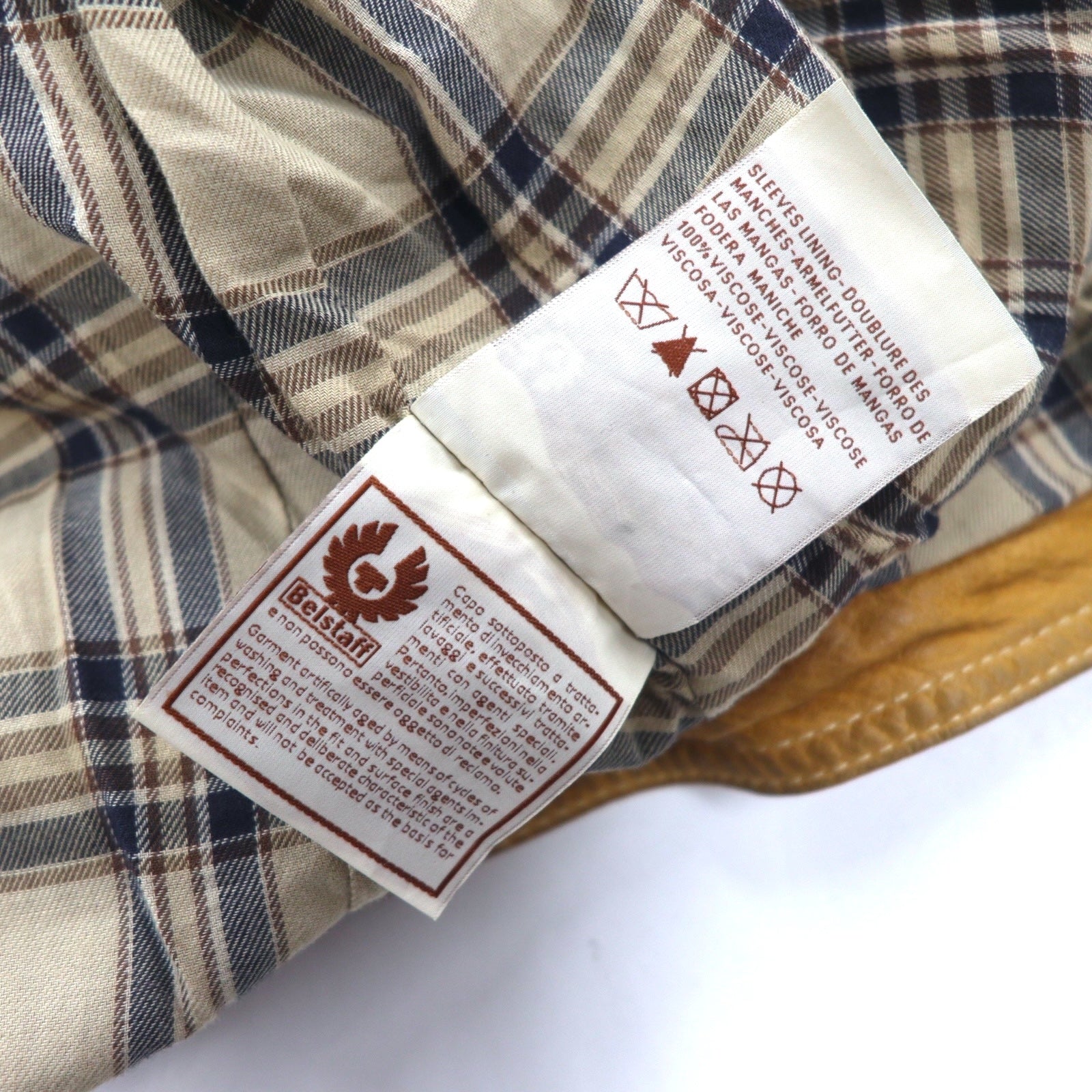 Belstaff GOLD Label イタリア製 レザー モーターサイクルジャケット ライダースジャケット XS ブラウン 裏地チェック ダブルジップ ヴィンテージ加工 ユニオンジャック