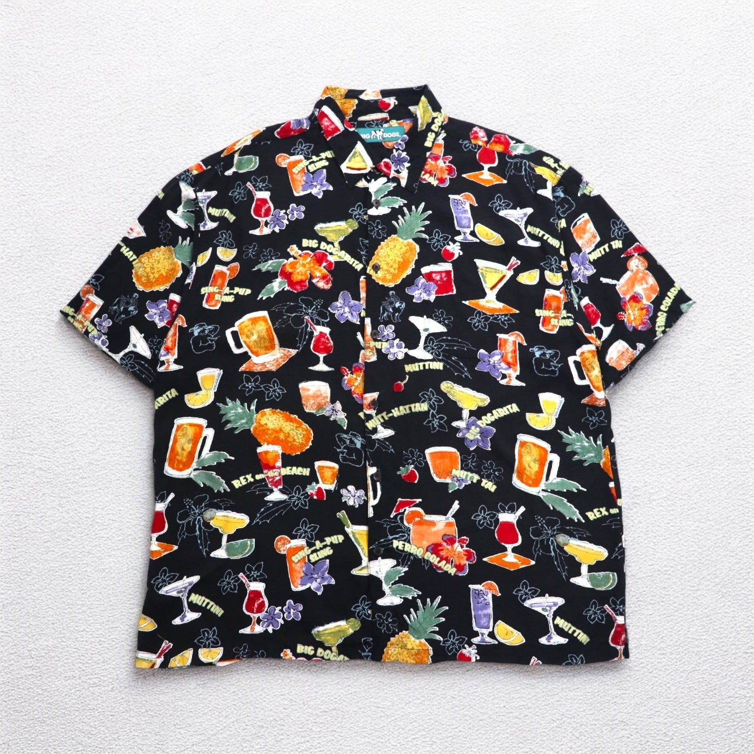 BIG DOGS 90年代 アロハシャツ 2XL ビッグサイズ ブラック レーヨン 総柄 お酒 カクテル 胸ポケット