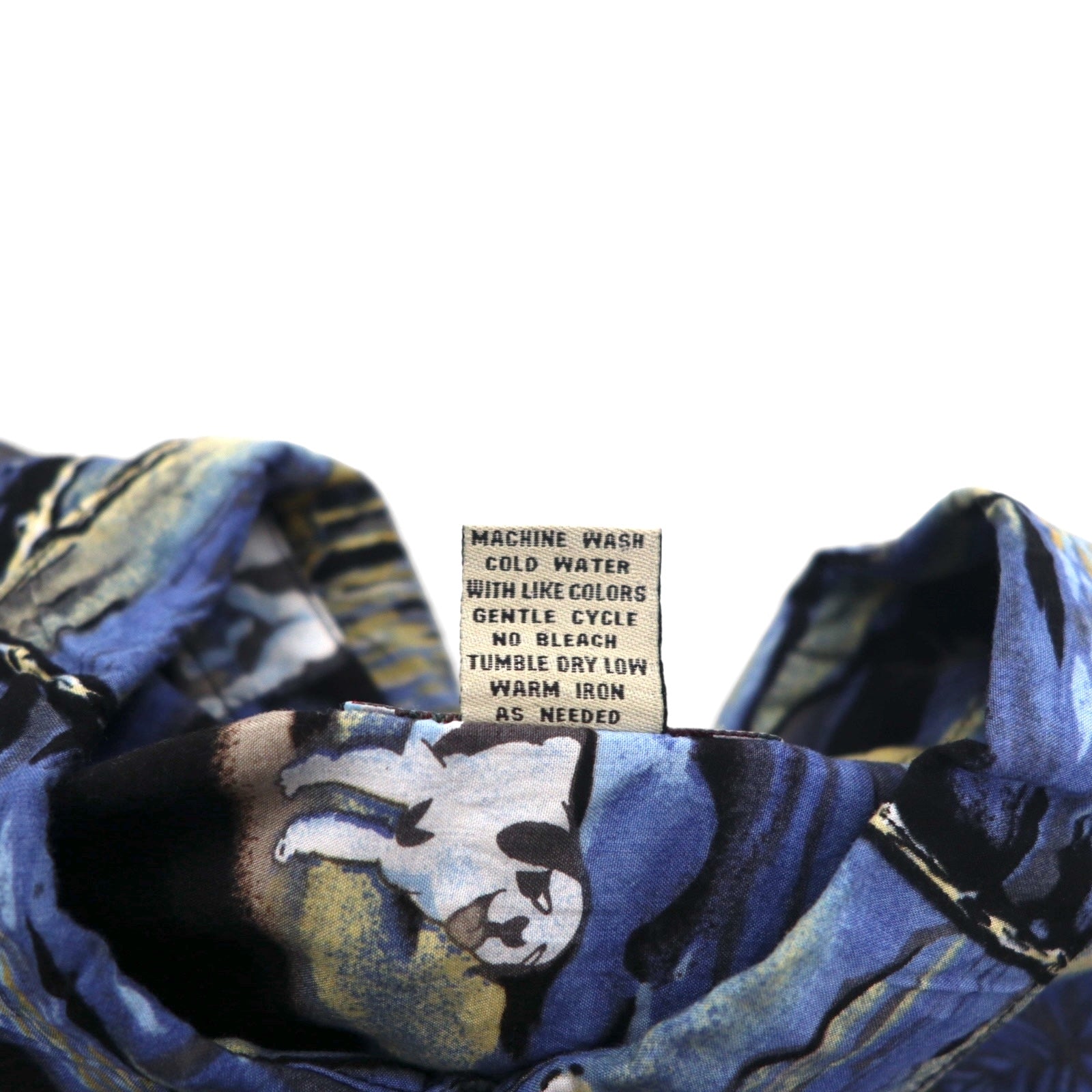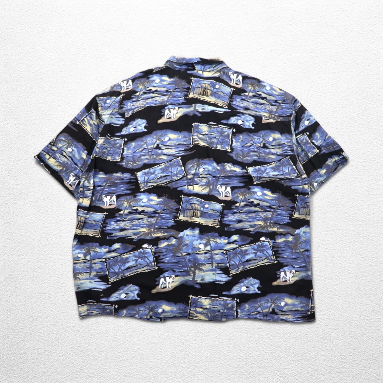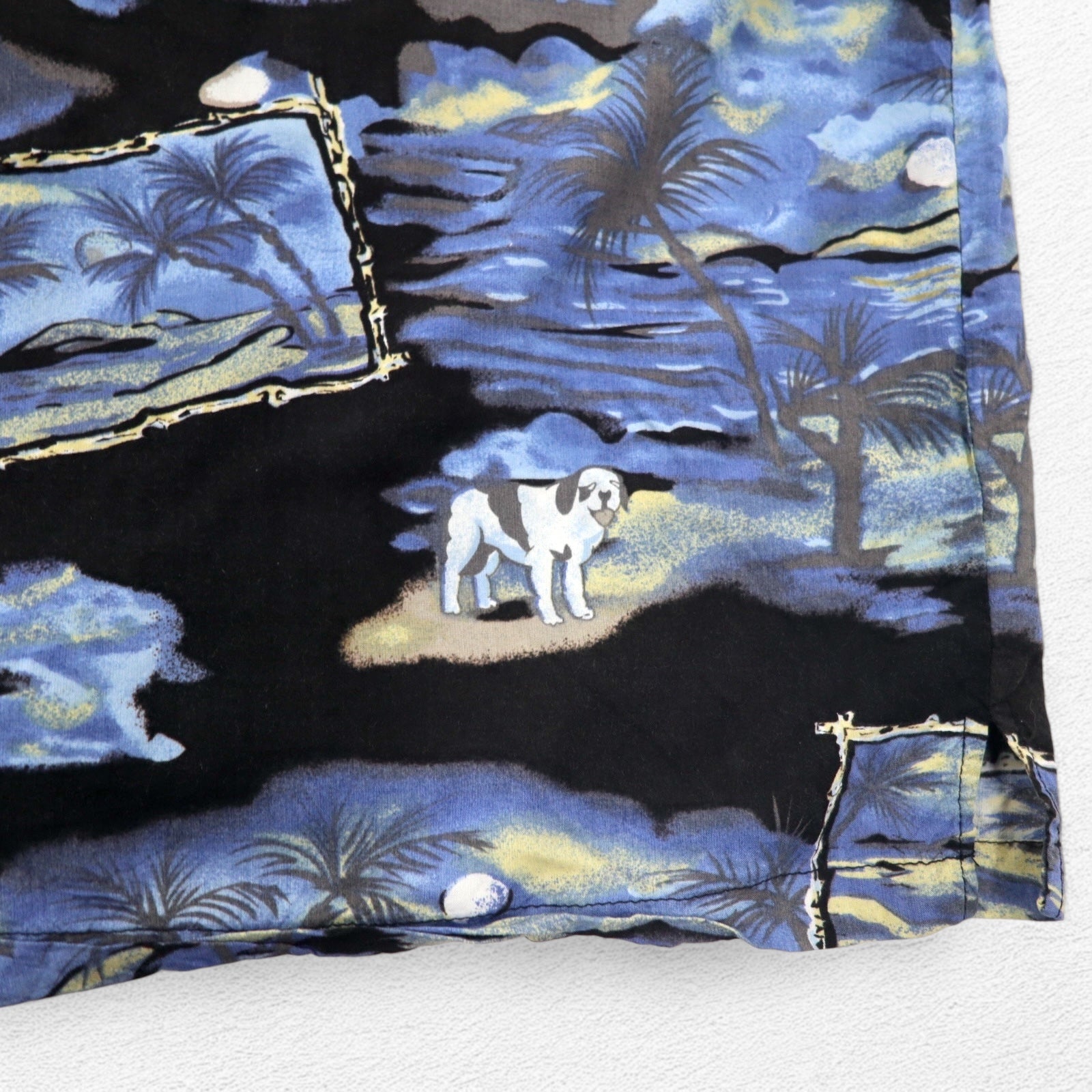 Big Dogs 90年代 アロハシャツ 4XL ビッグサイズ ブルー ブラック レーヨン 総柄 ヤシの木