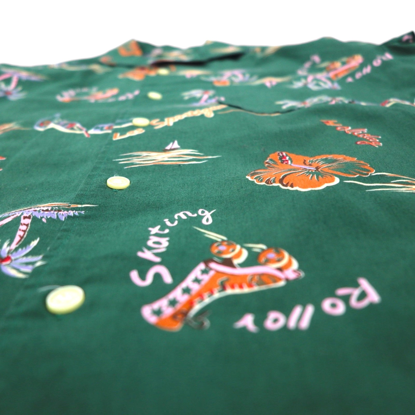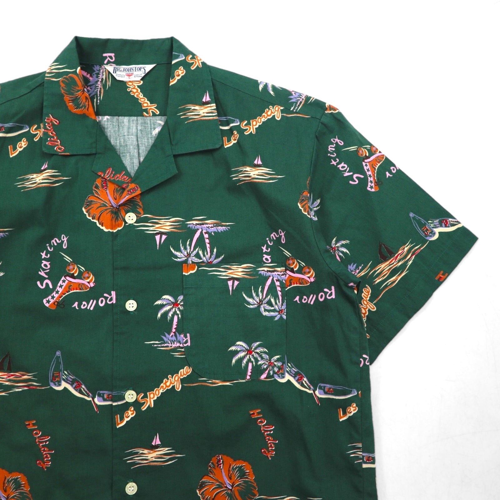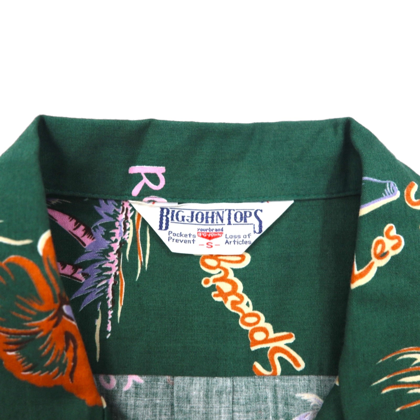BIG JOHN 90年代 オープンカラー アロハシャツ ボックスシャツ S グリーン コットン 総柄 ビーチ