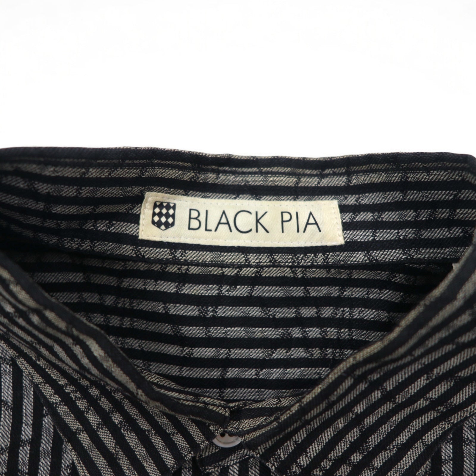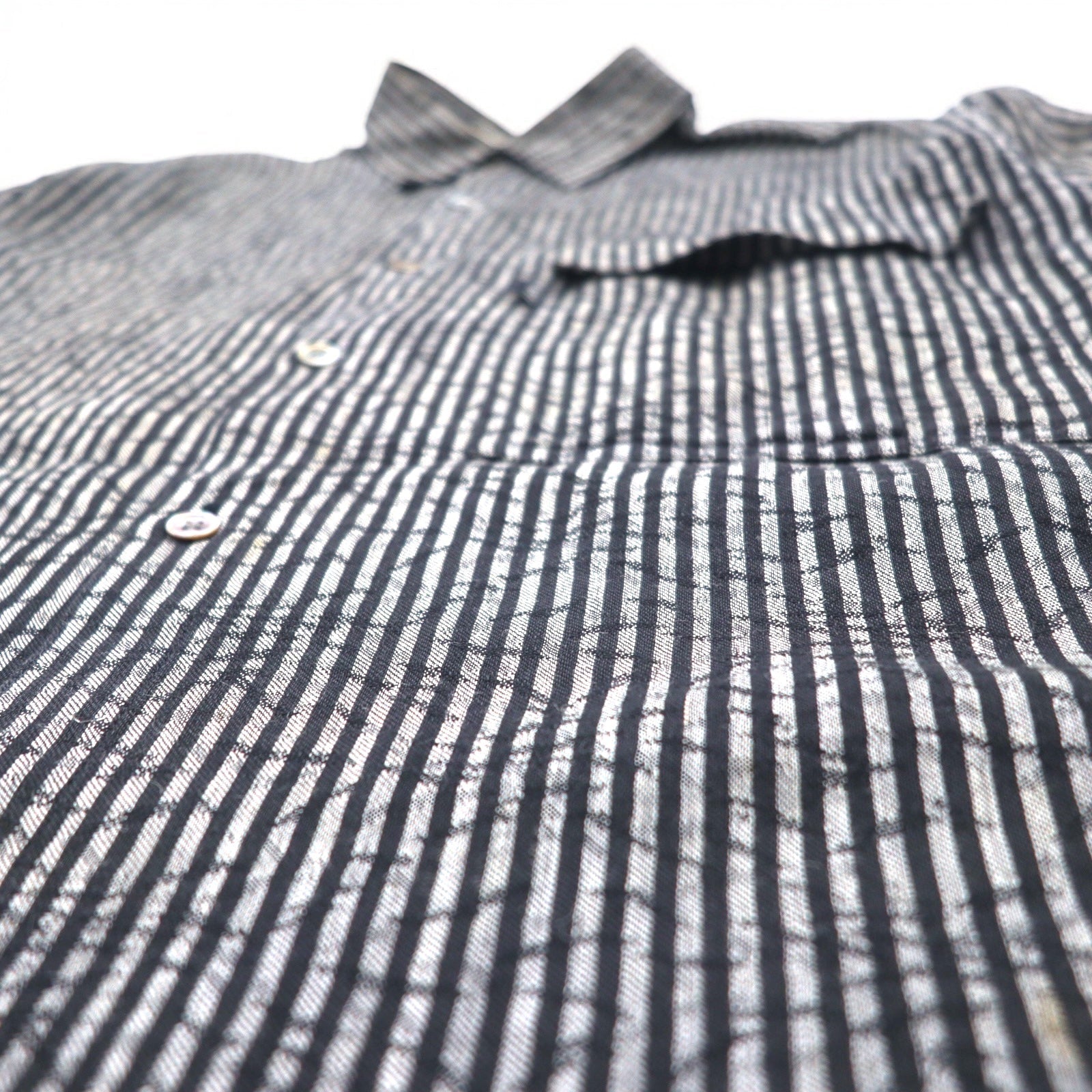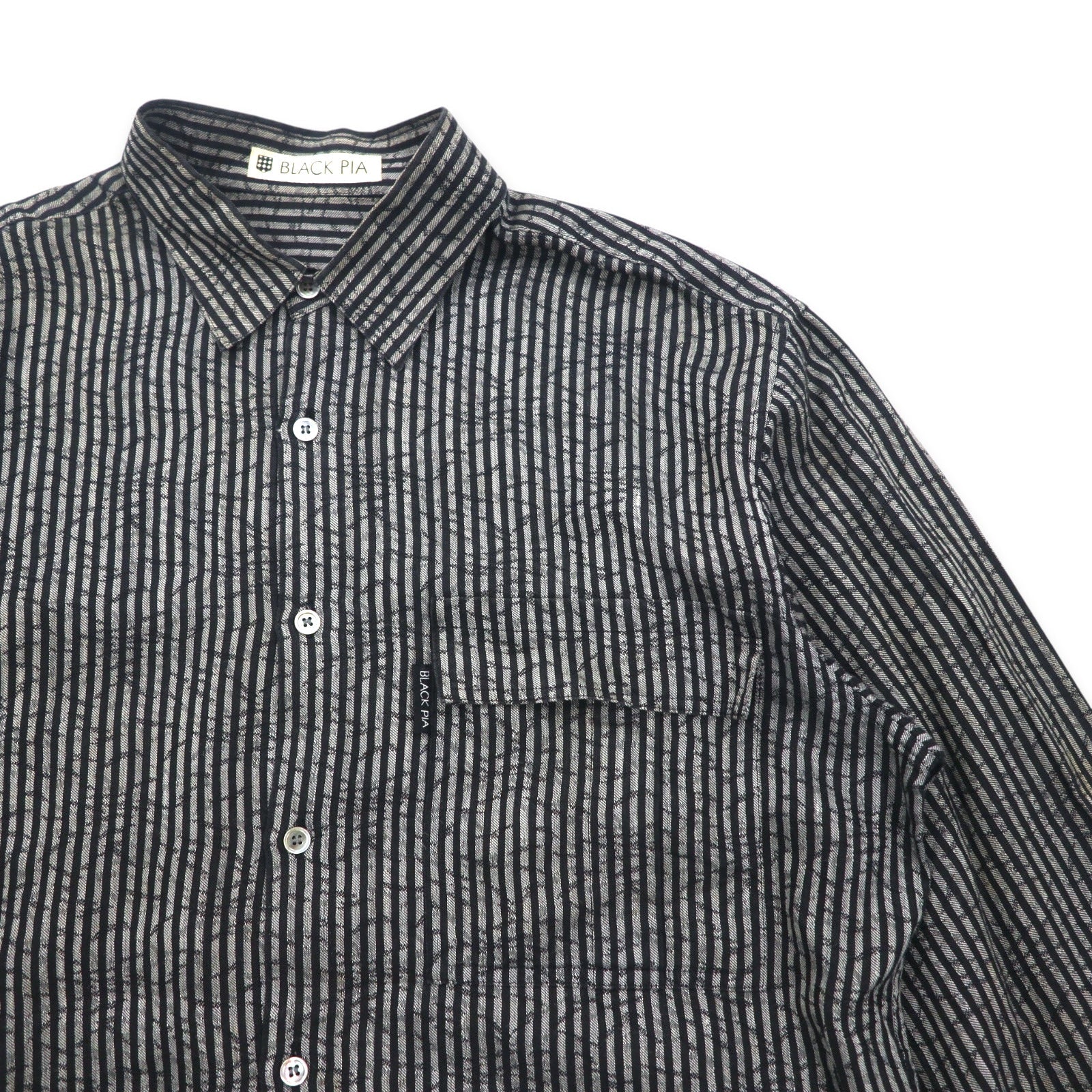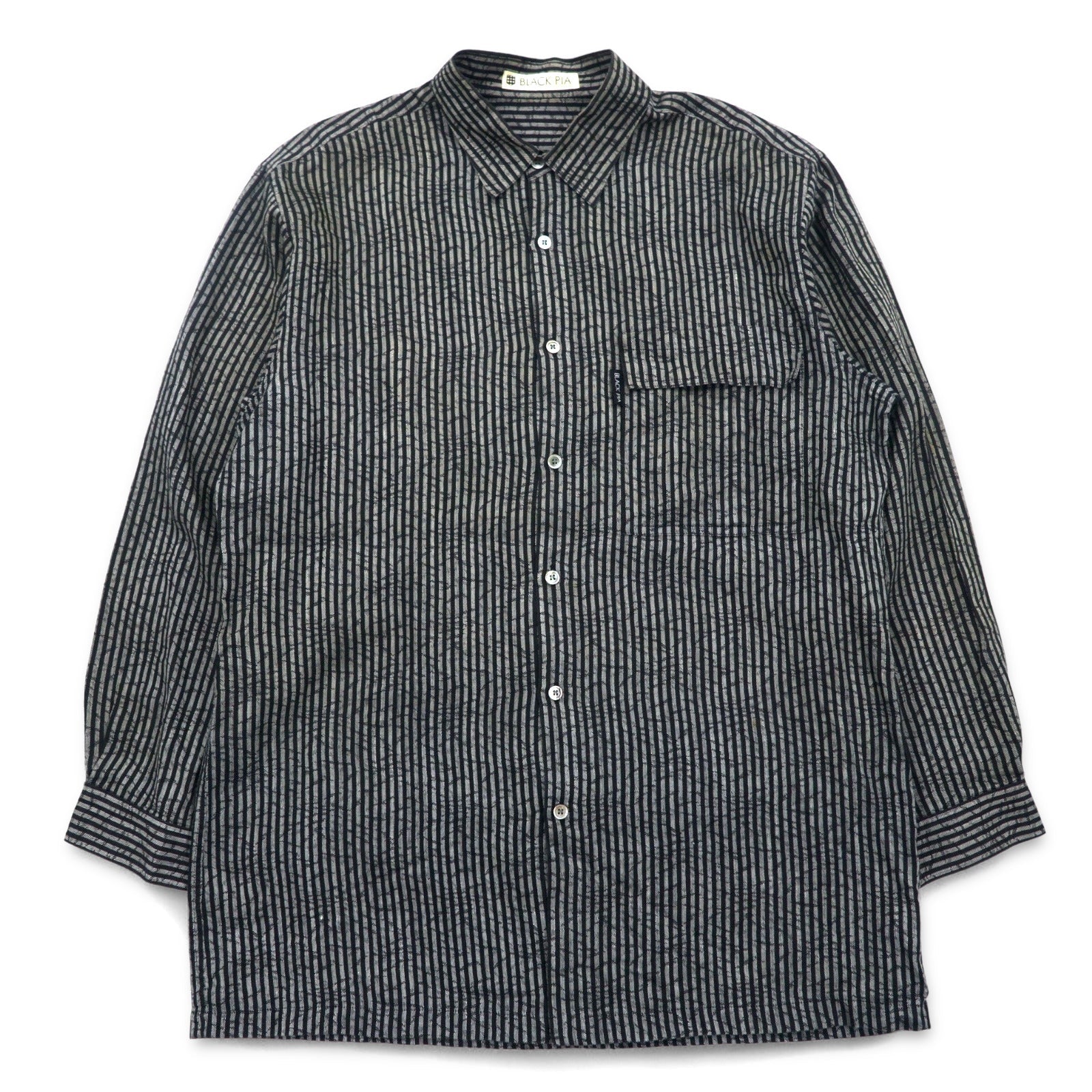BLACK PIA 90年代 リネン ストライプ シャツ L グレー ブラック フラップポケット 日本製