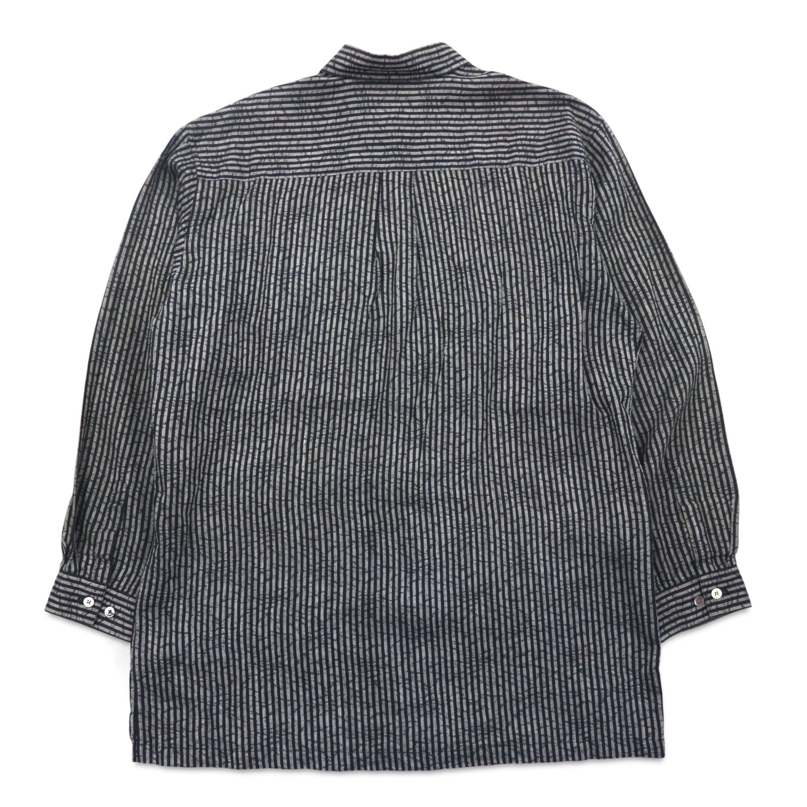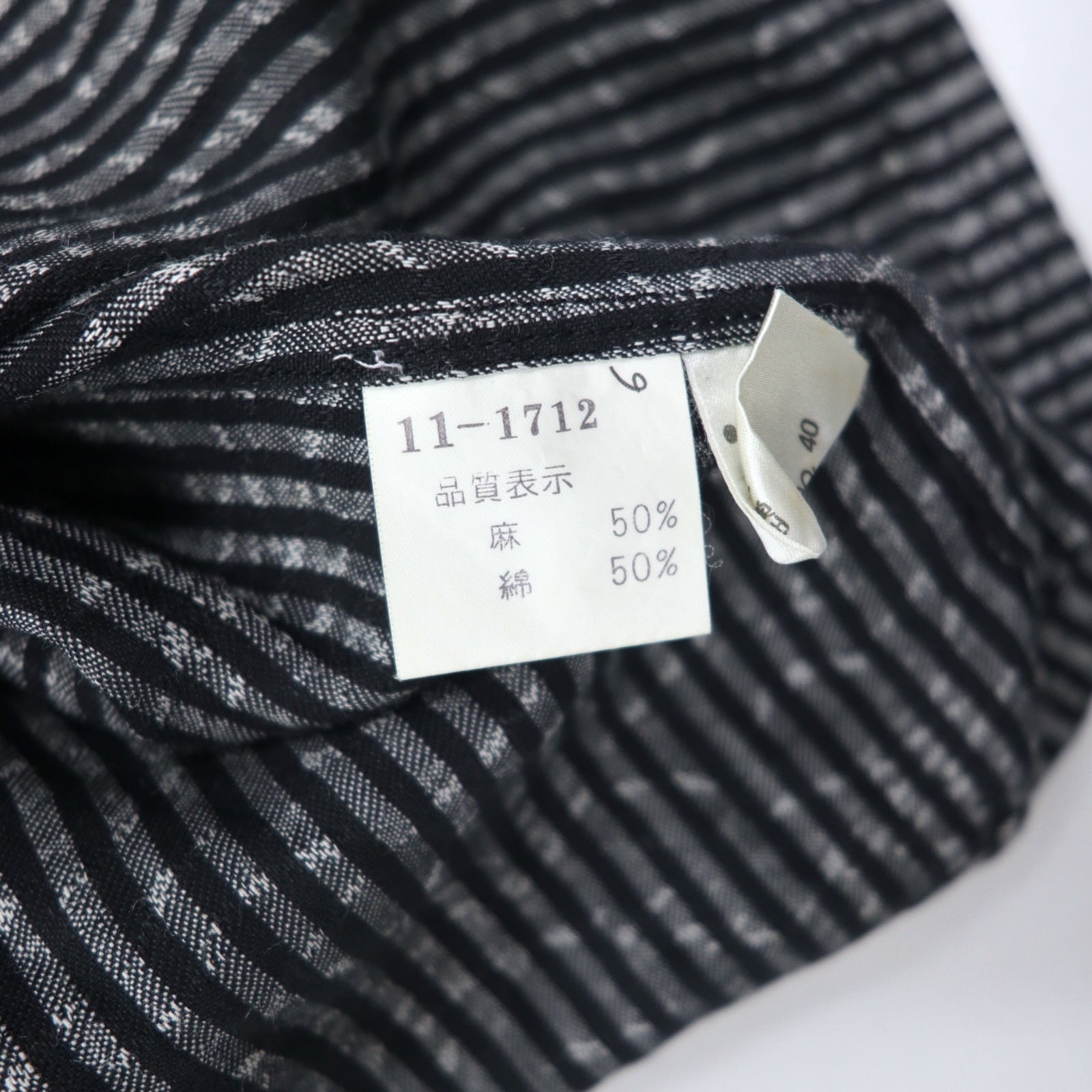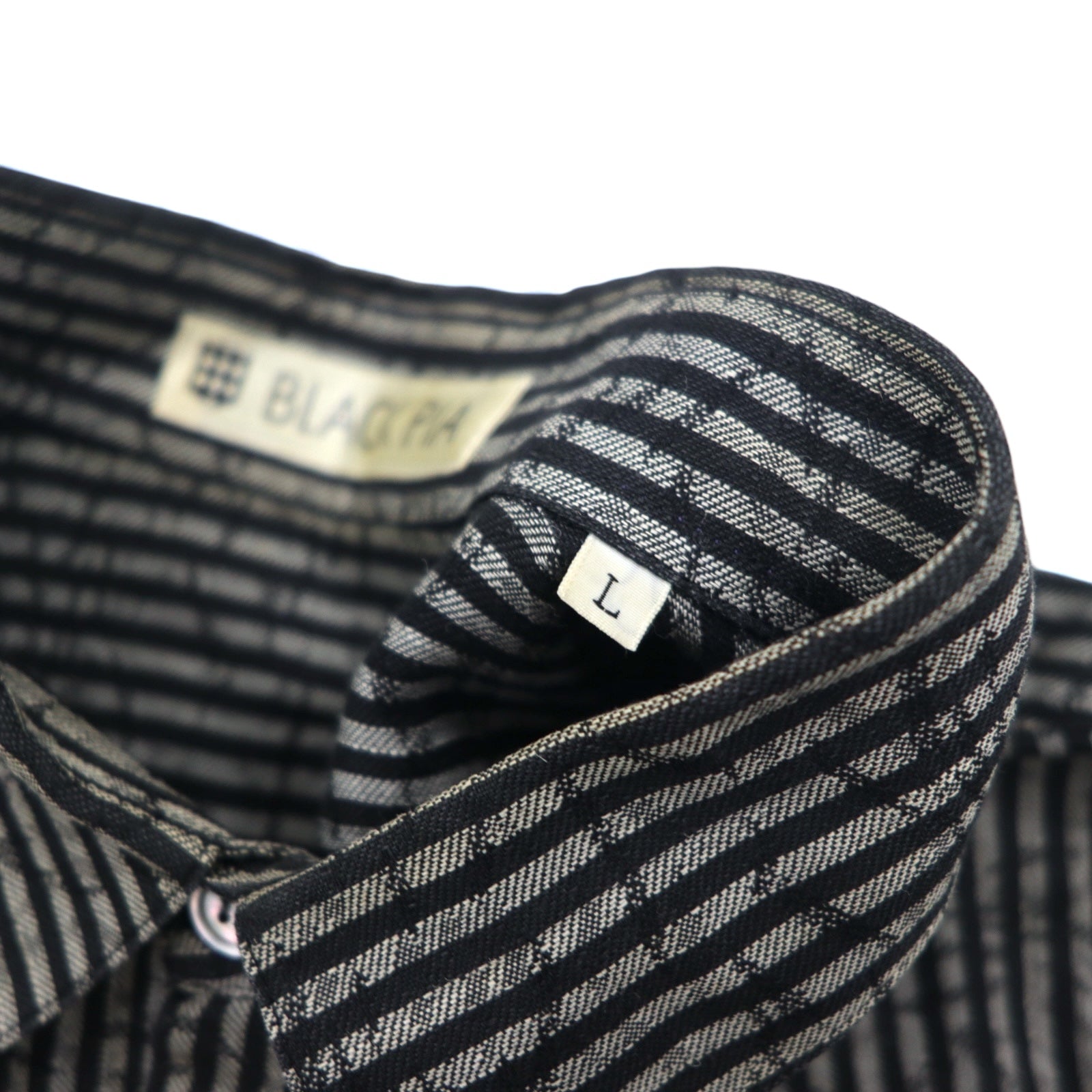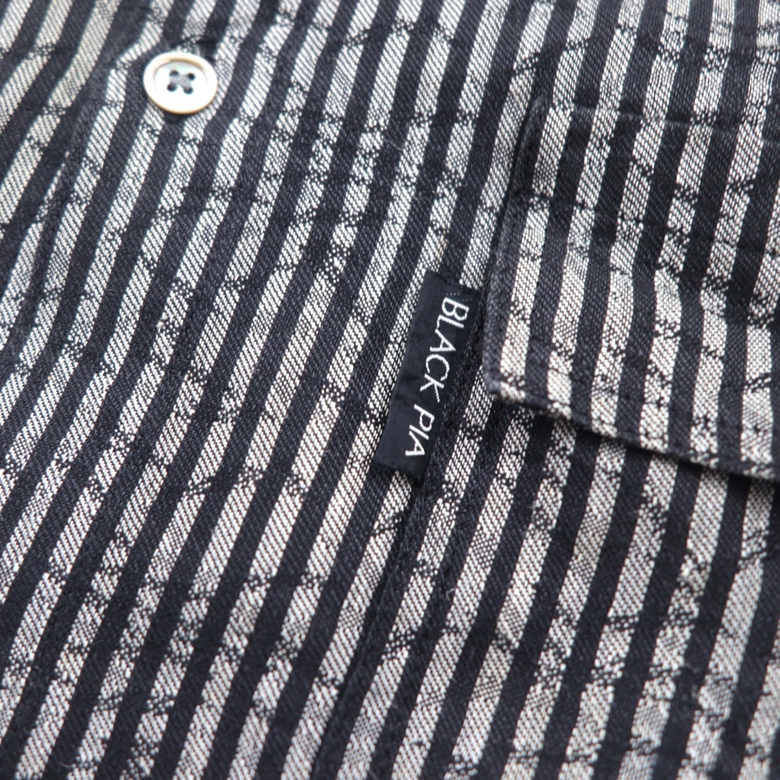 BLACK PIA 90年代 リネン ストライプ シャツ L グレー ブラック フラップポケット 日本製