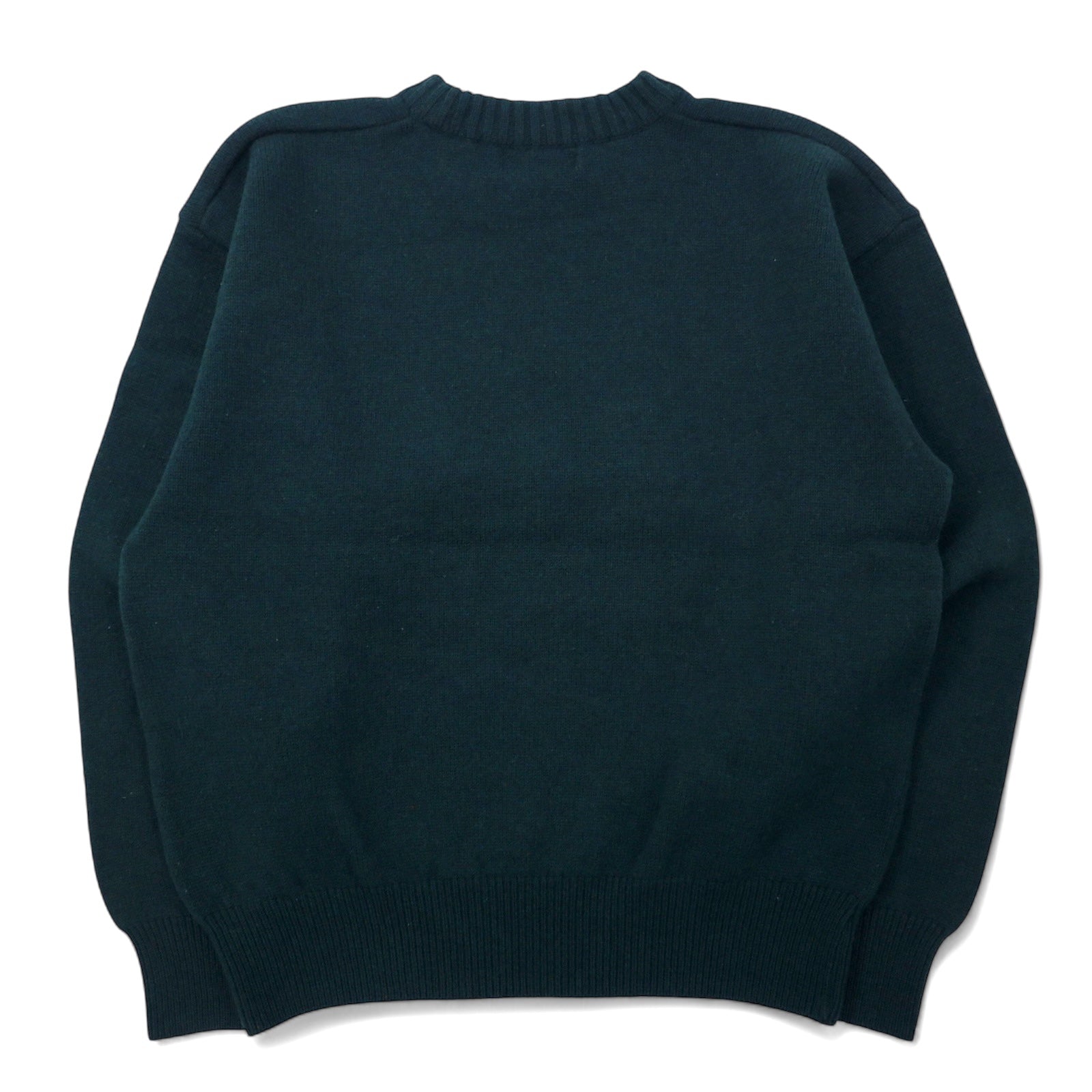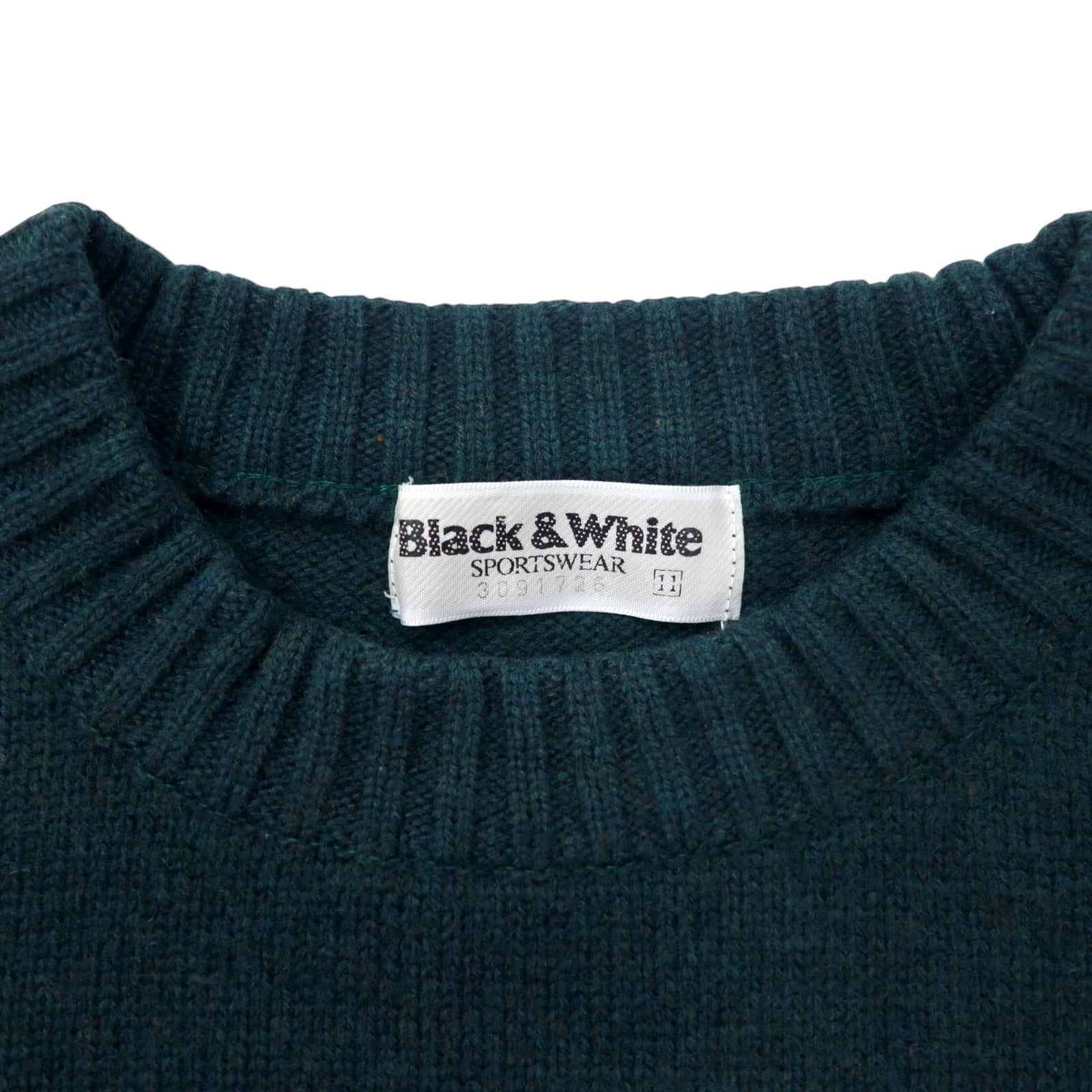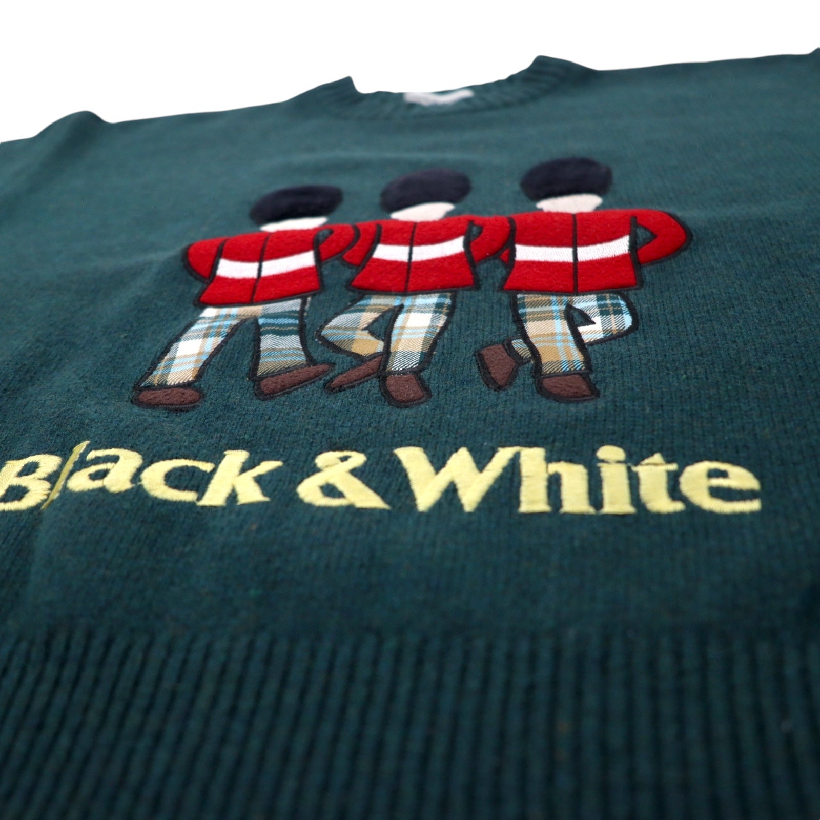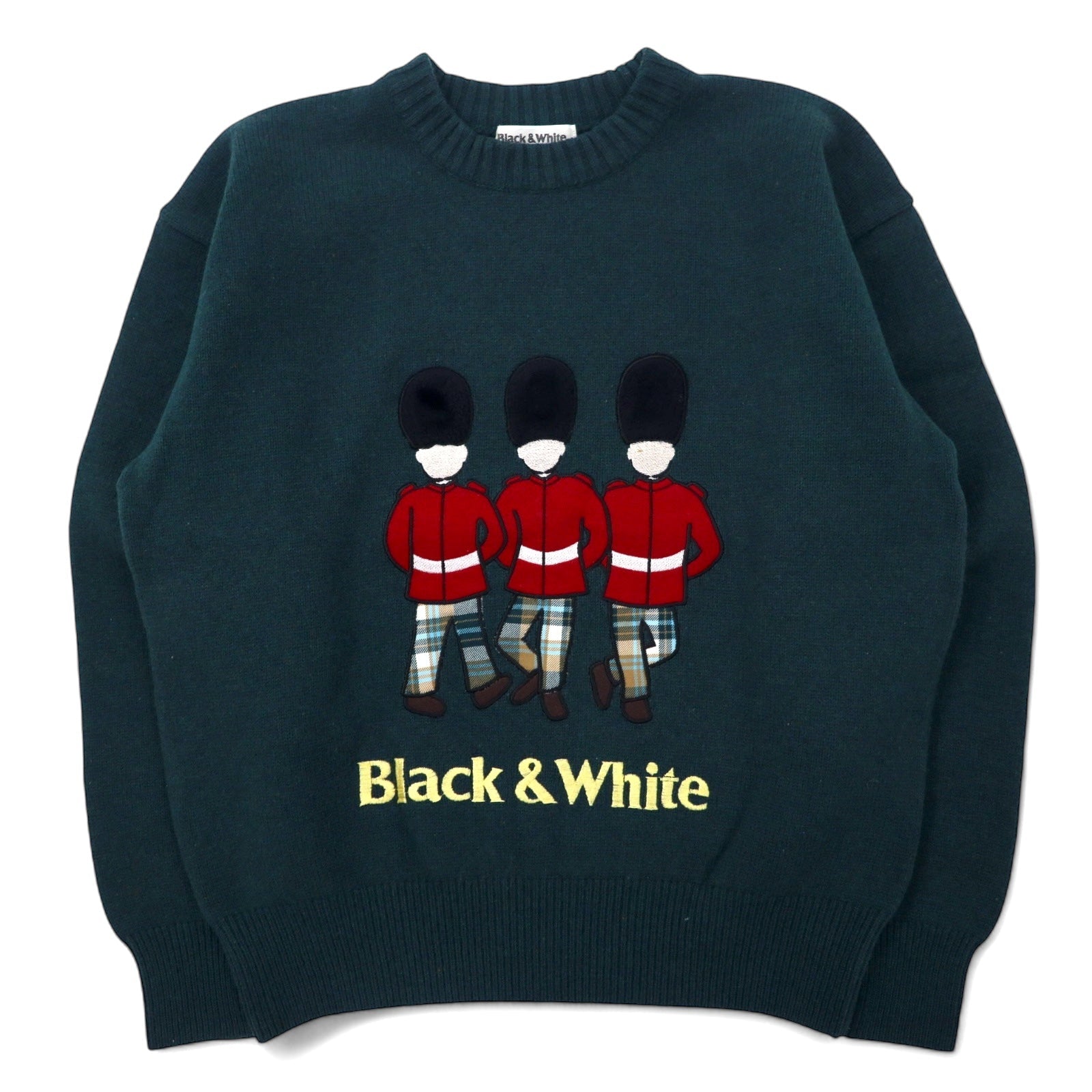 Black & White 90年代 レトロ ハイゲージニット セーター 11 グリーン ウール ロゴ刺繍 イギリス近衛兵 日本製