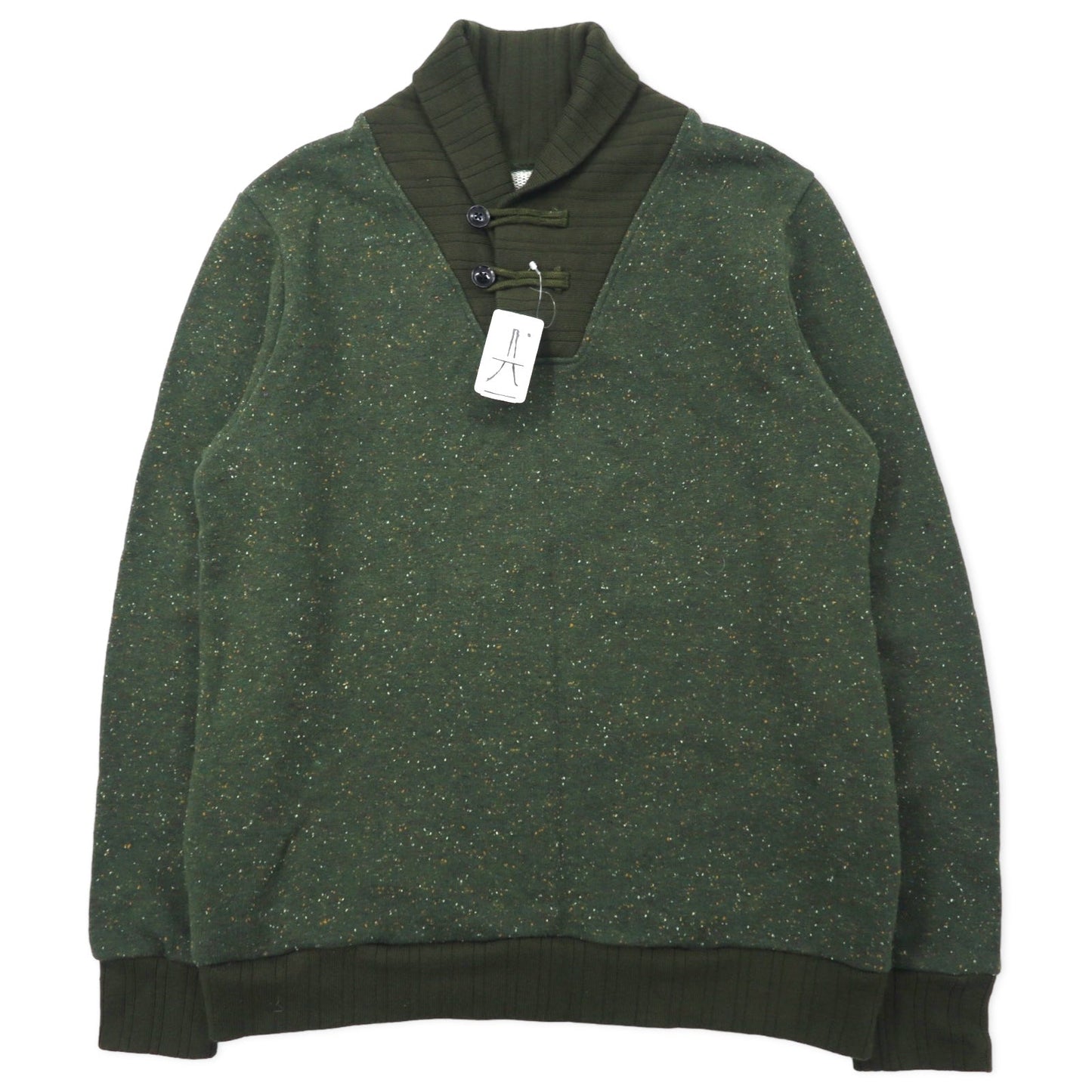 BLUE / BLUE ショールカラー スウェット ONE カーキ コットン カラーネップ 日本製 未使用品