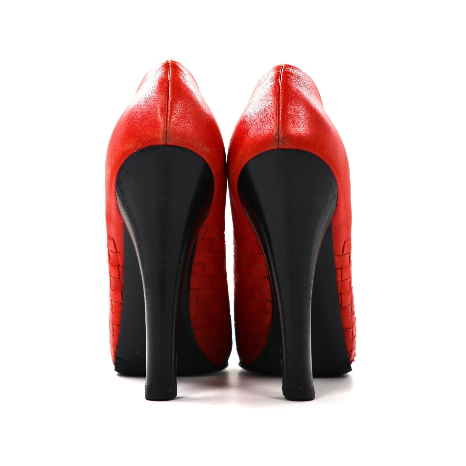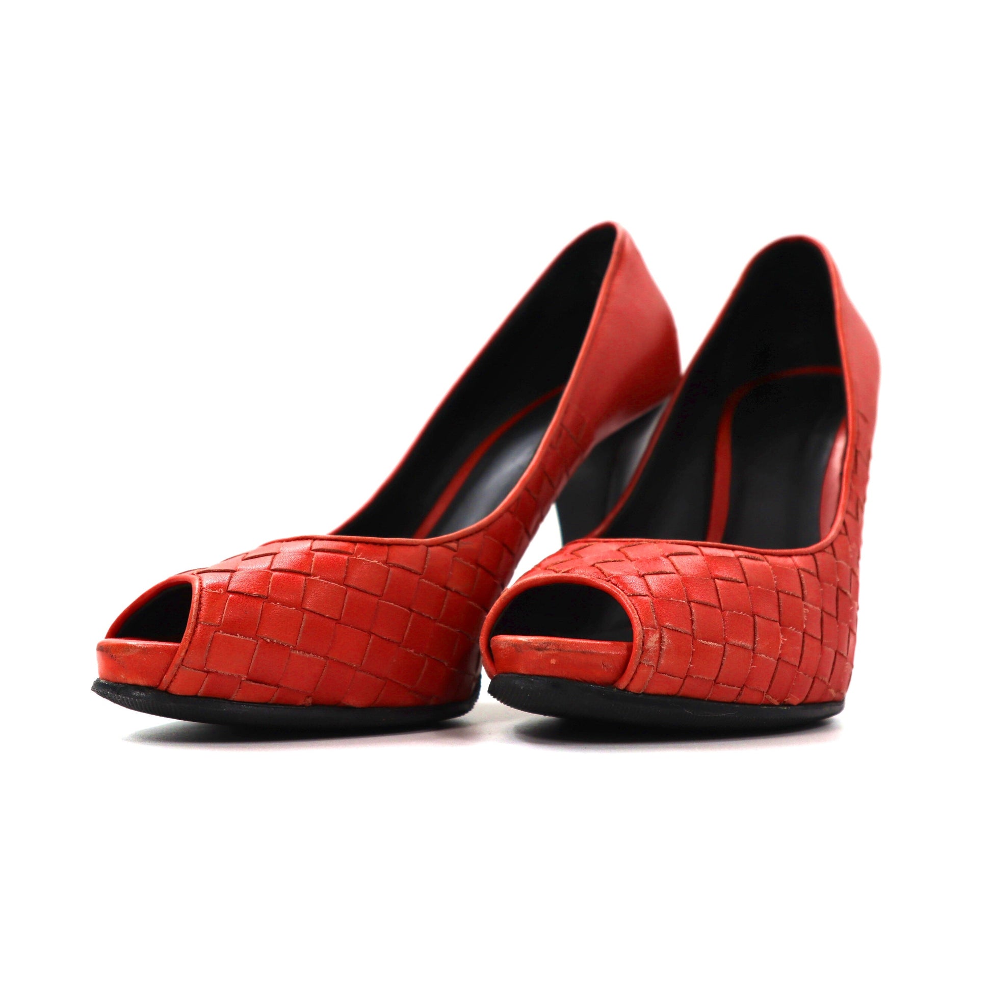 BOTTEGA VENETA ハイヒールサンダル 24cm レザー 編み込み イントレチャート イタリア製