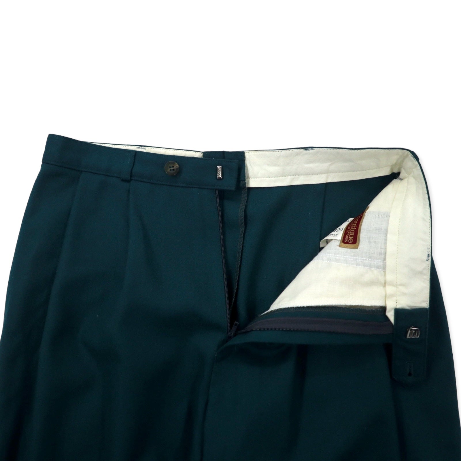 BOUTIQUE by Elegance S.A. Paris 西ドイツ製 80年代 2タック ワイド スラックスパンツ 40 グリーン ウール ユーロヴィンテージ