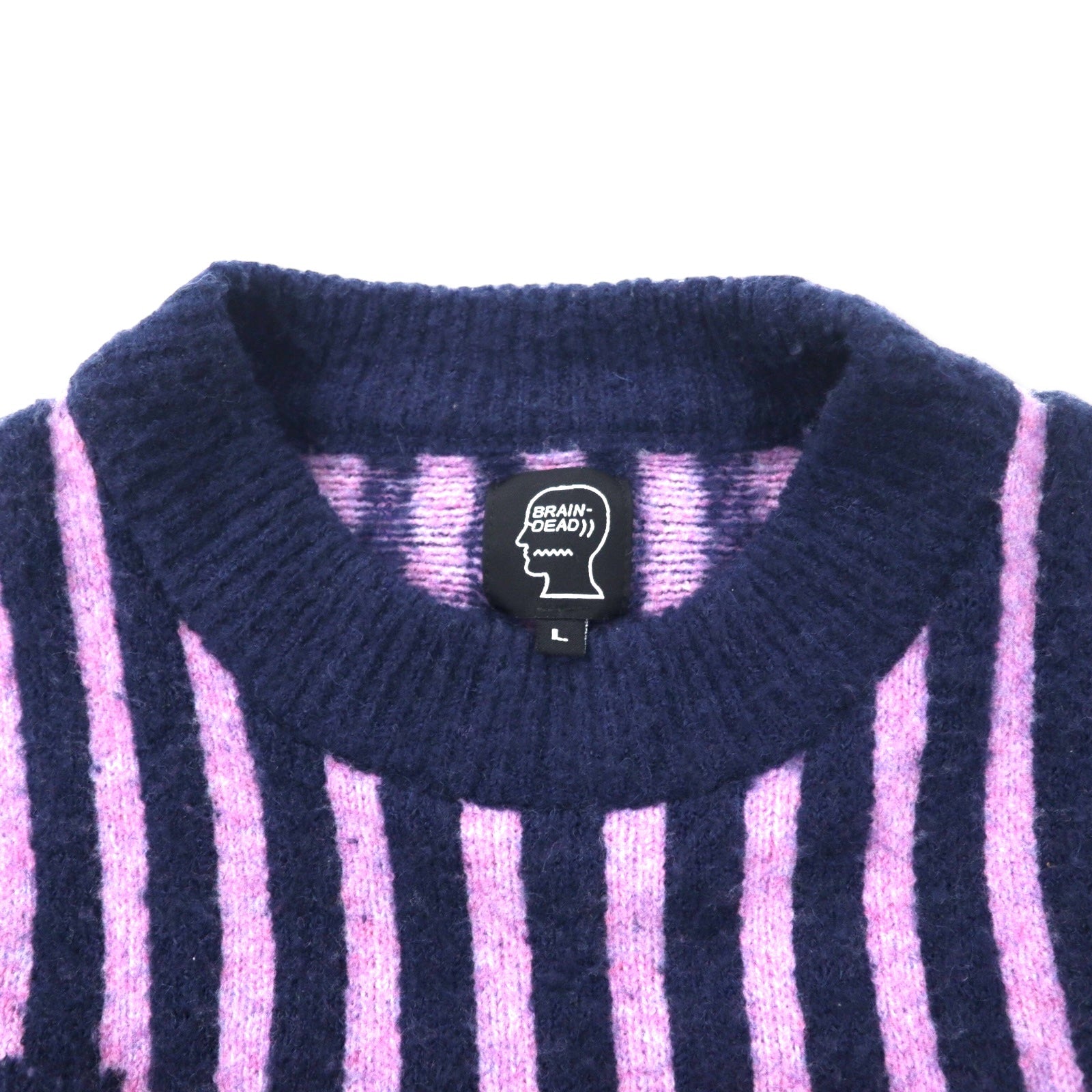 BRAIN DEAD ロゴモチーフ モックネック ニット セーター L パープル ネイビー マルチストライプ アクリル VARIED STRIPE MOCK NECK SWEATER
