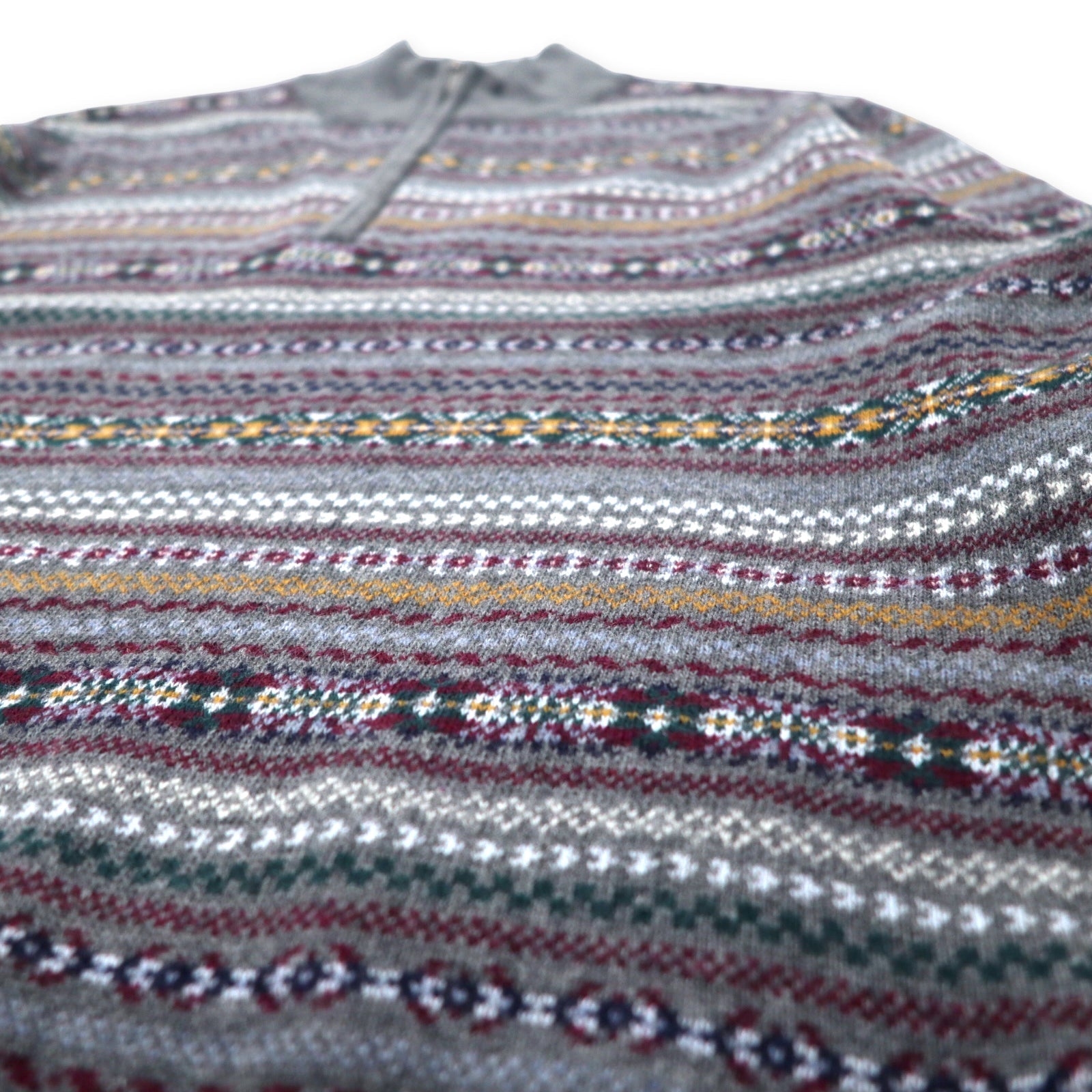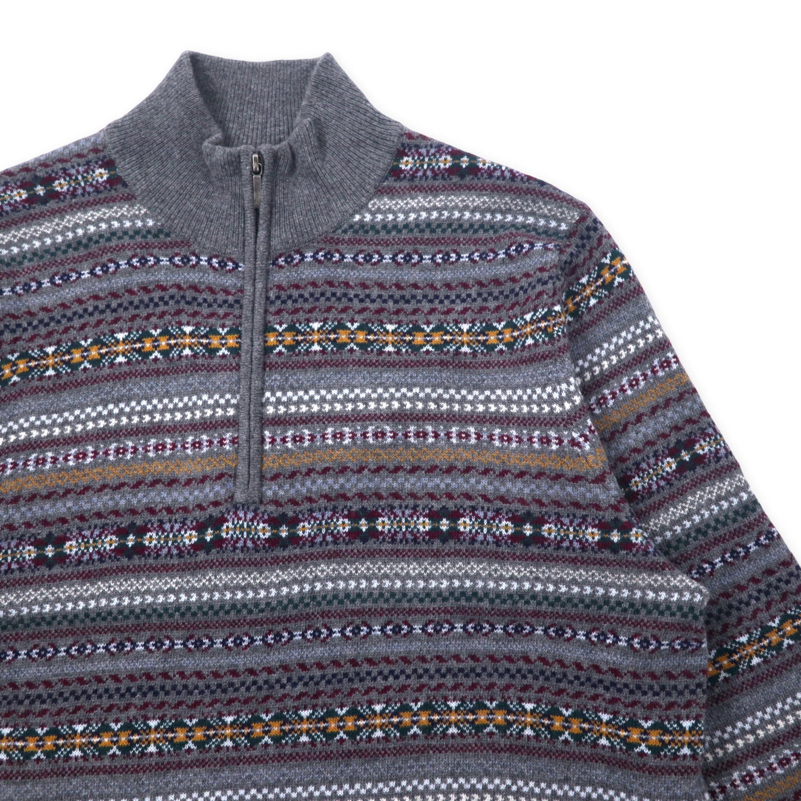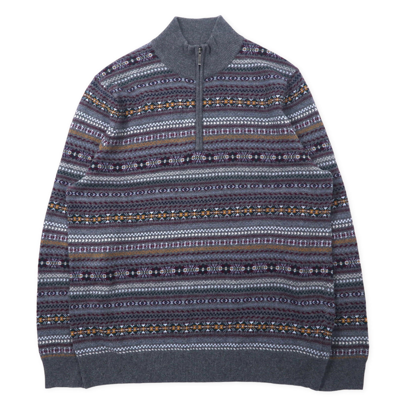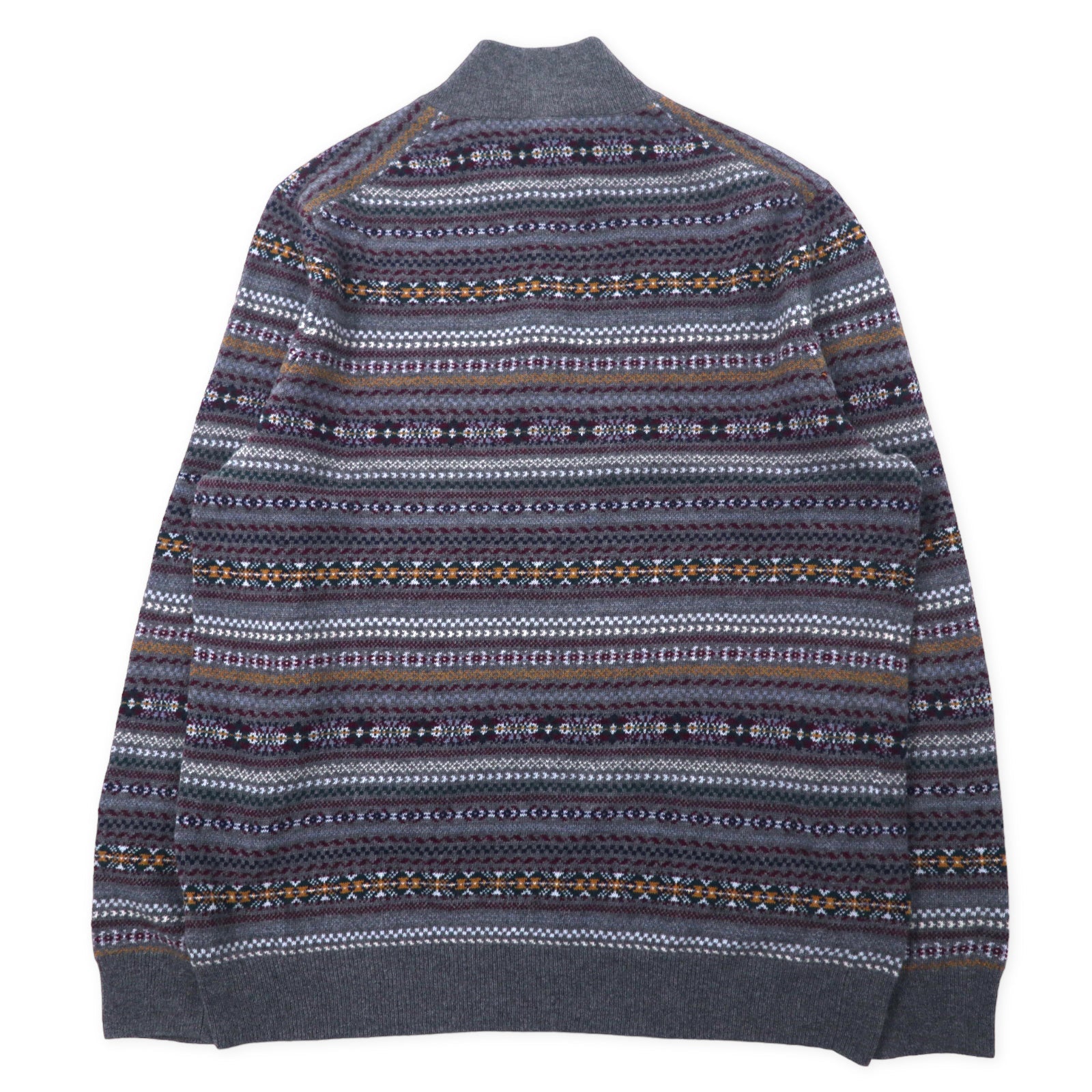 BROOKS BROTHERS ハーフジップ ノルディック ニット セーター L グレー 総柄 メリノウール