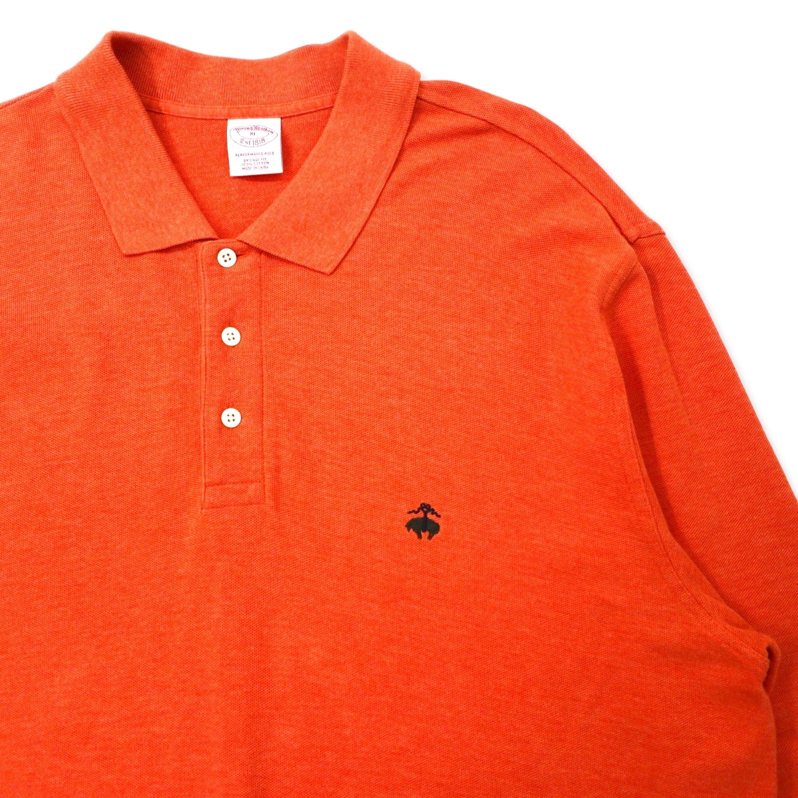 Brooks Brothers 長袖 ポロシャツ XL オレンジ コットン 鹿の子 ワンポイントロゴ刺繍
