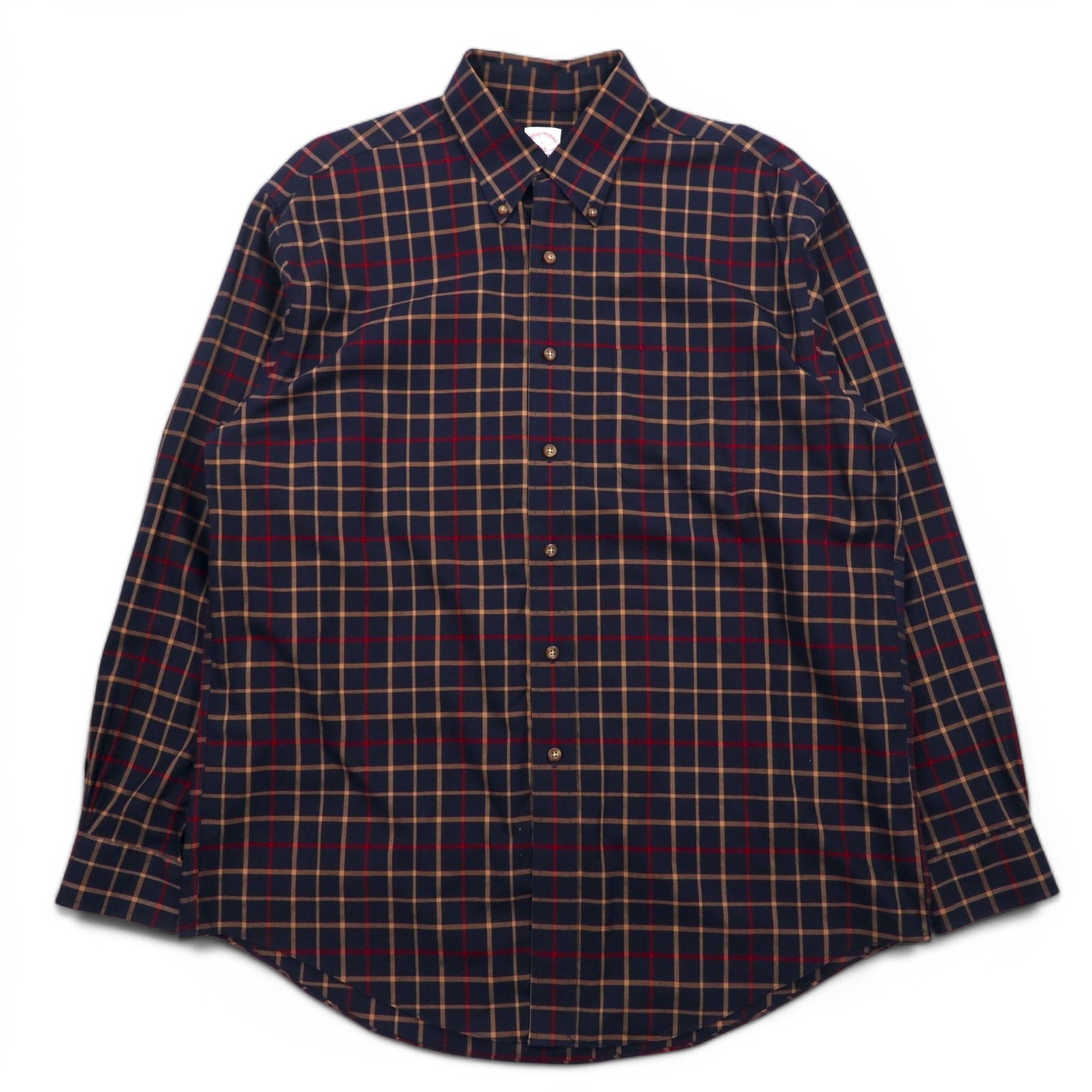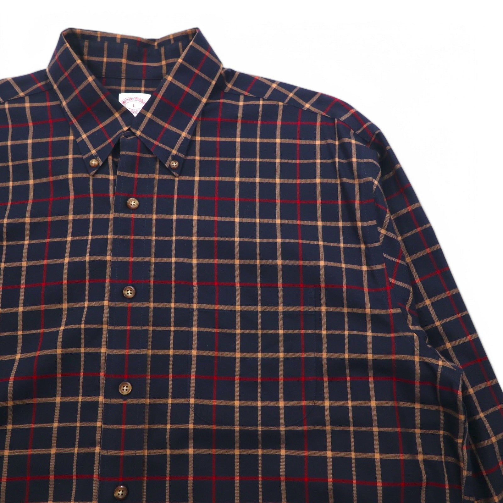 Brooks Brothers 346 ボタンダウンシャツ L ネイビー チェック コットン ビッグサイズ ノンアイロン