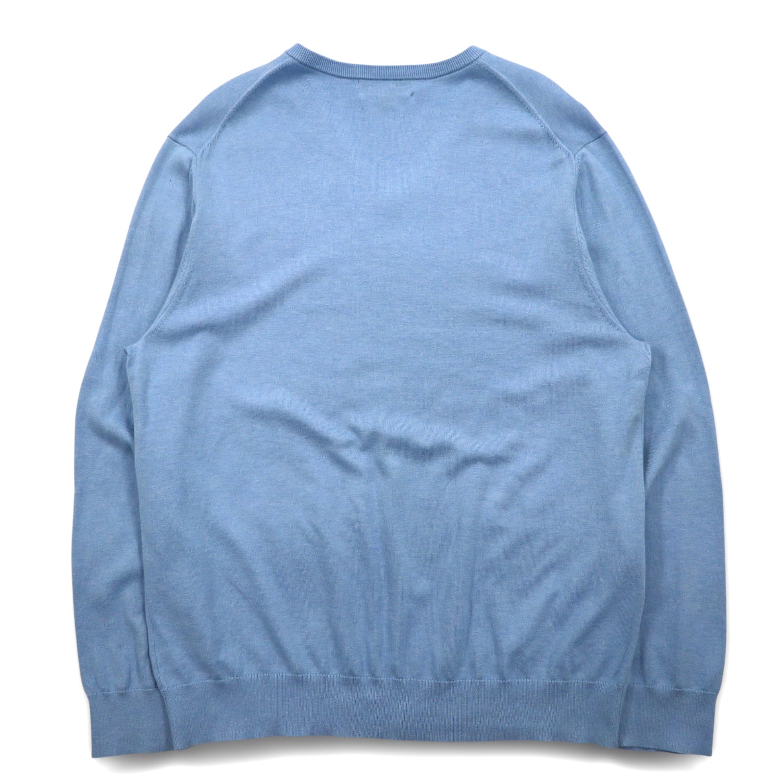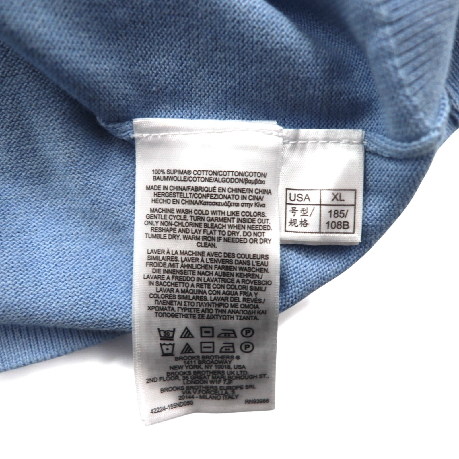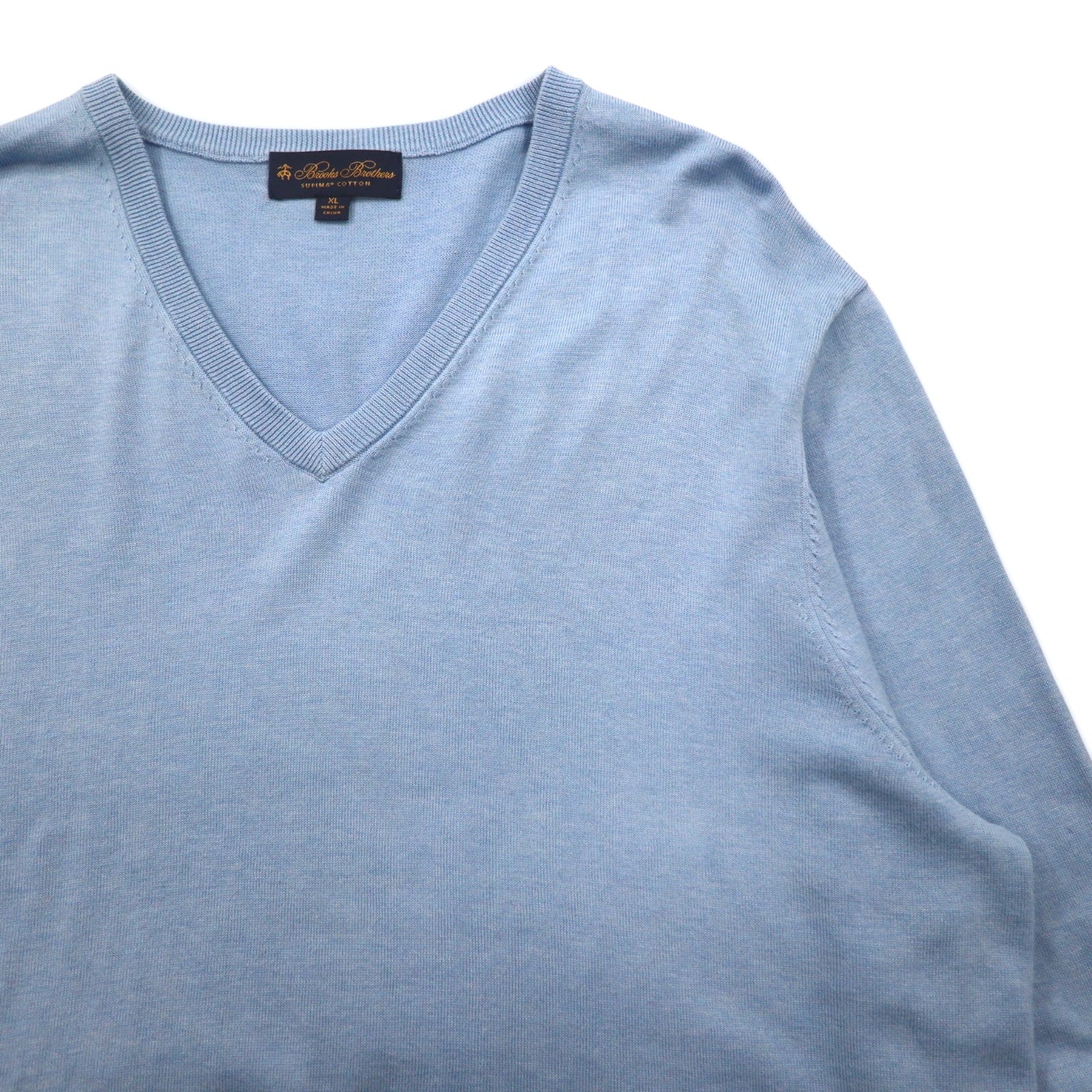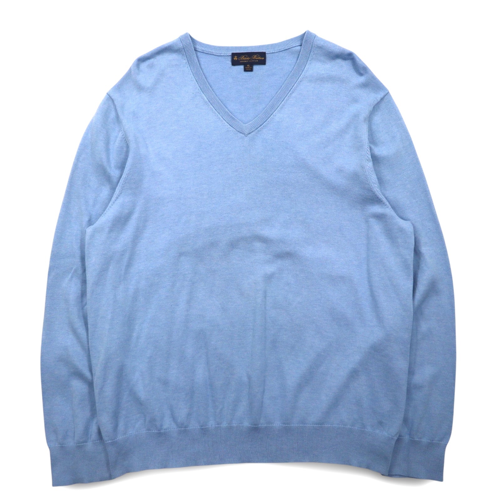 Brooks Brothers Vネック スーピマコットン ニット セーター XL ブルー ワンポイントロゴ刺繍