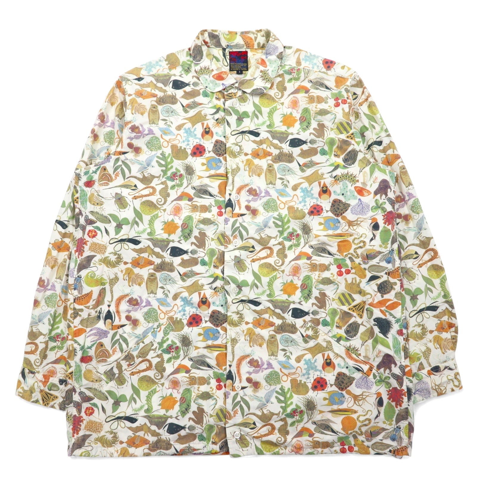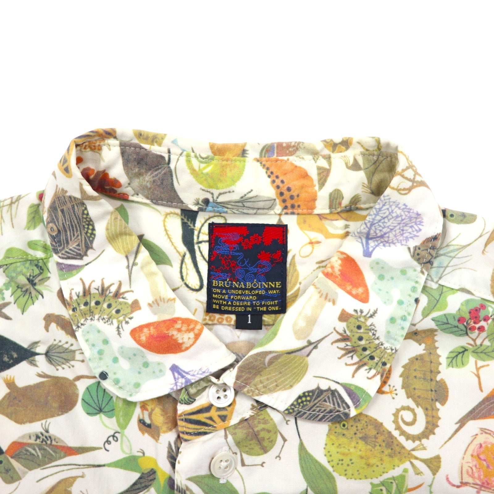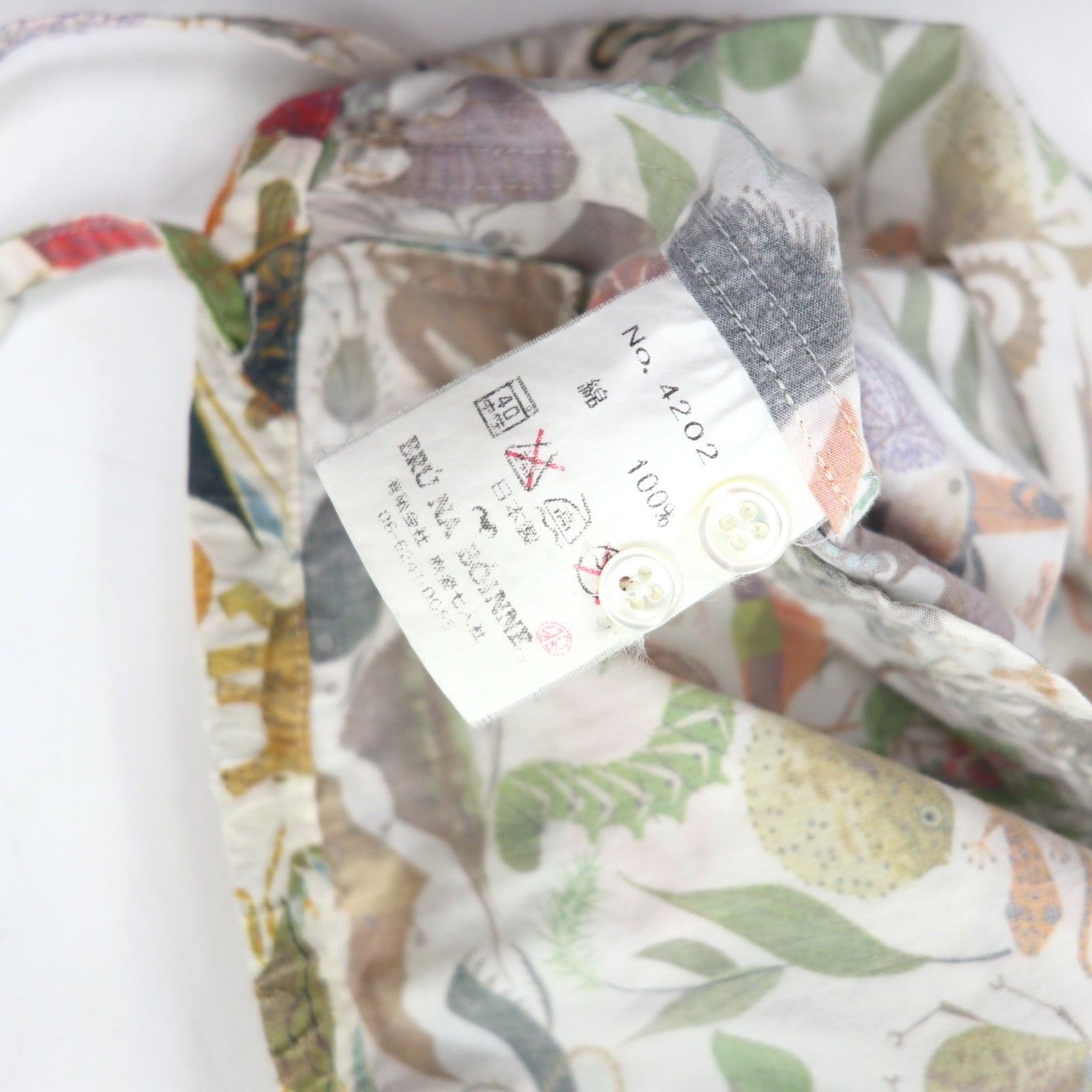 BRU NA BOINNE バイオロジー シャツ ジャケット M ホワイト コットン 総柄 4202 日本製