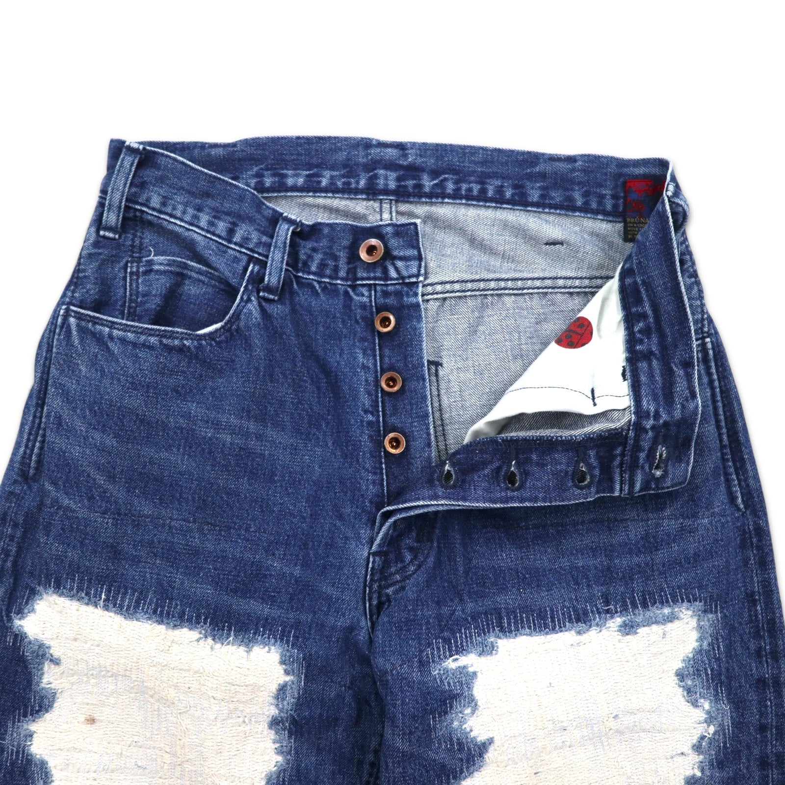 BRUNA BOINNE ウェフトデニム タタキ加工 デニムパンツ 1 ブルー コットン 日本製 7348-2