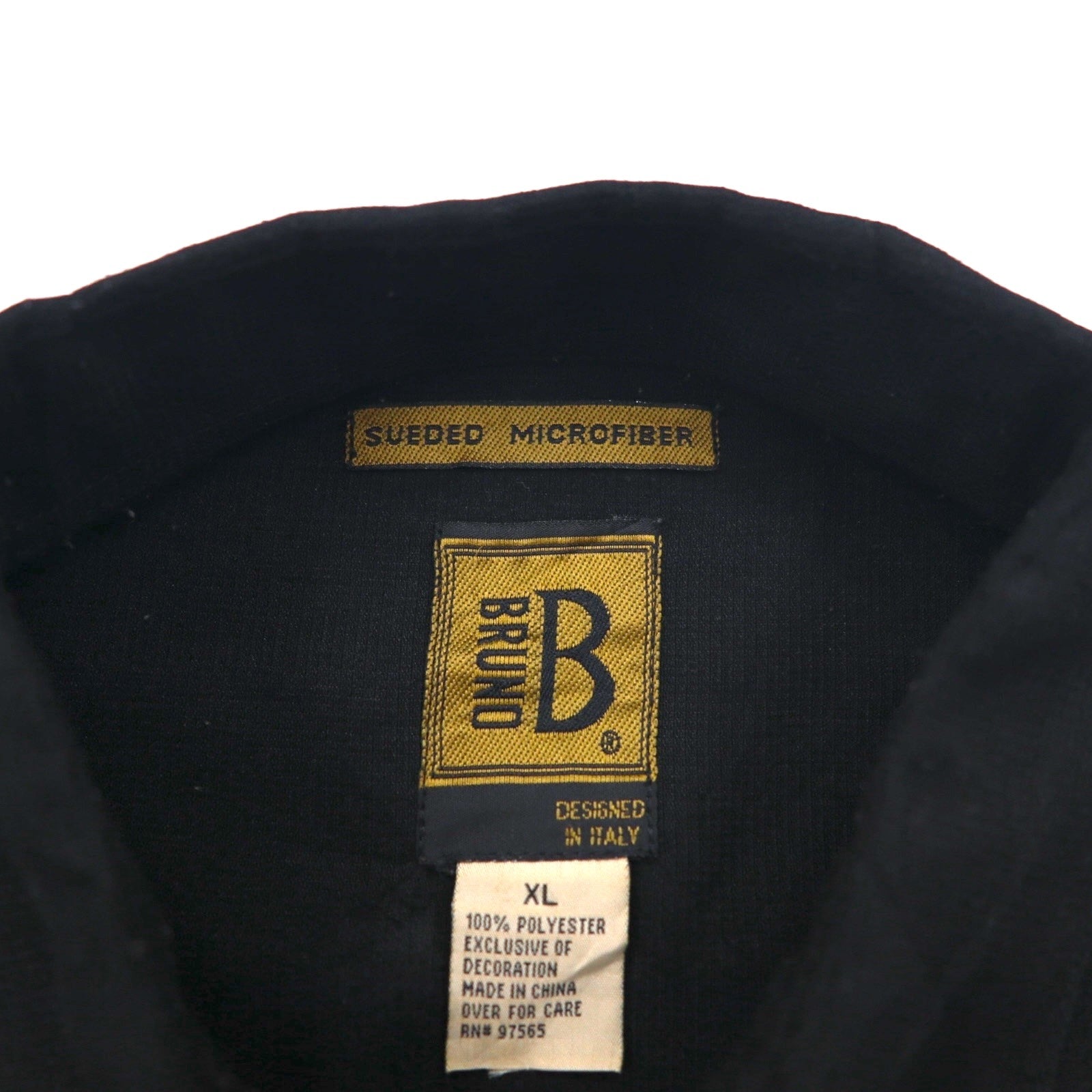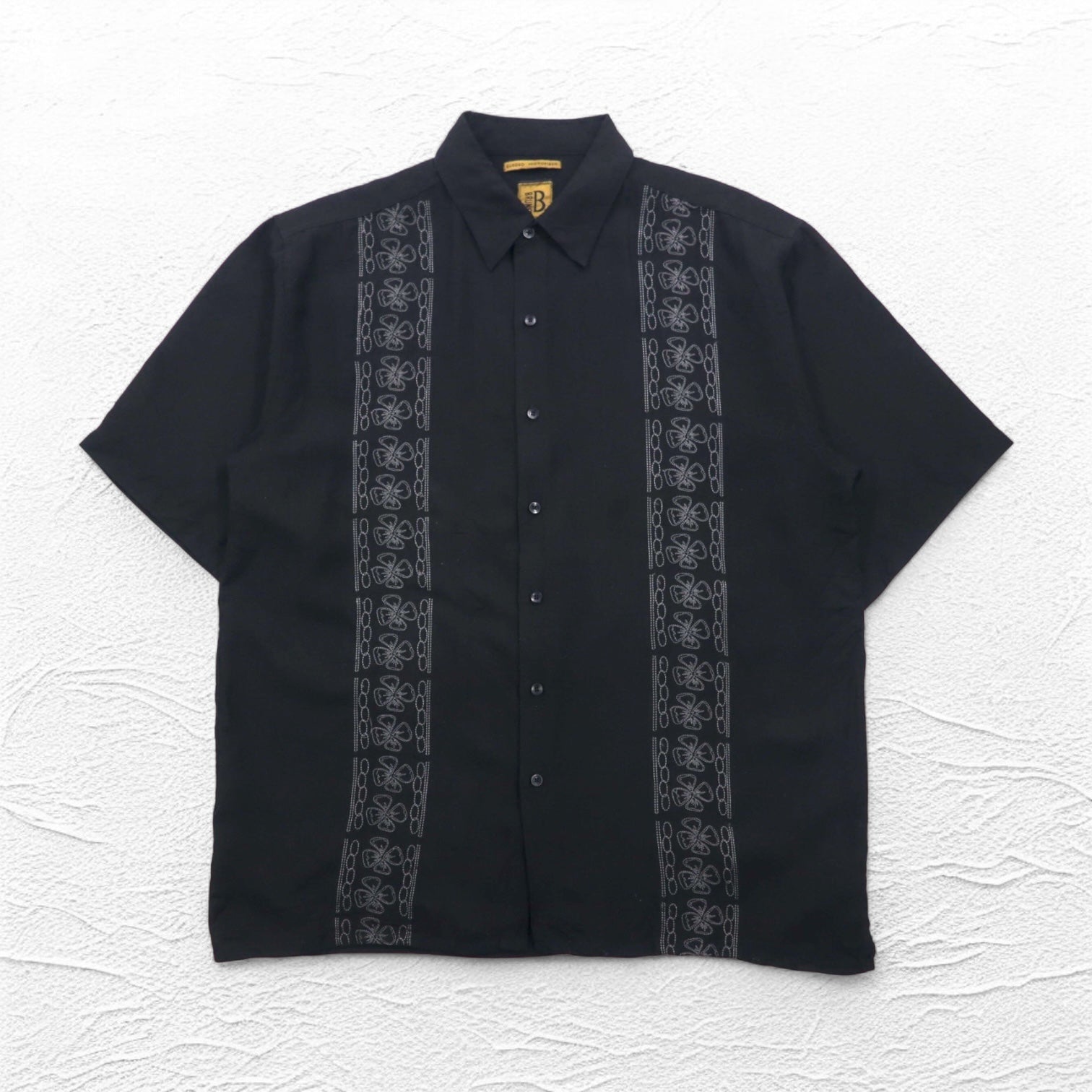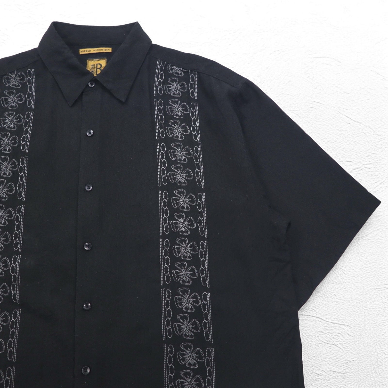 BRUNO 刺子 ビッグサイズ イタリア キューバシャツ XL ブラック ポリエステル 刺繍 スエード調
