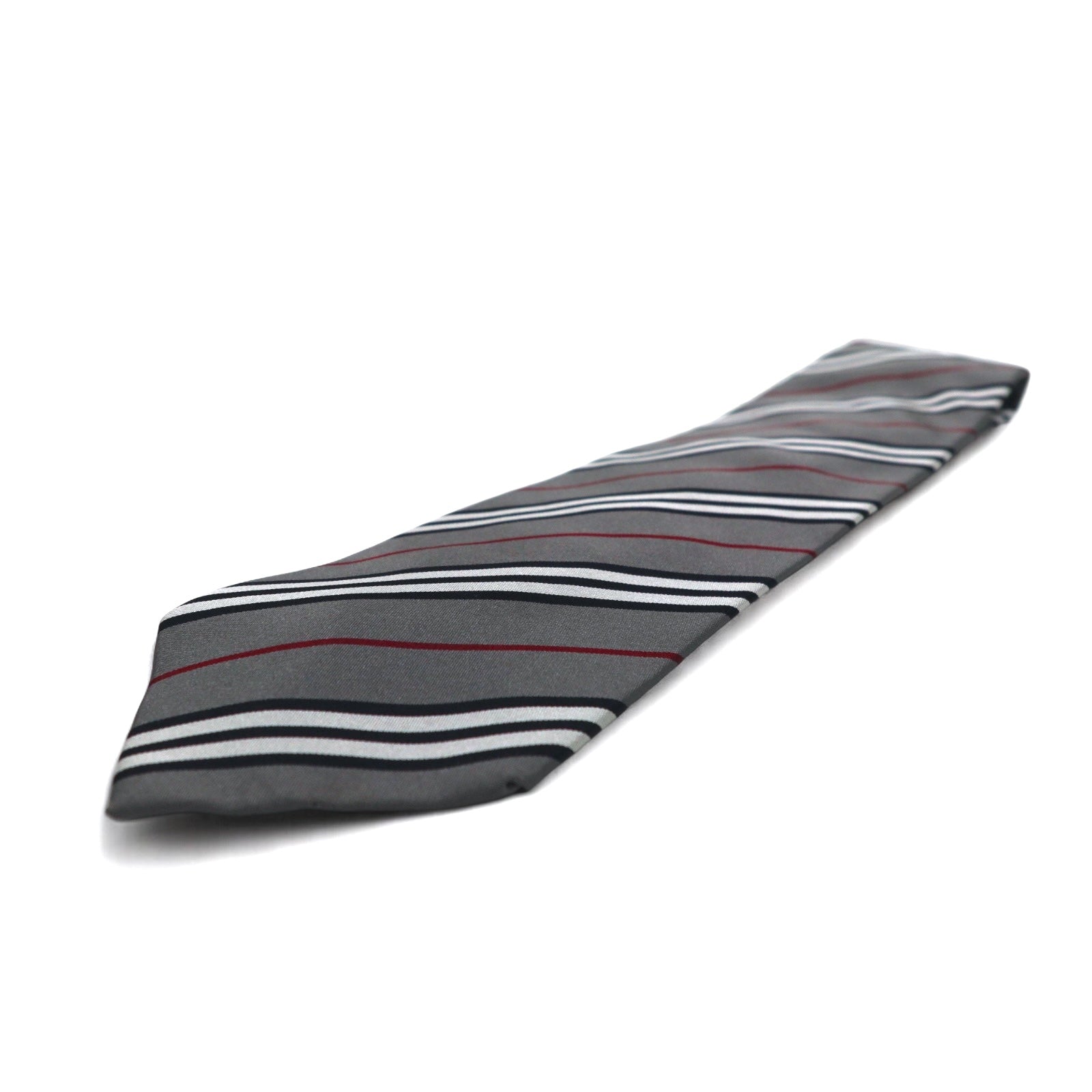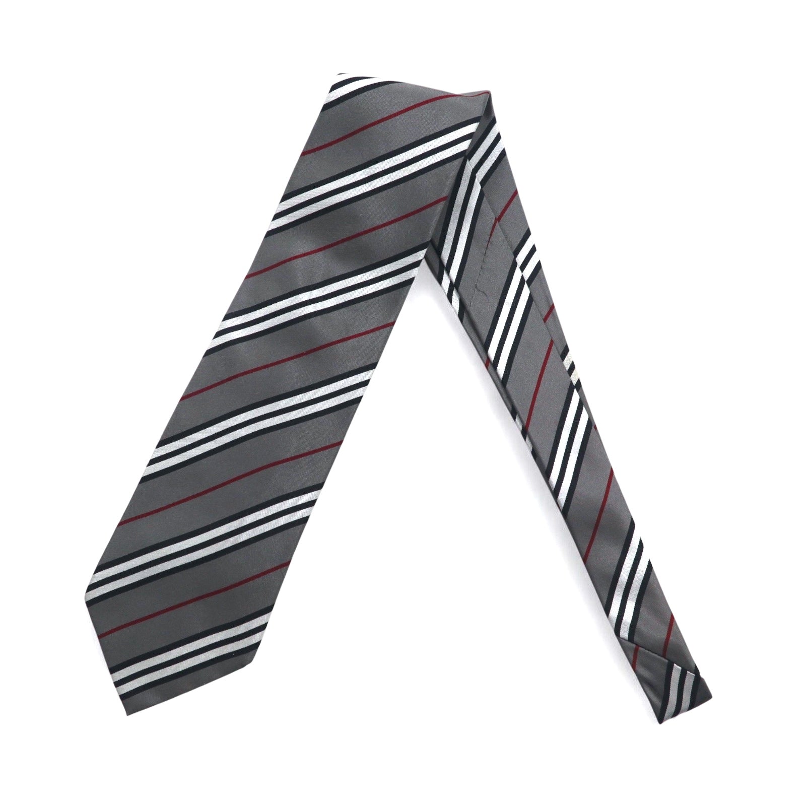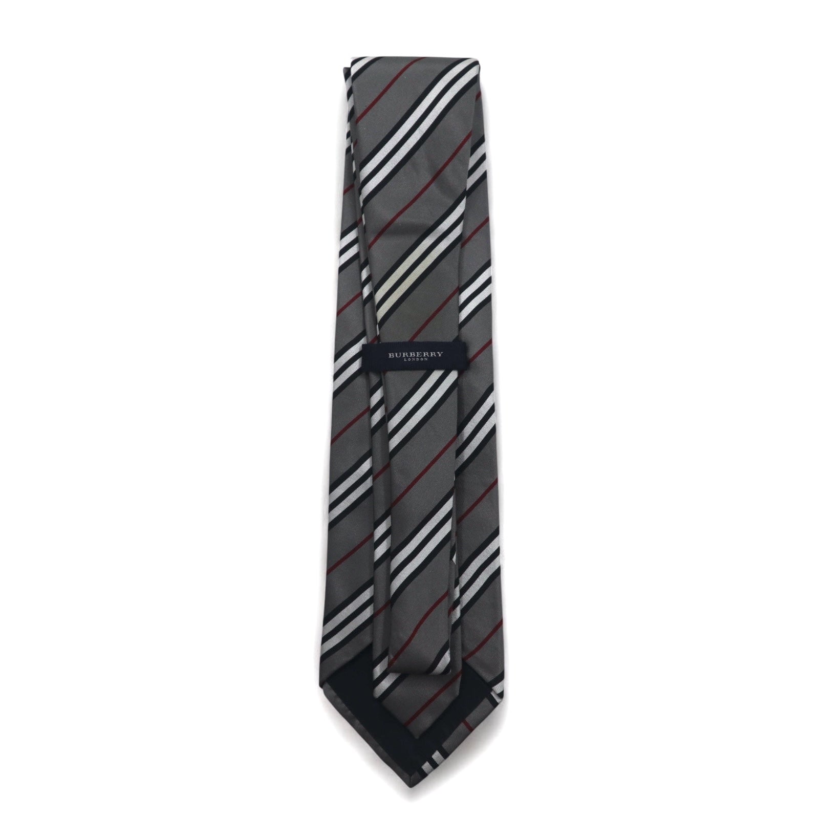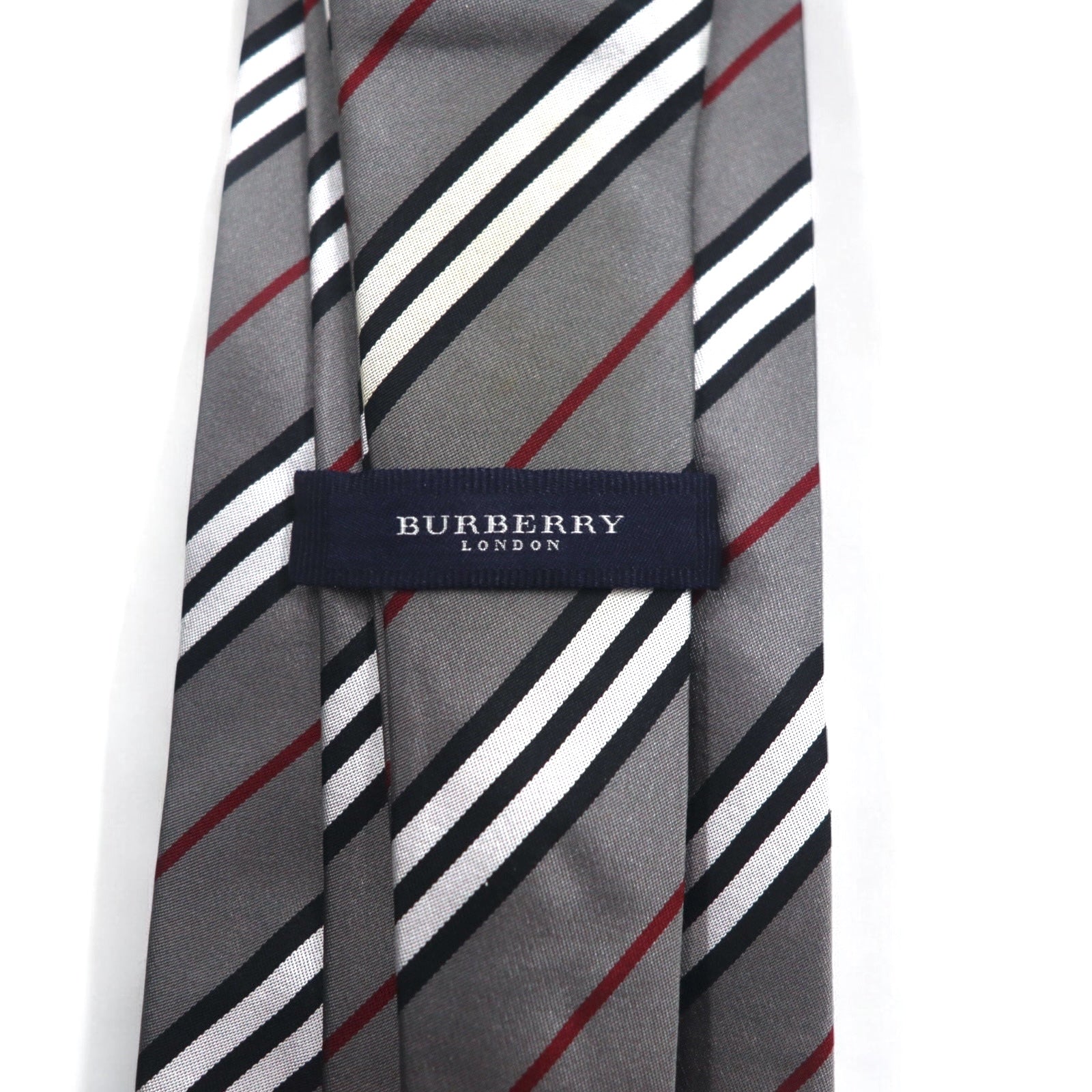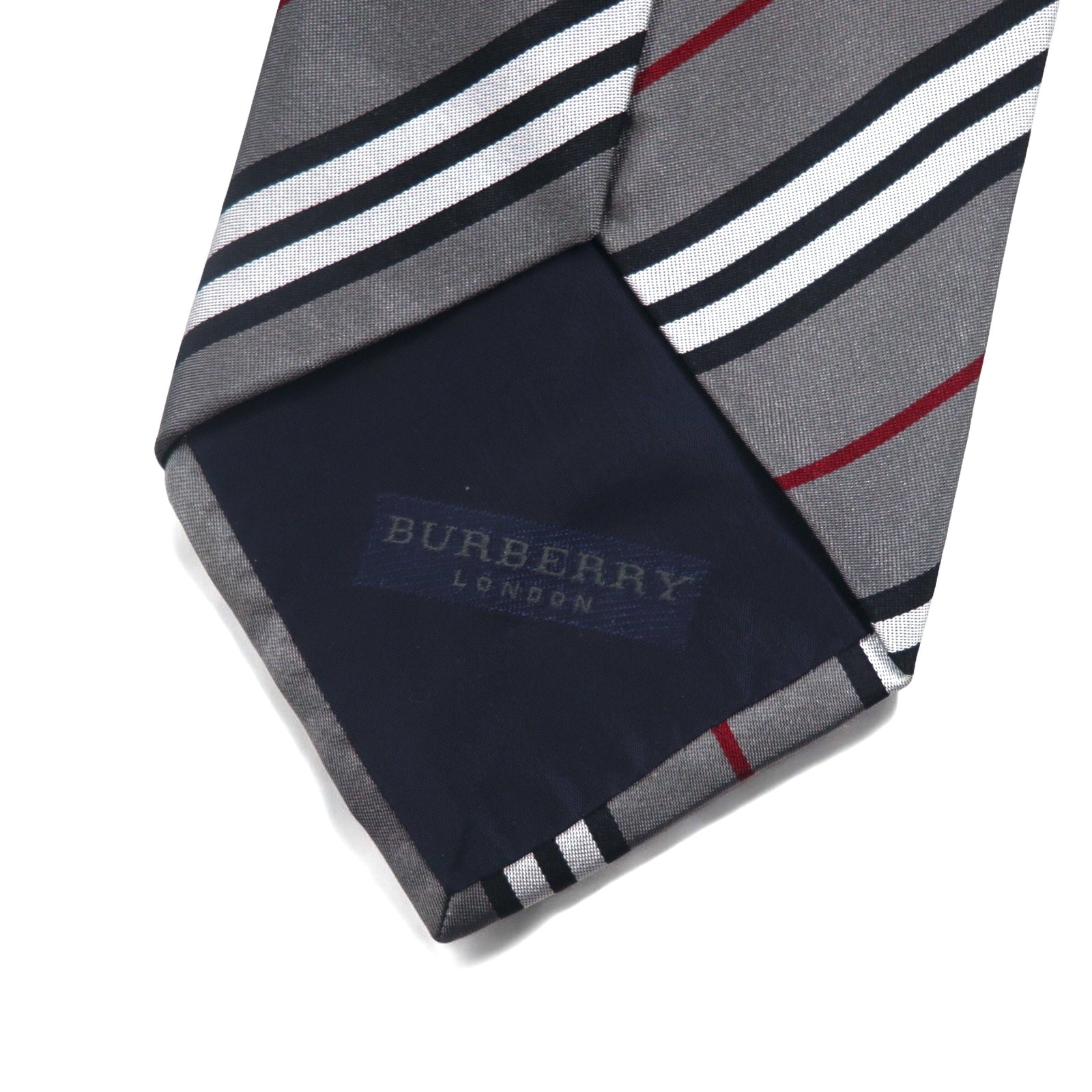 BURBERRY イタリア製 ネクタイ グレー レジメンタル ストライプ シルク