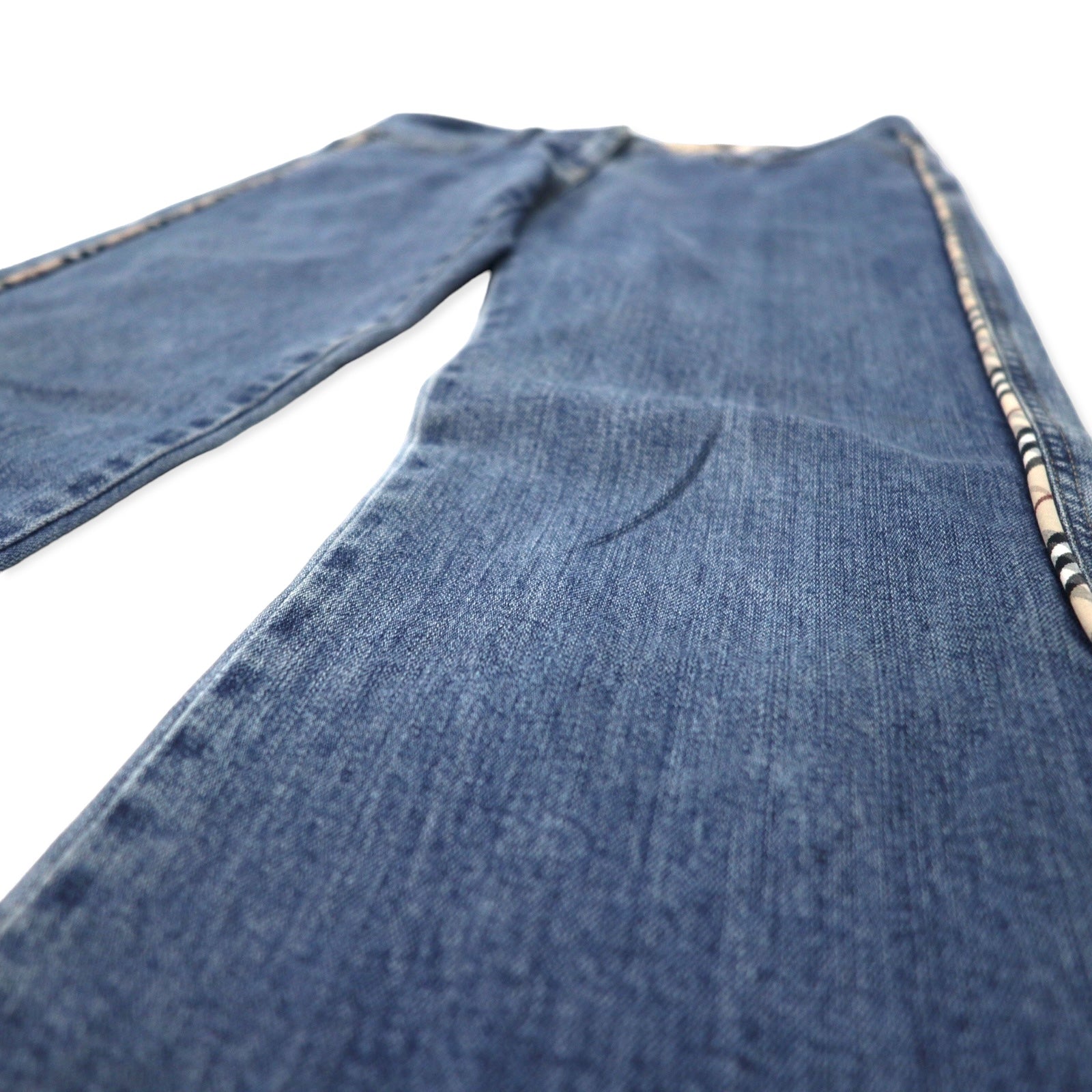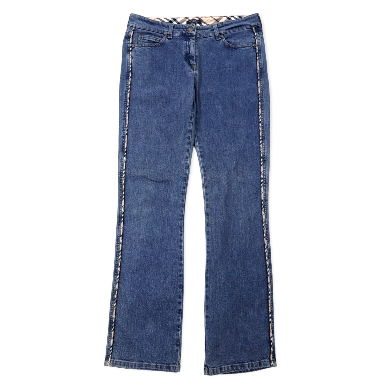 BURBERRY イタリア製 ノバチェック ブーツカット デニムパンツ 10 ブルー コットン ストレッチ