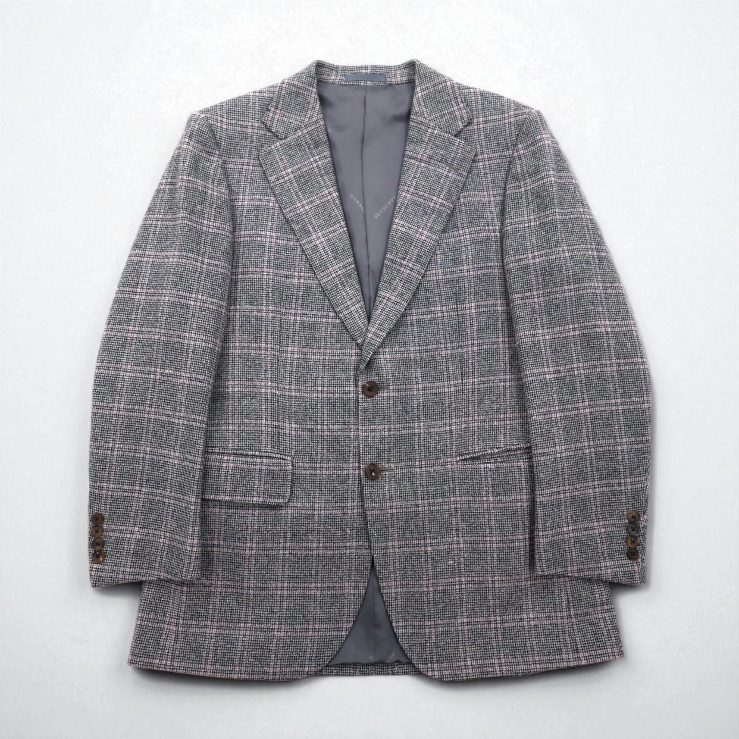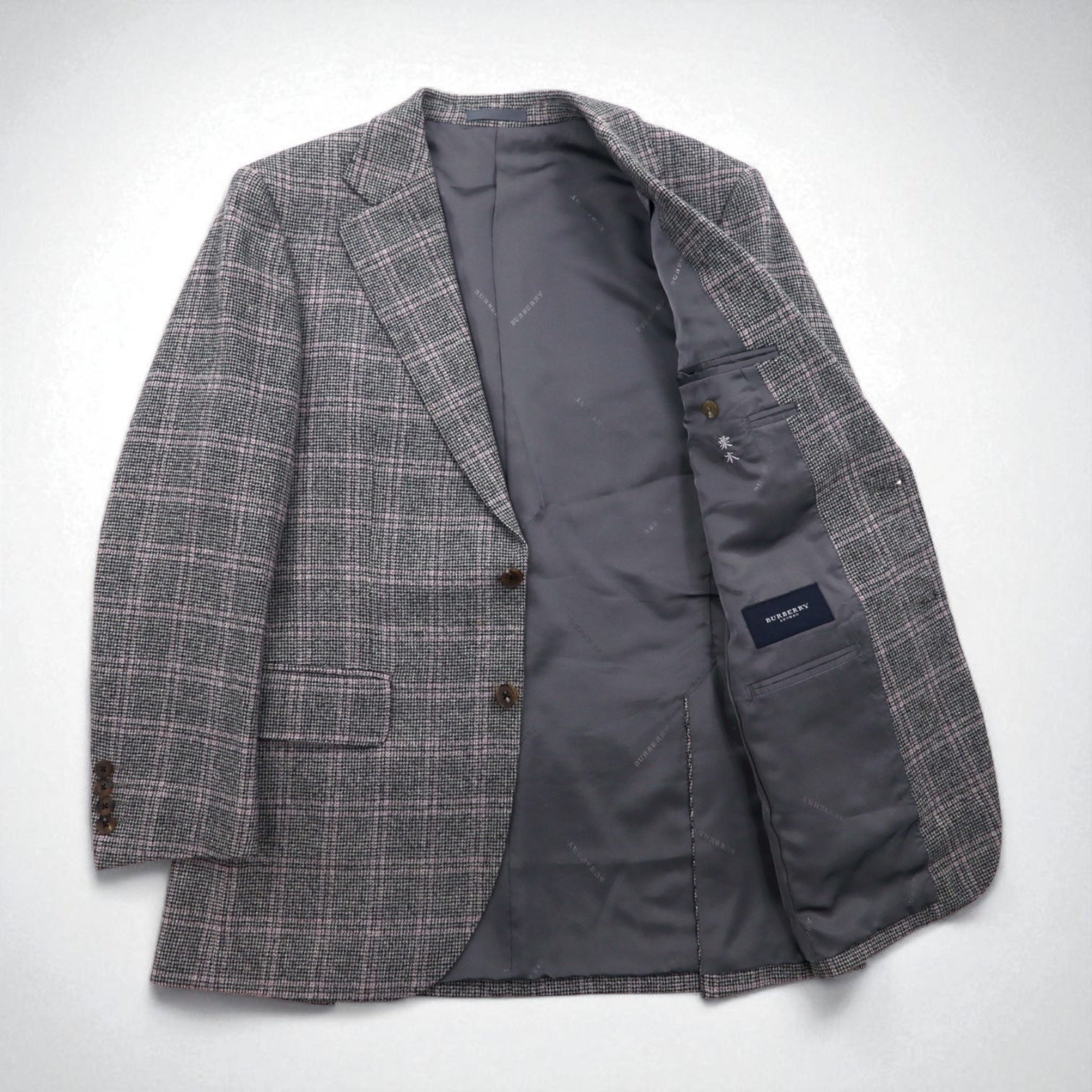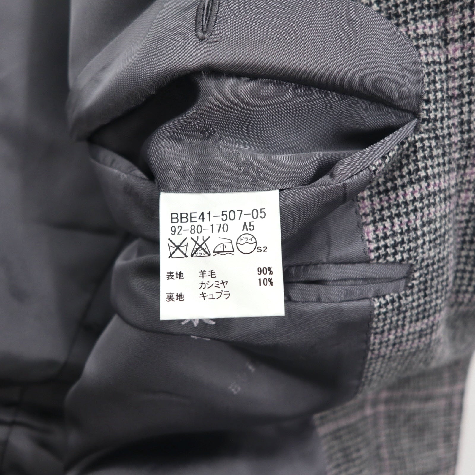 BURBERRY カシミヤ混 2B ツイードジャケット M グレー チェック ウール 羊毛 日本製