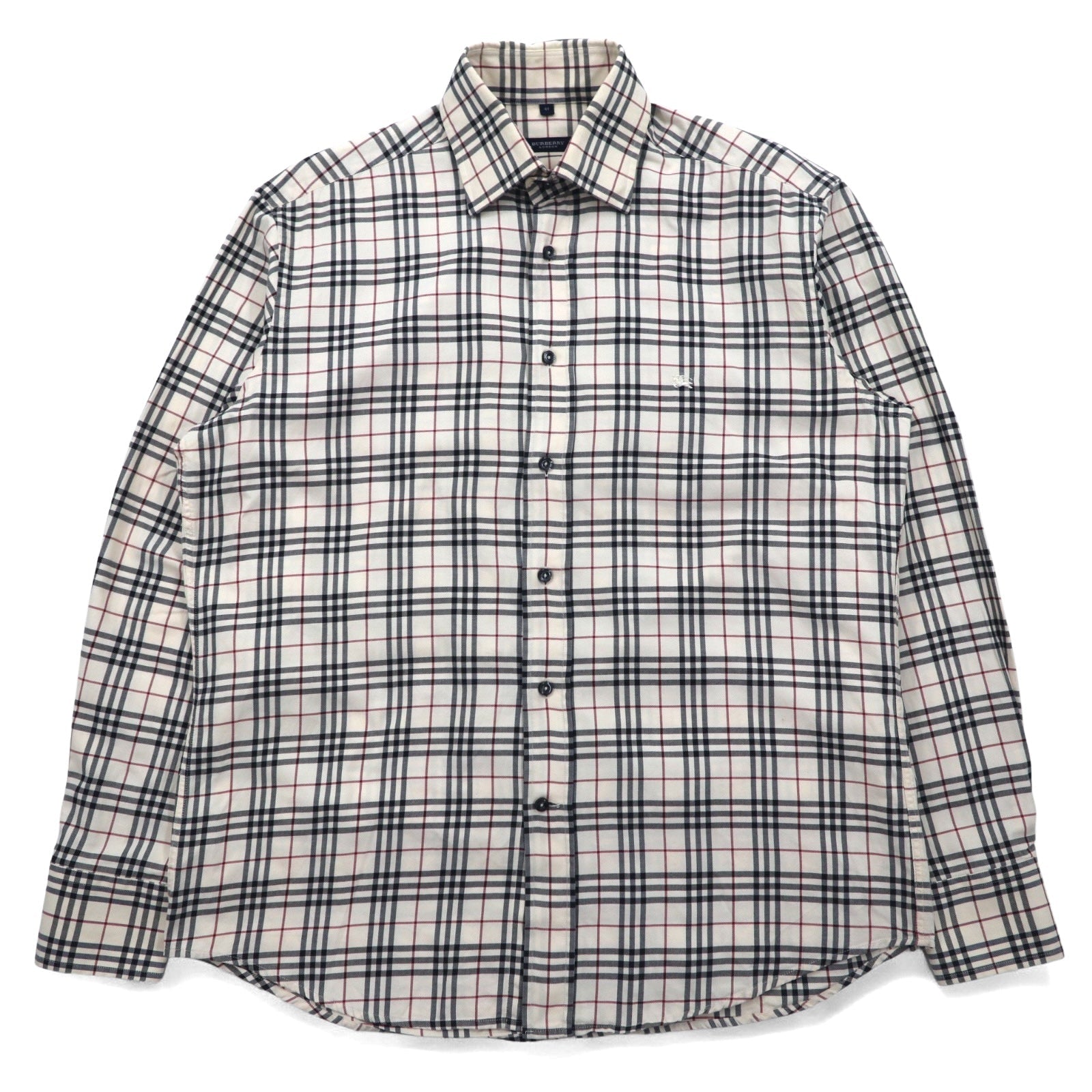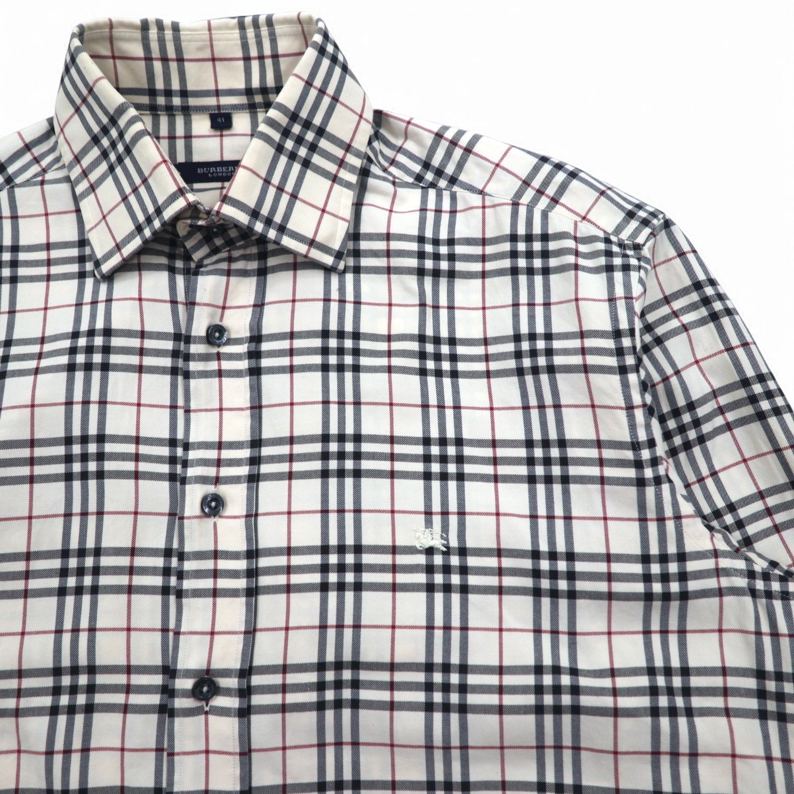 BURBERRY ノバチェック ドレスシャツ L ホワイト コットン ワンポイントロゴ刺繍