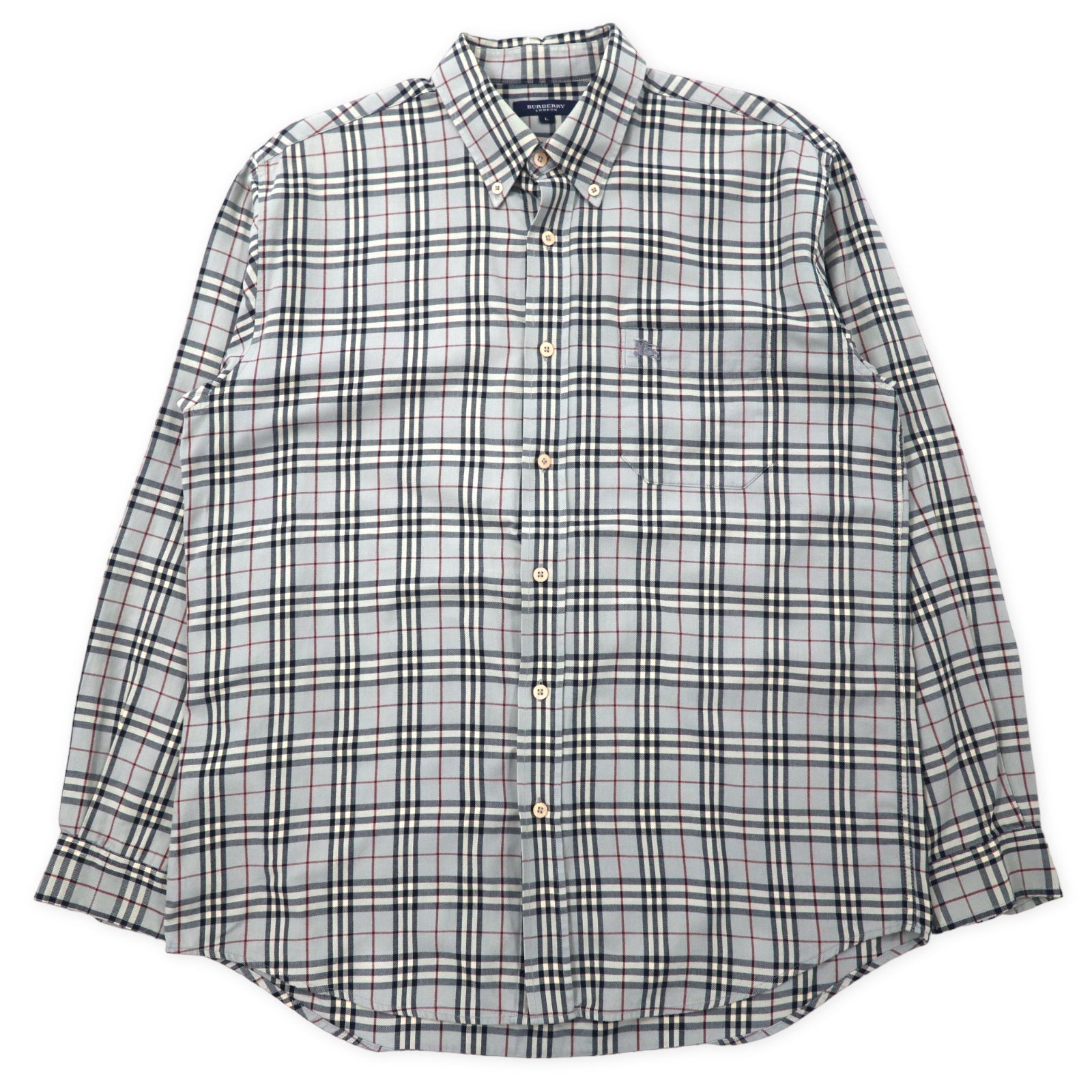 BURBERRY ノバチェック ボタンダウンシャツ L グレー コットン ワンポイントロゴ刺繍