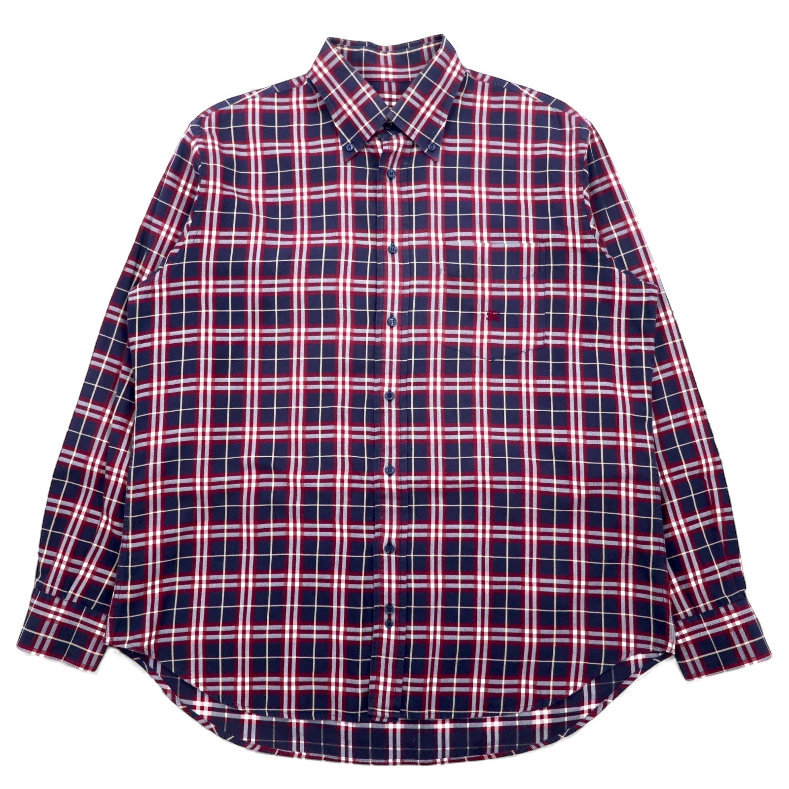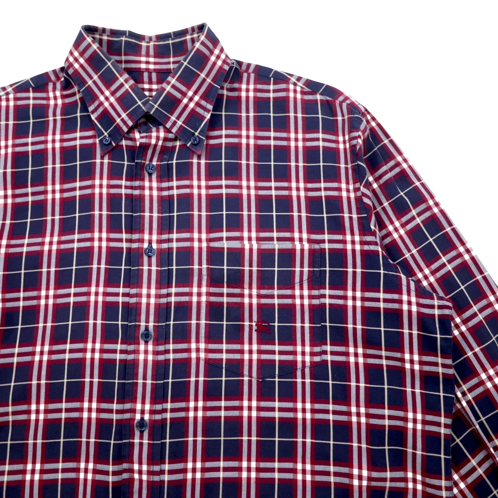 BURBERRY ノバチェック ボタンダウンシャツ L ネイビー コットン ワンポイントロゴ 刺繍