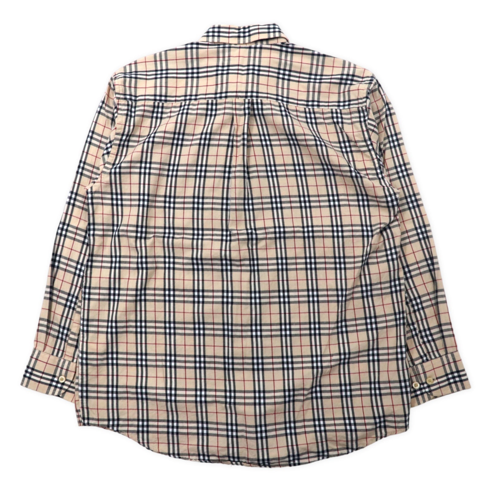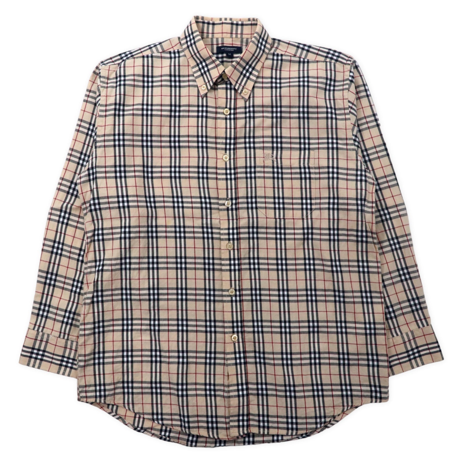 BURBERRY ノバチェック ボタンダウンシャツ M ベージュ コットン ワンポイントロゴ刺繍