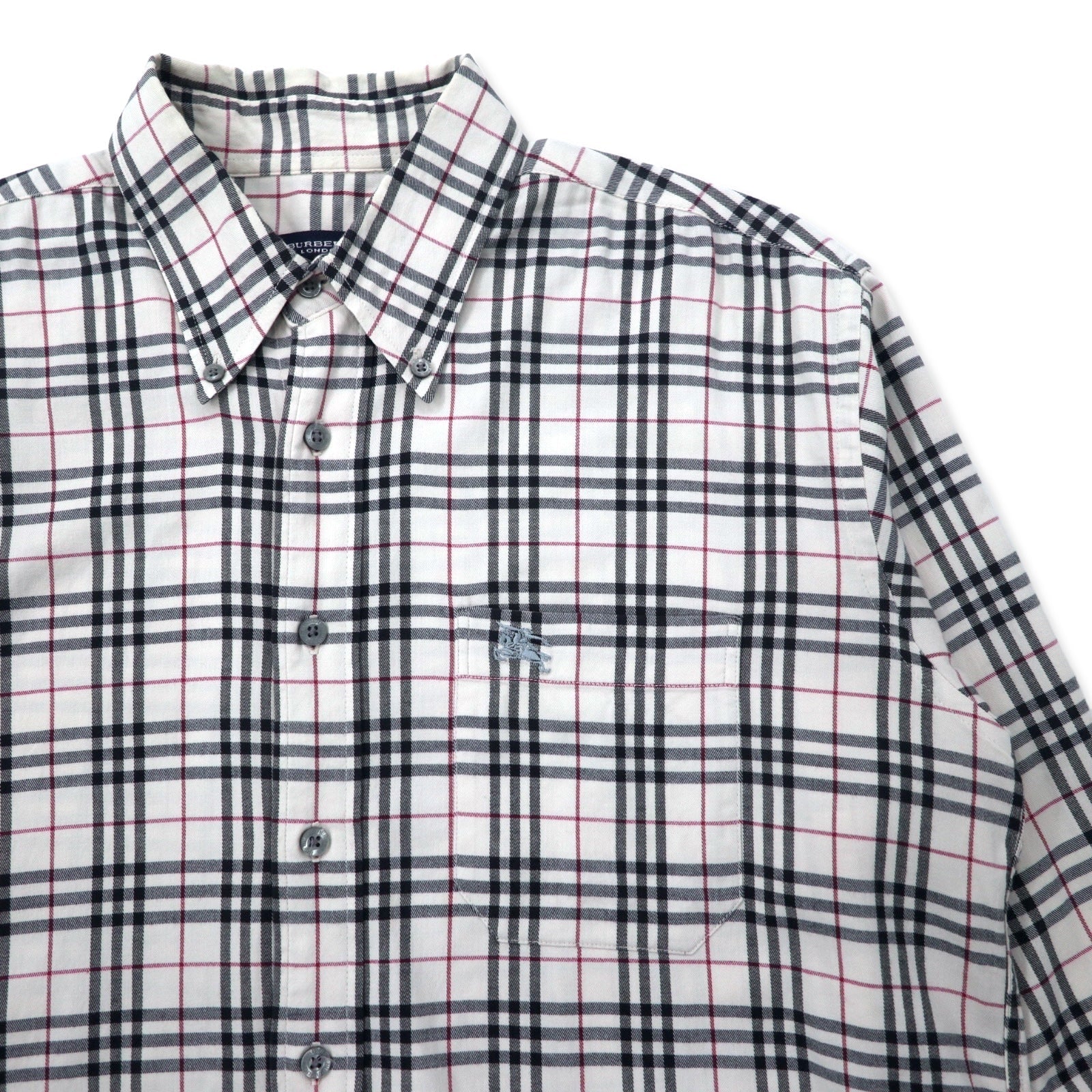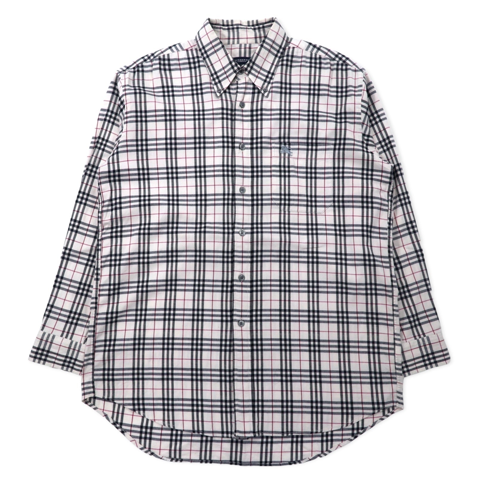 BURBERRY ノバチェック ボタンダウンシャツ M ホワイト コットン ストレッチ ワンポイントロゴ刺繍